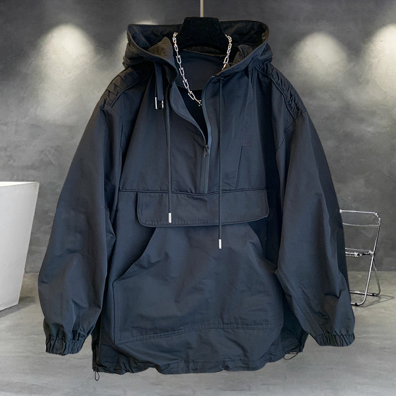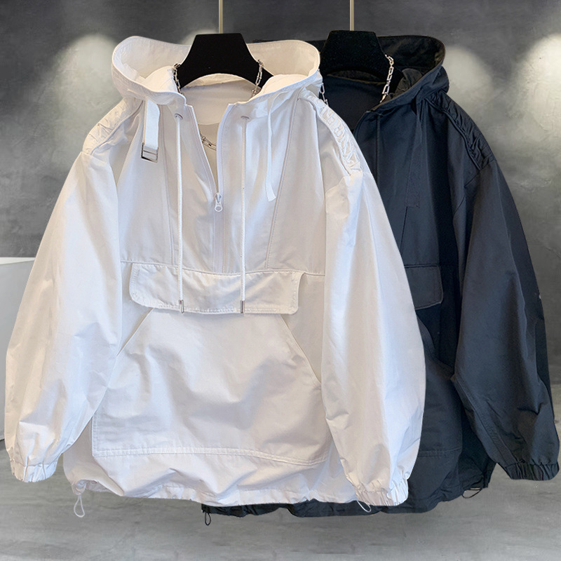 工装口袋连帽防晒服外套男薄款潮流拼接设计感潮牌宽松冲