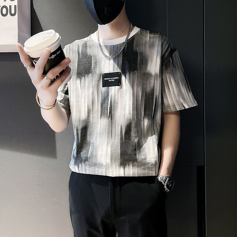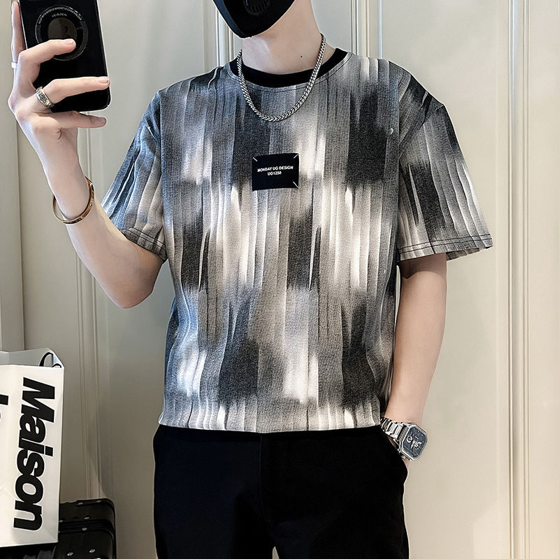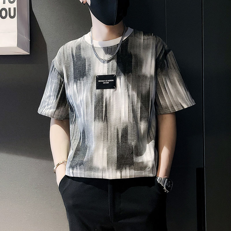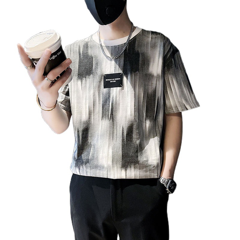设计感扎染短袖男夏季潮牌痞帅圆领T恤新款男士夏装半袖