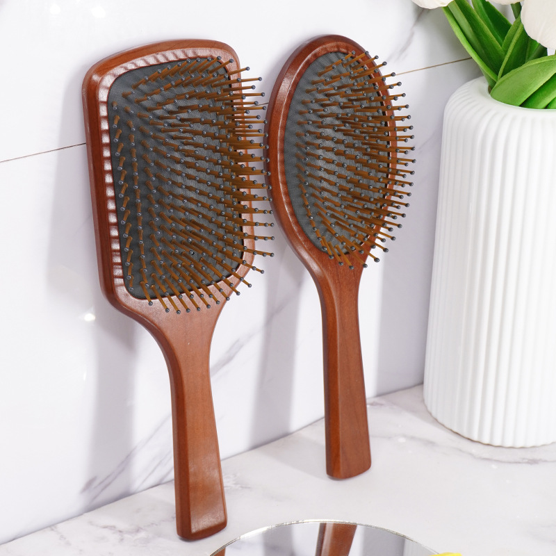 红樱桃木顺直发按摩气垫梳光滑梳齿舒适美发气囊梳子