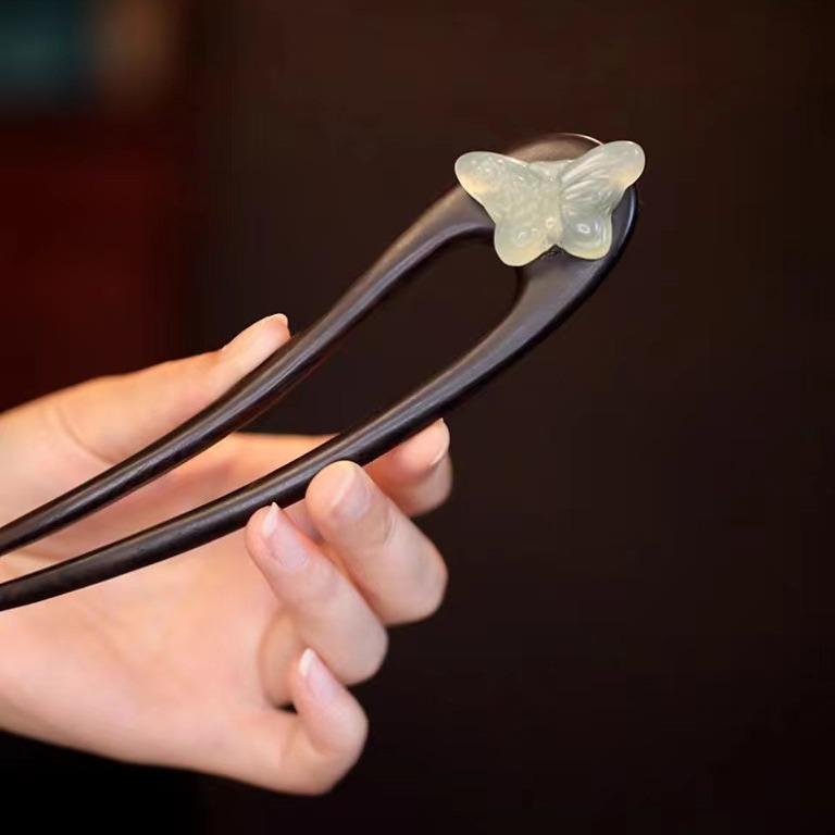 岫玉发簪女高级感七夕送女友礼物日常檀木簪子盘发旗袍头饰丸子头