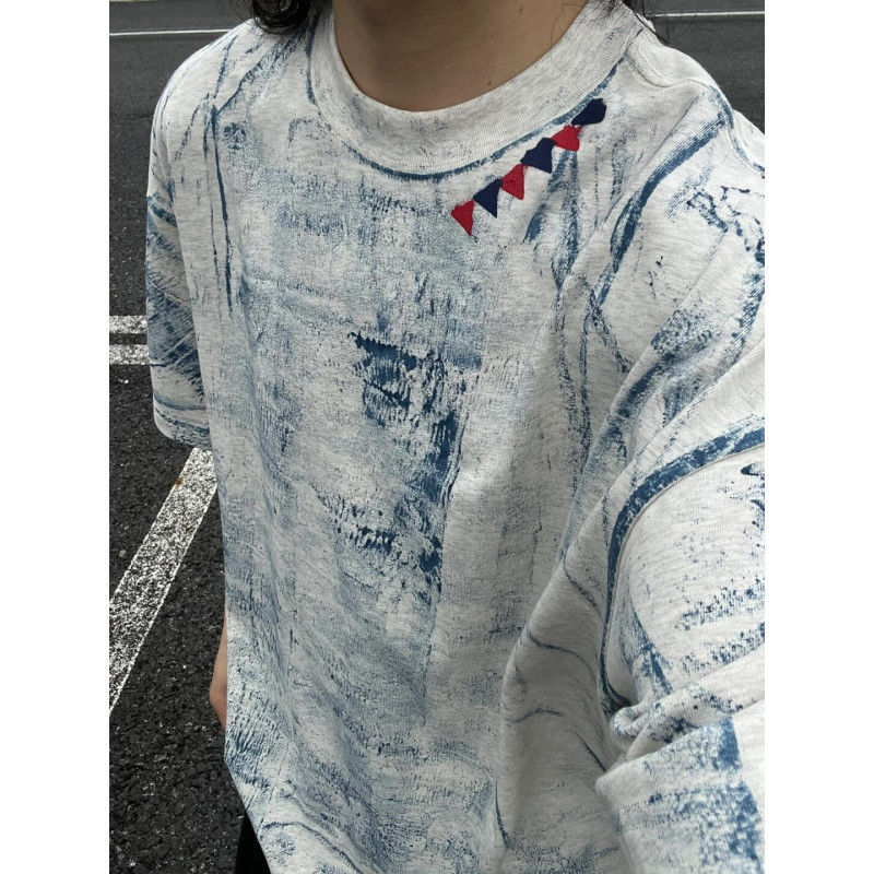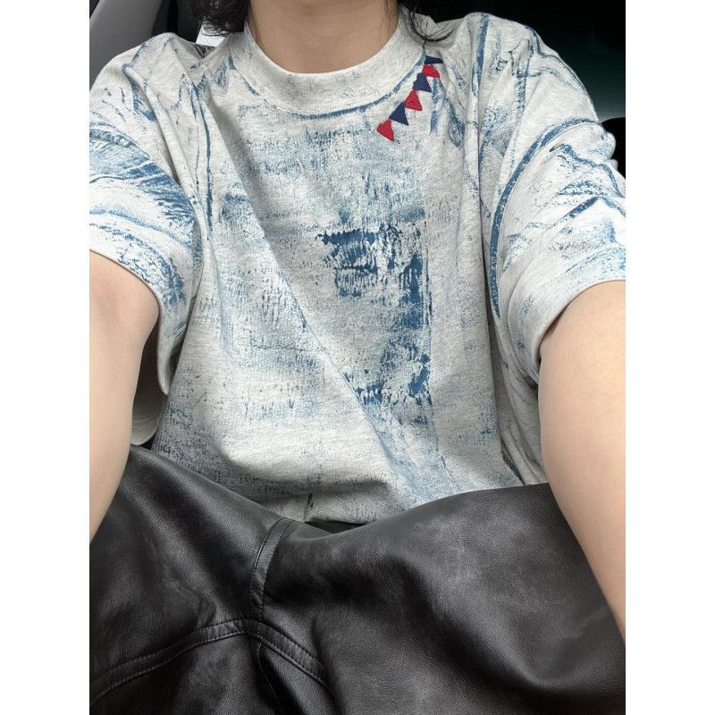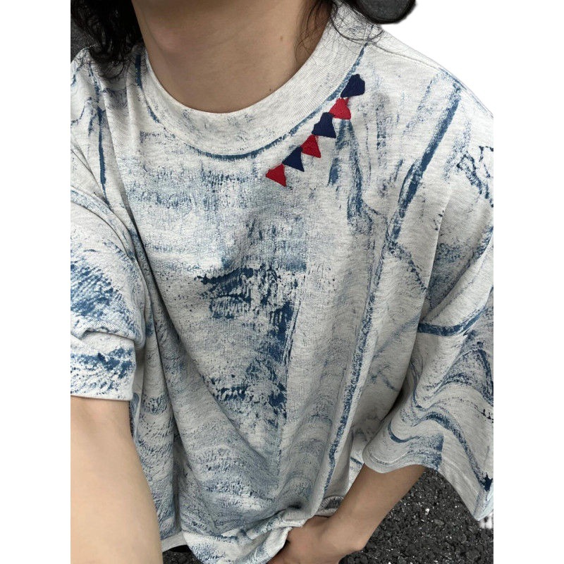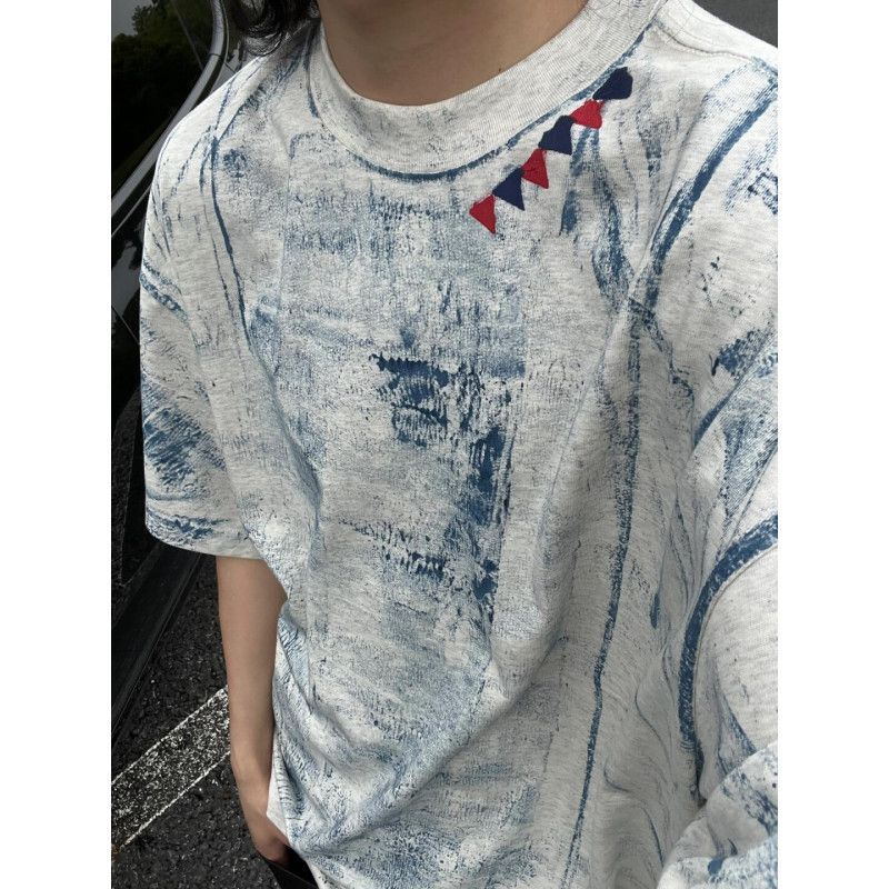 脏脏T恤男夏季水洗做旧新款潮半袖美式复古重磅扎染