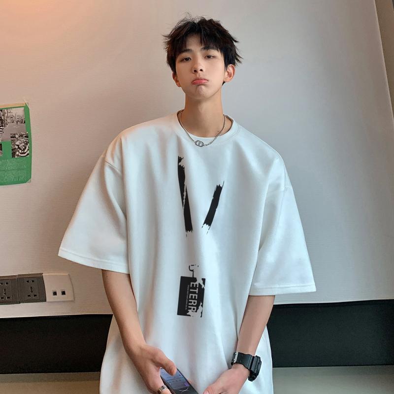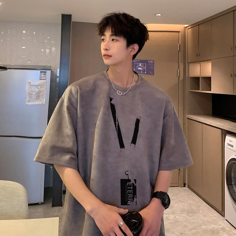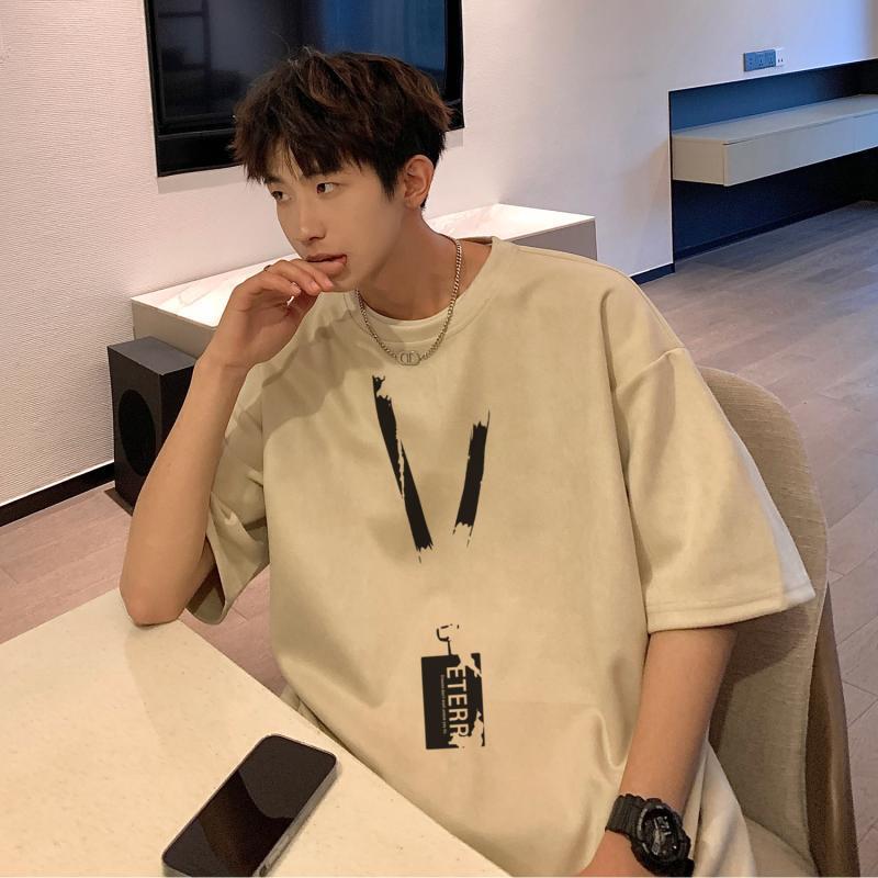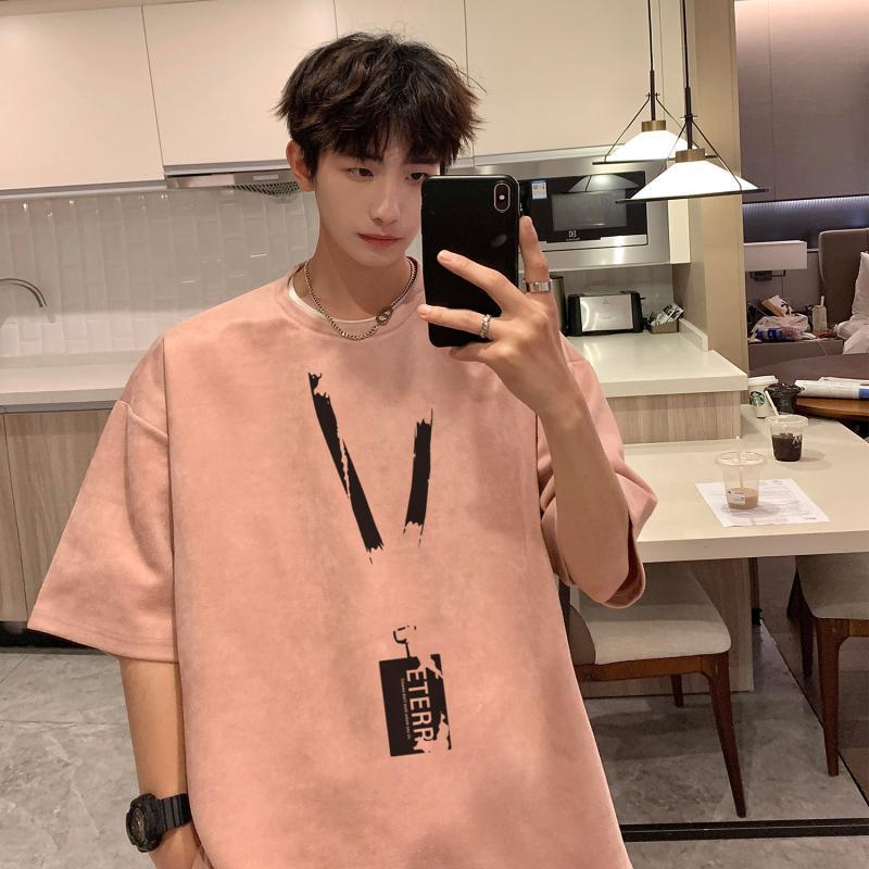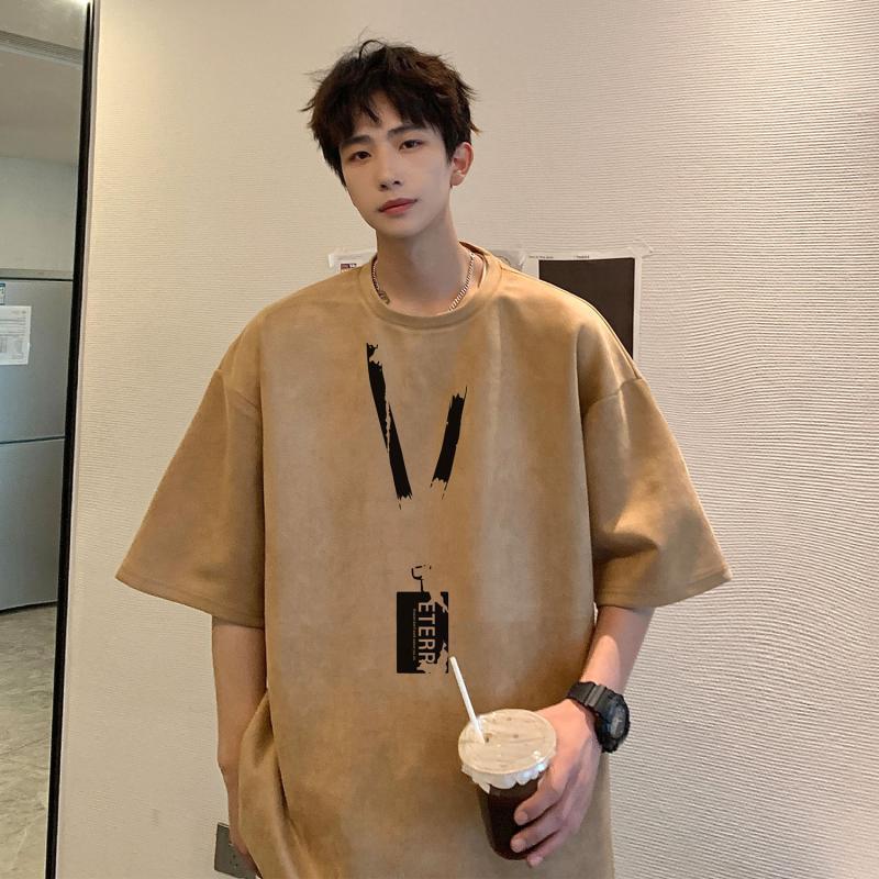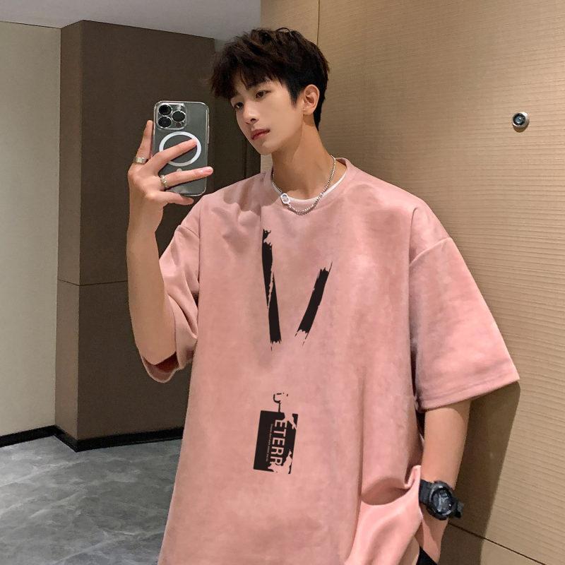 牛油果绿麂皮绒T恤男夏季美式重磅上衣潮流多巴胺穿搭小