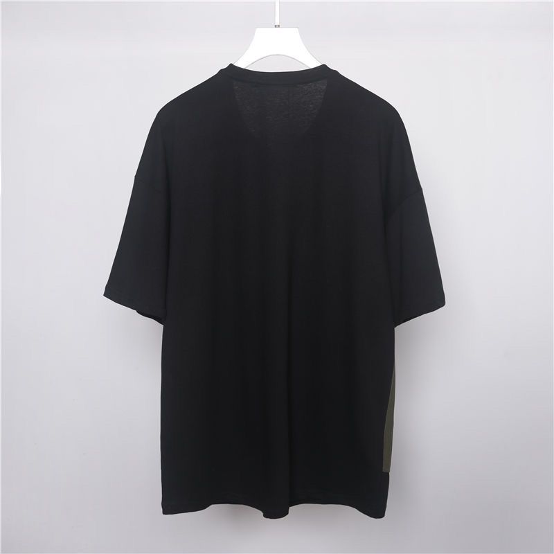 夏季新款条纹拼接口袋工装撞色拼接宽松圆领短袖T恤潮男潮牌ins风