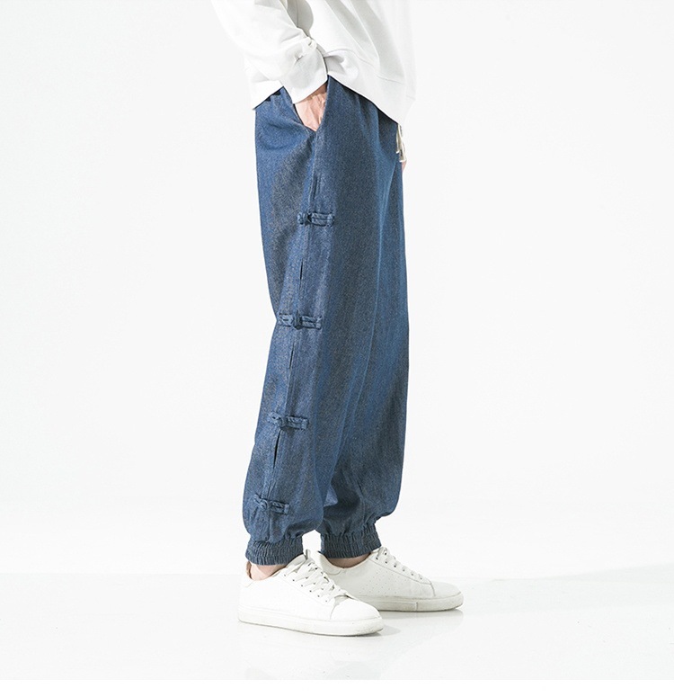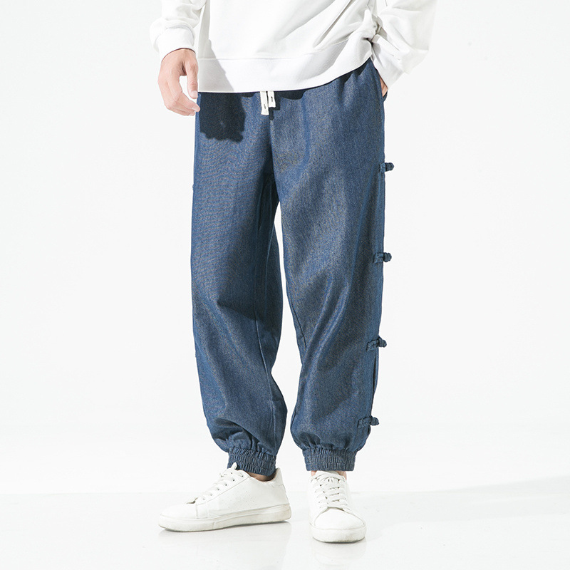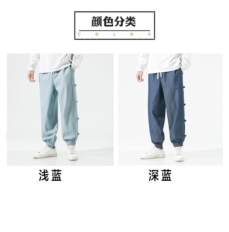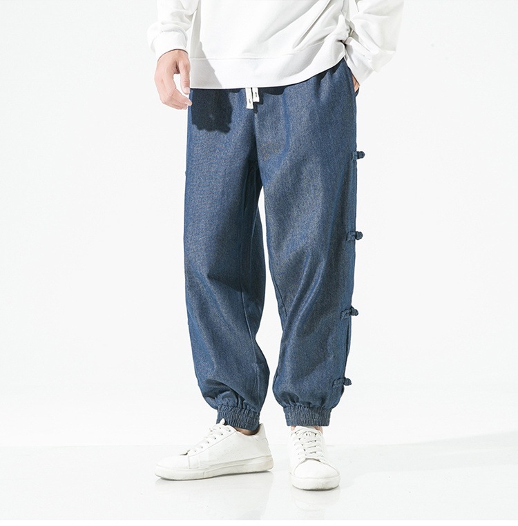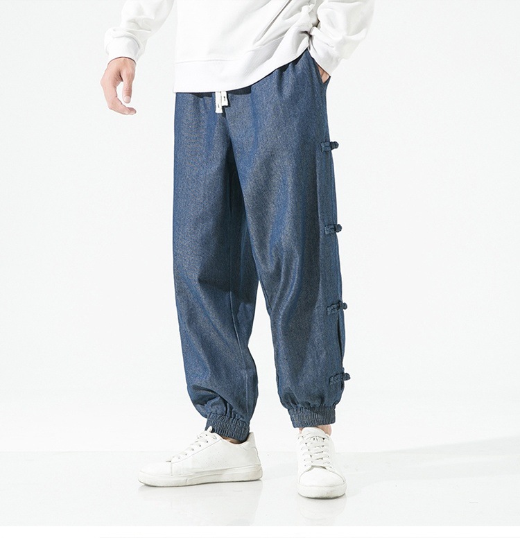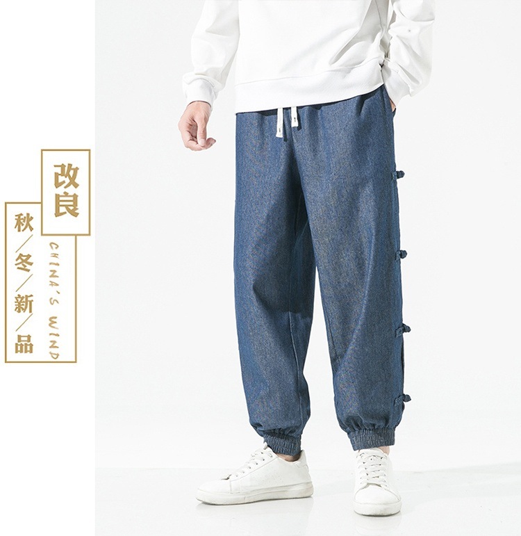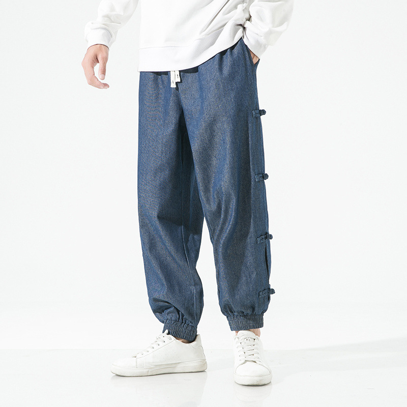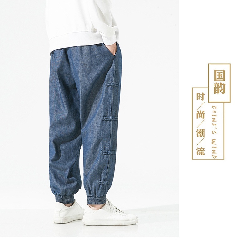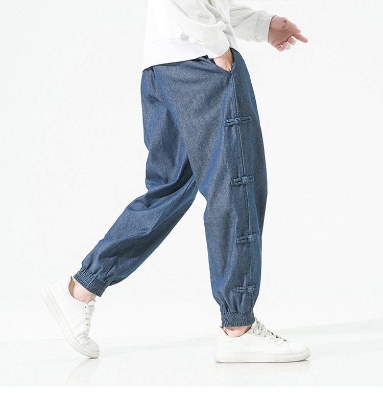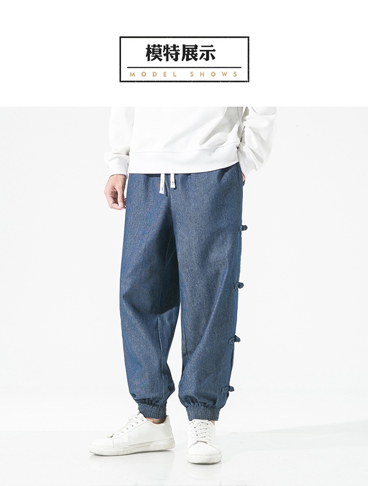 牛仔哈伦裤男盘扣哈伦裤宽松加肥加大码小脚休闲裤国潮