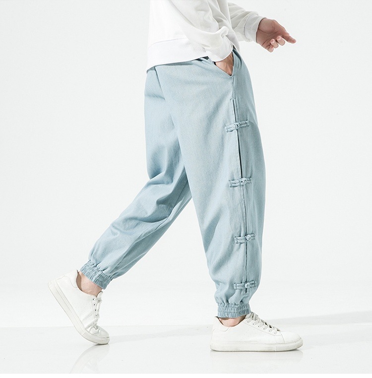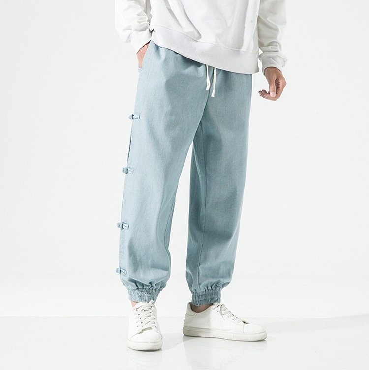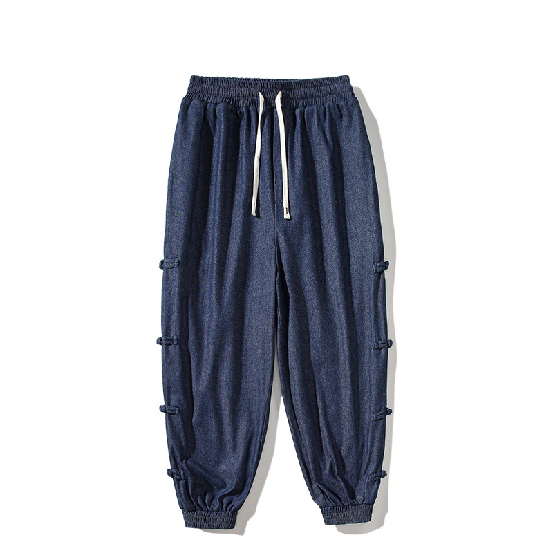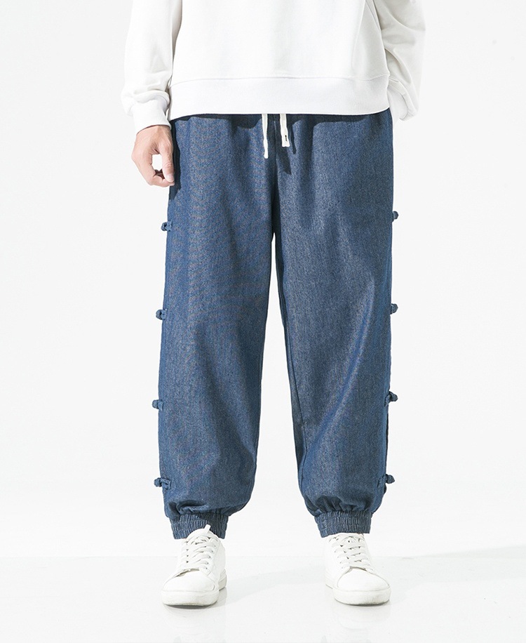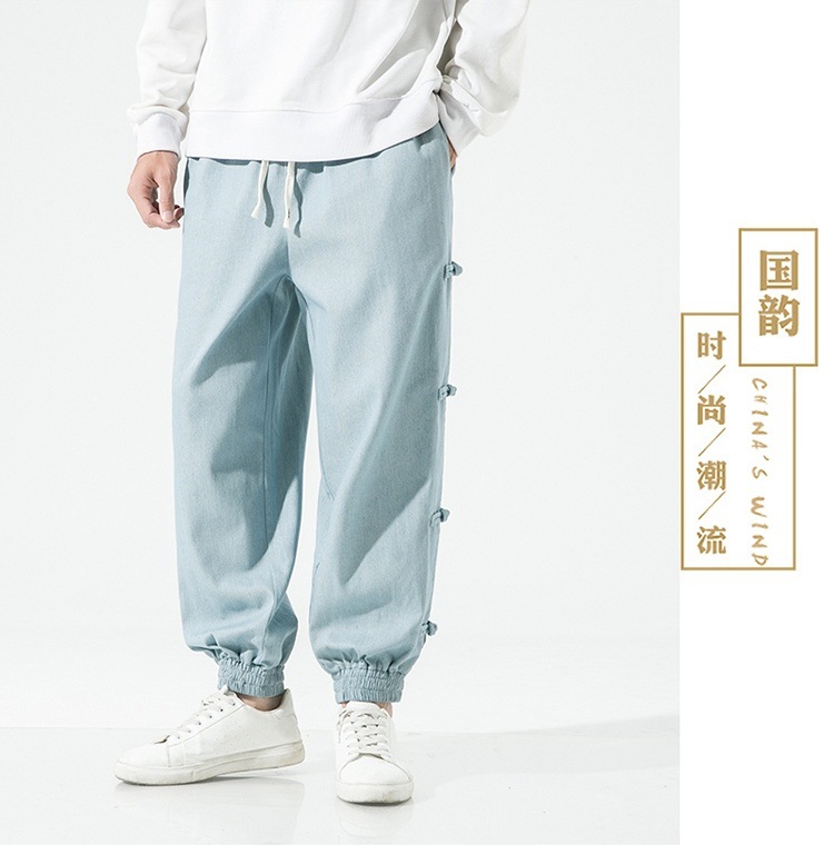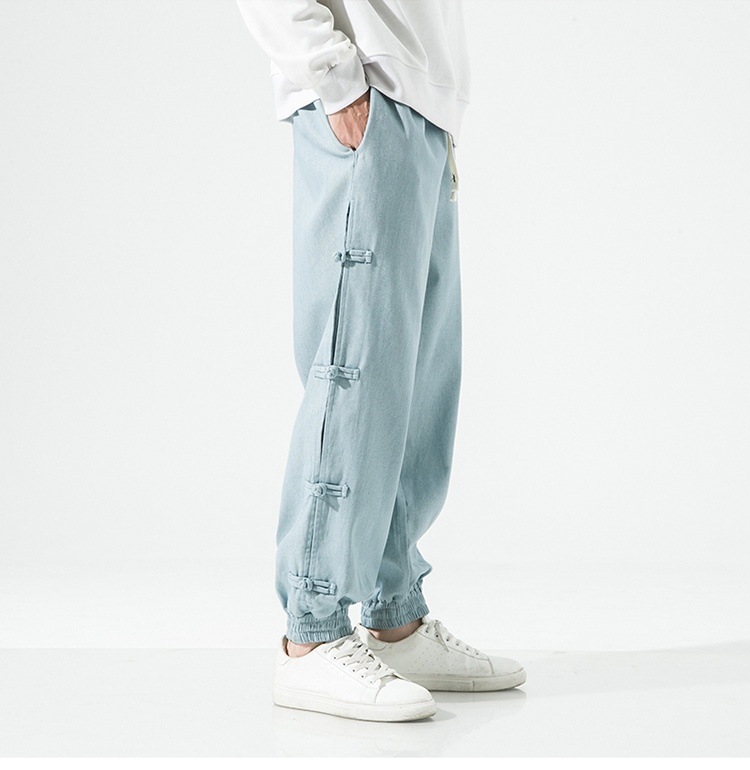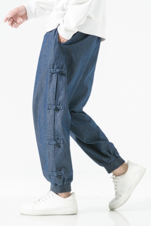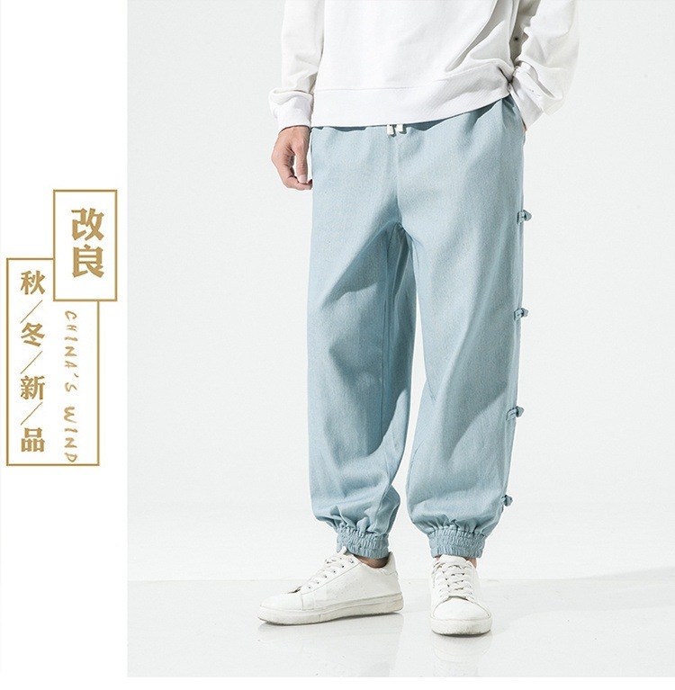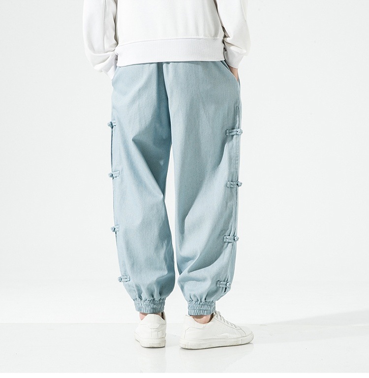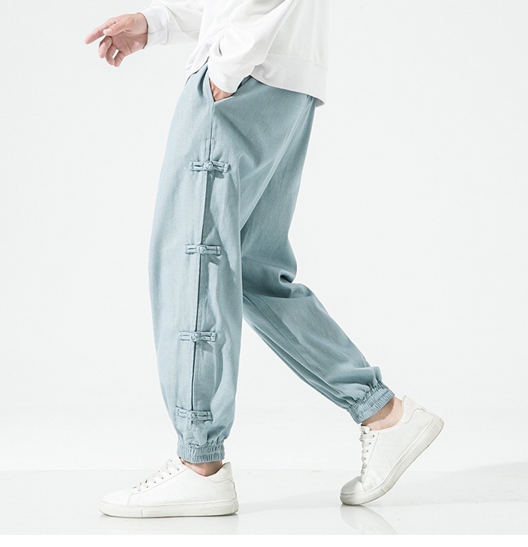 牛仔哈伦裤男盘扣哈伦裤宽松加肥加大码小脚休闲裤国潮