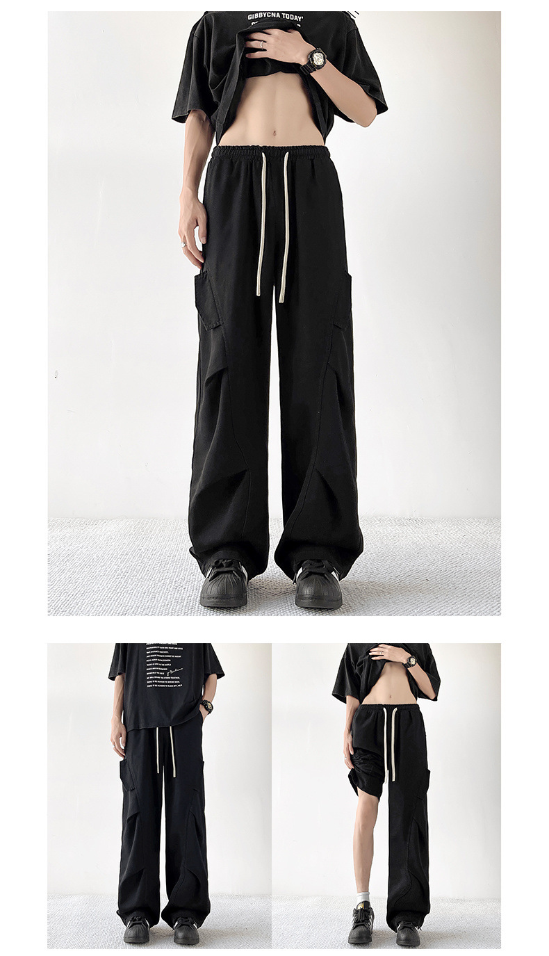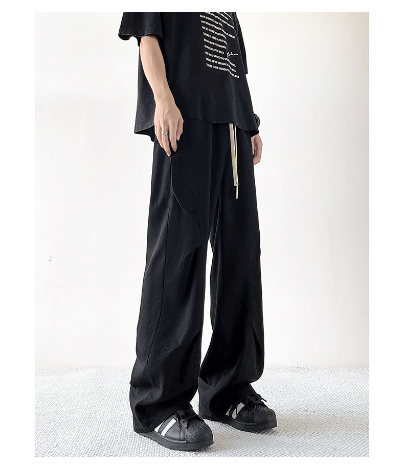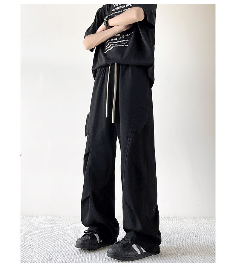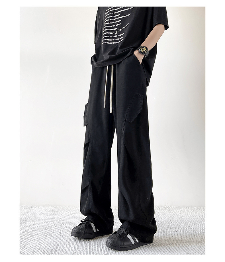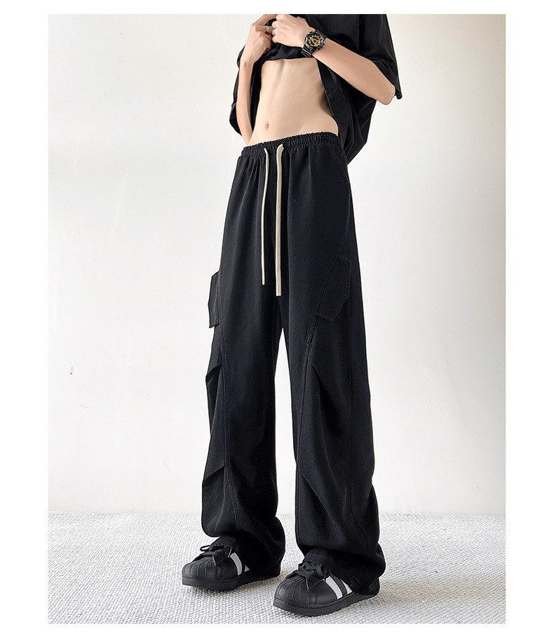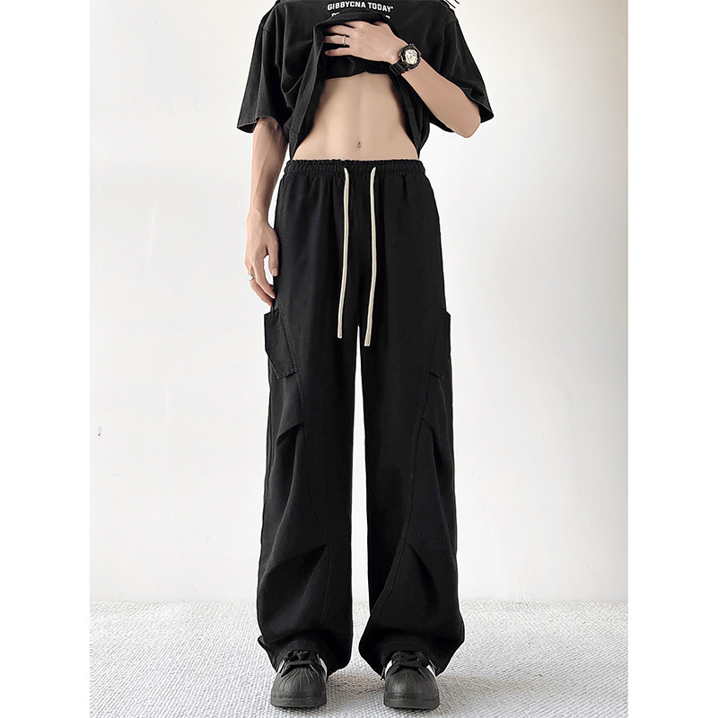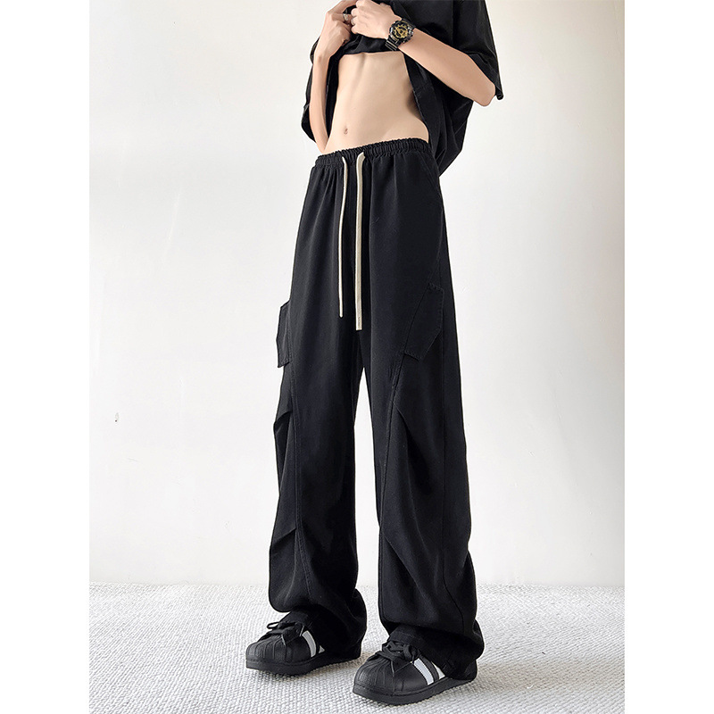冰丝牛仔裤男秋季薄款凉感褶皱工装裤美式高街宽松直筒松