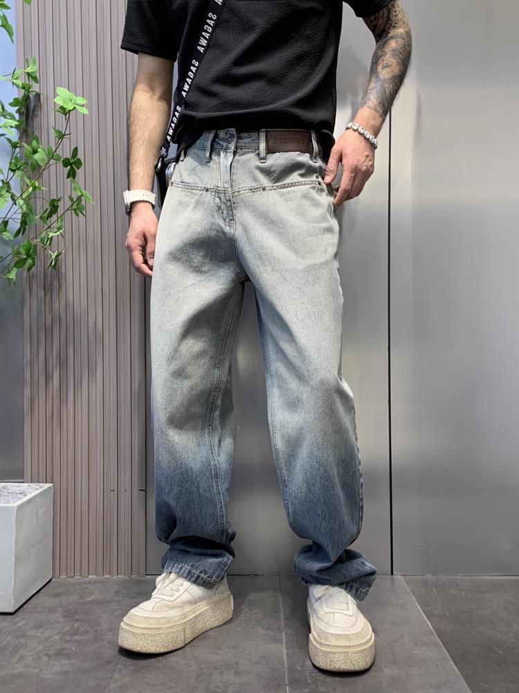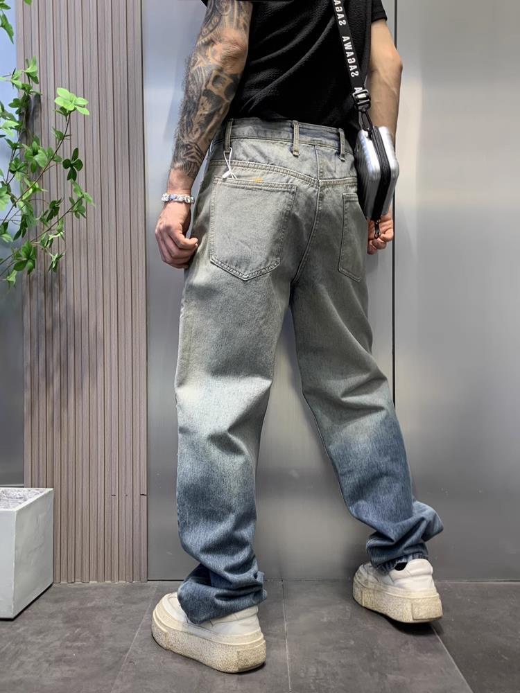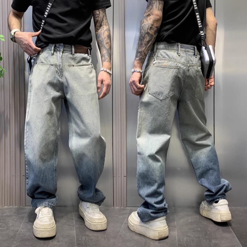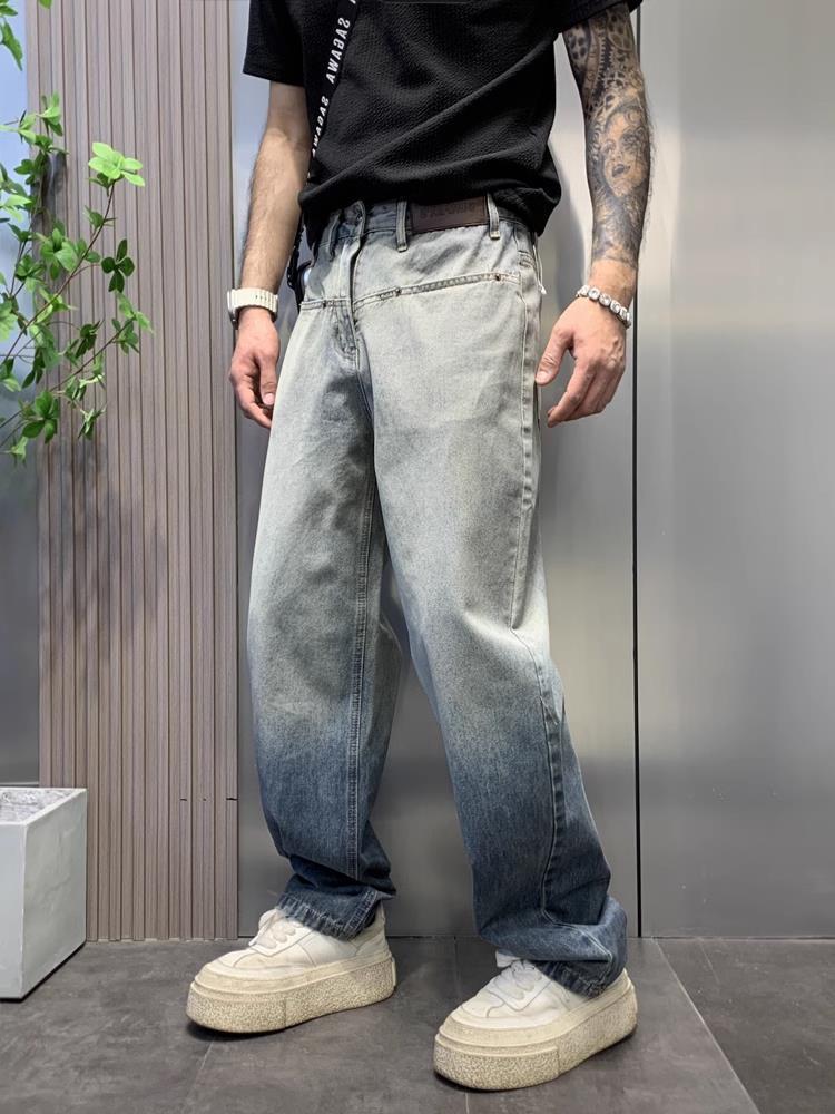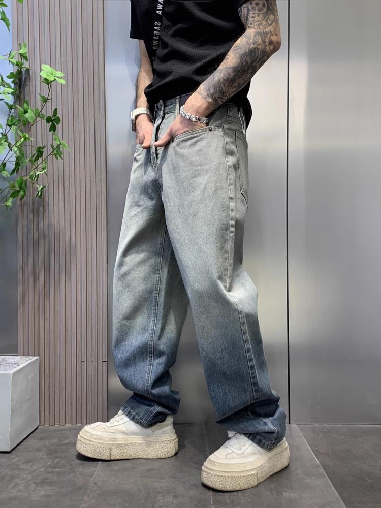 美式渐变水洗牛仔裤男街头潮牌宽松直筒垂感慵懒高街复古