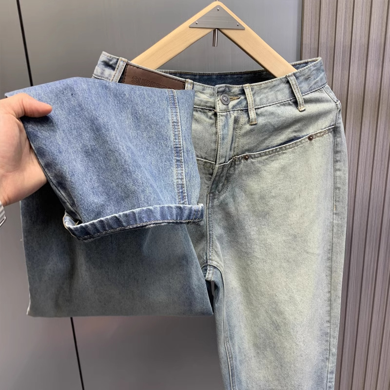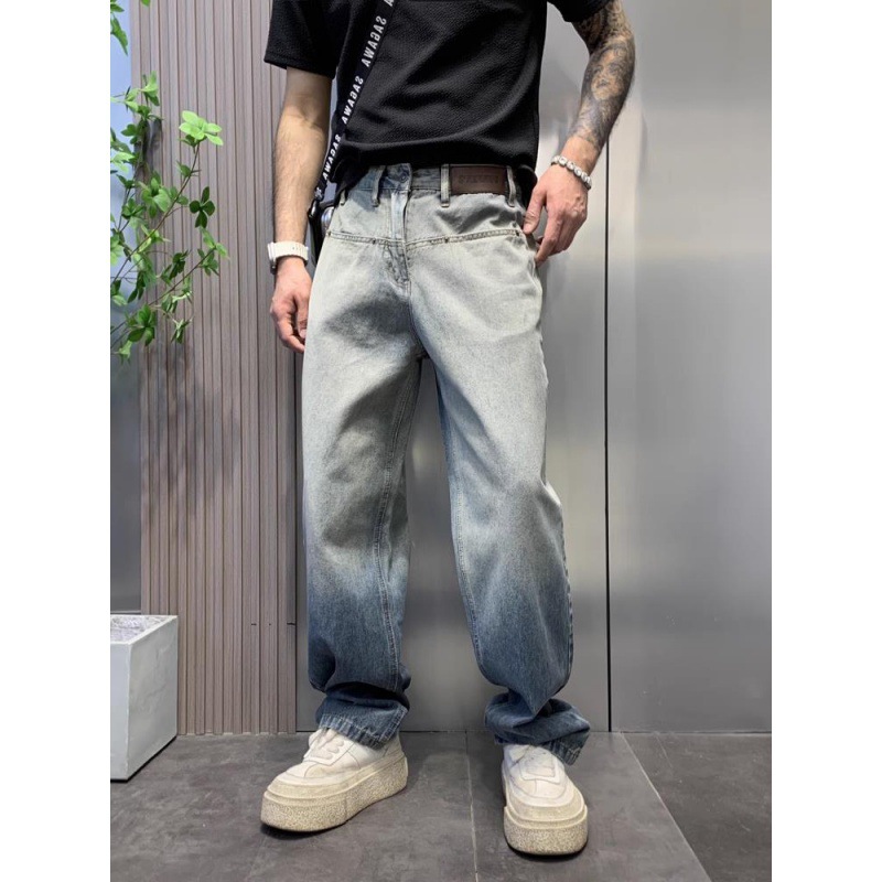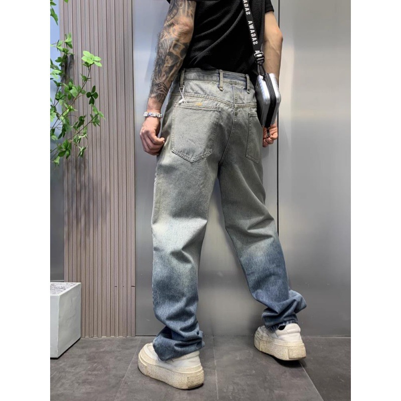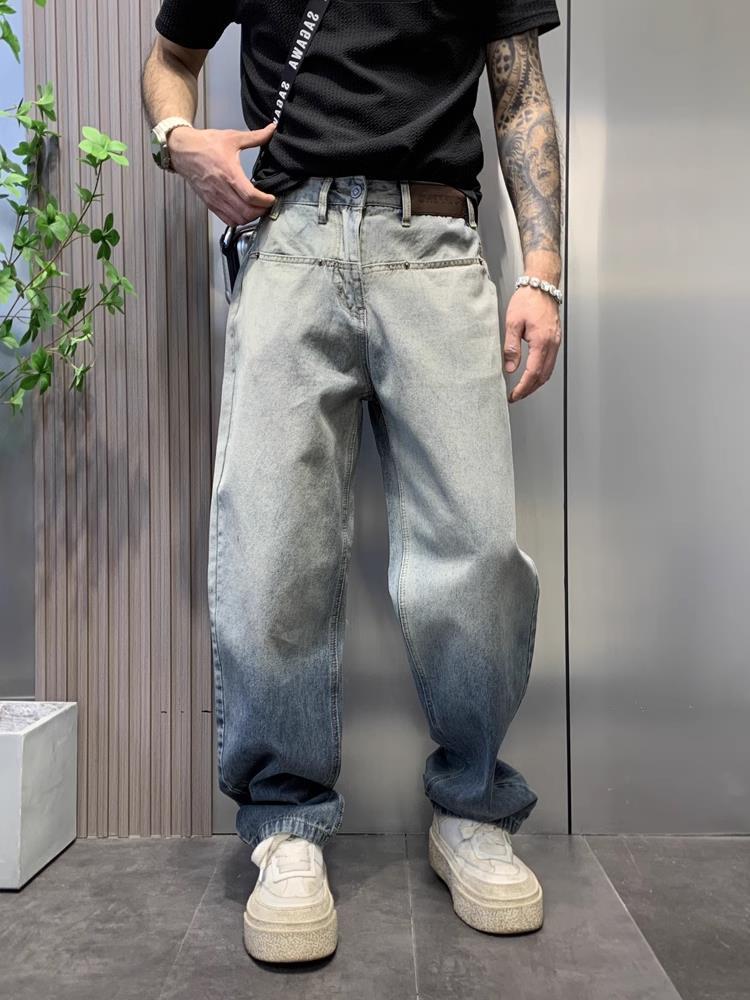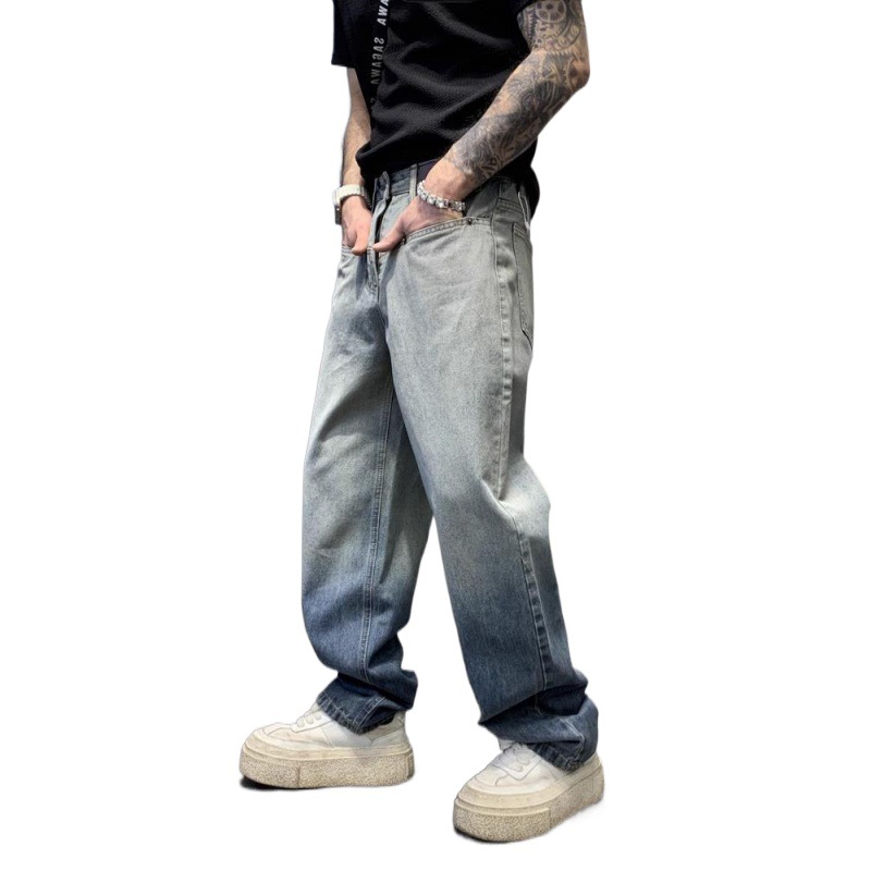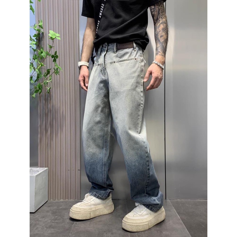 美式渐变水洗牛仔裤男街头潮牌宽松直筒垂感慵懒高街复古