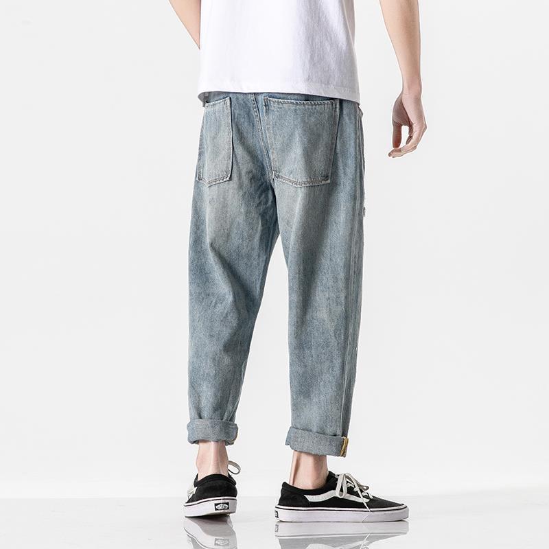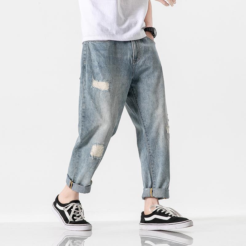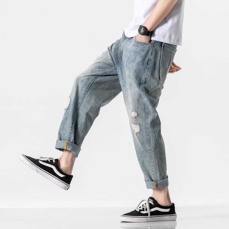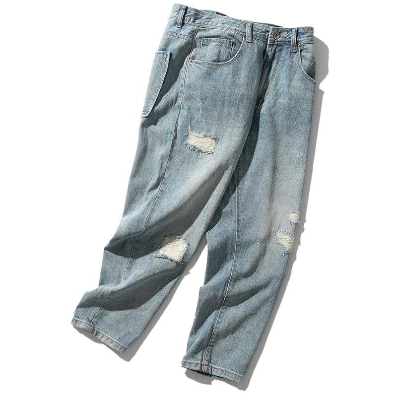 夏季潮牌男士破洞牛仔裤宽松直筒韩版潮流薄款ins九分裤