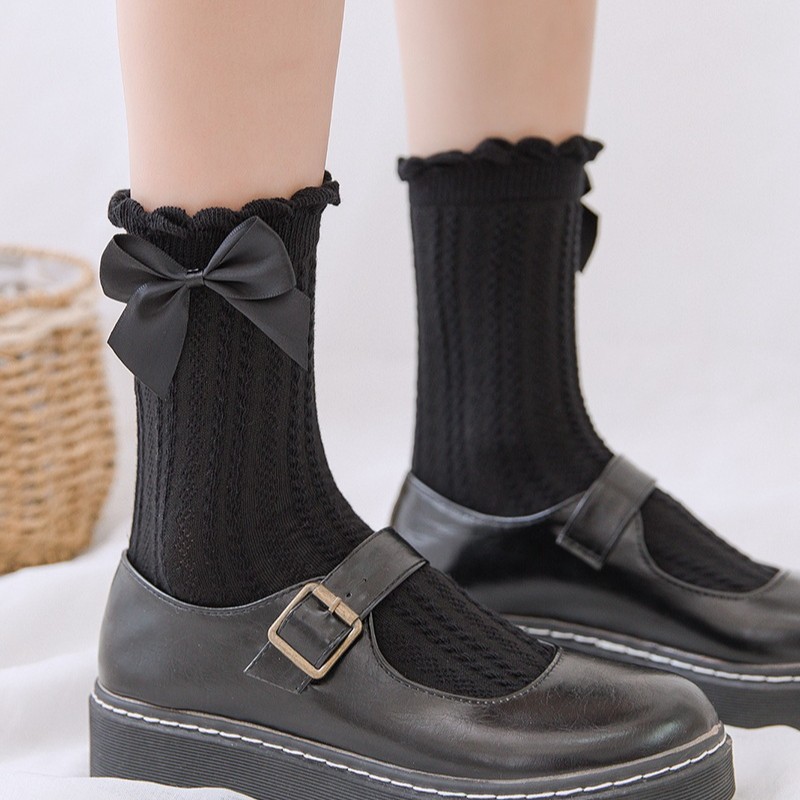 日系jk制服中筒袜lolita燕尾蝴蝶结网眼袜棉洛丽塔袜子女泡泡口袜