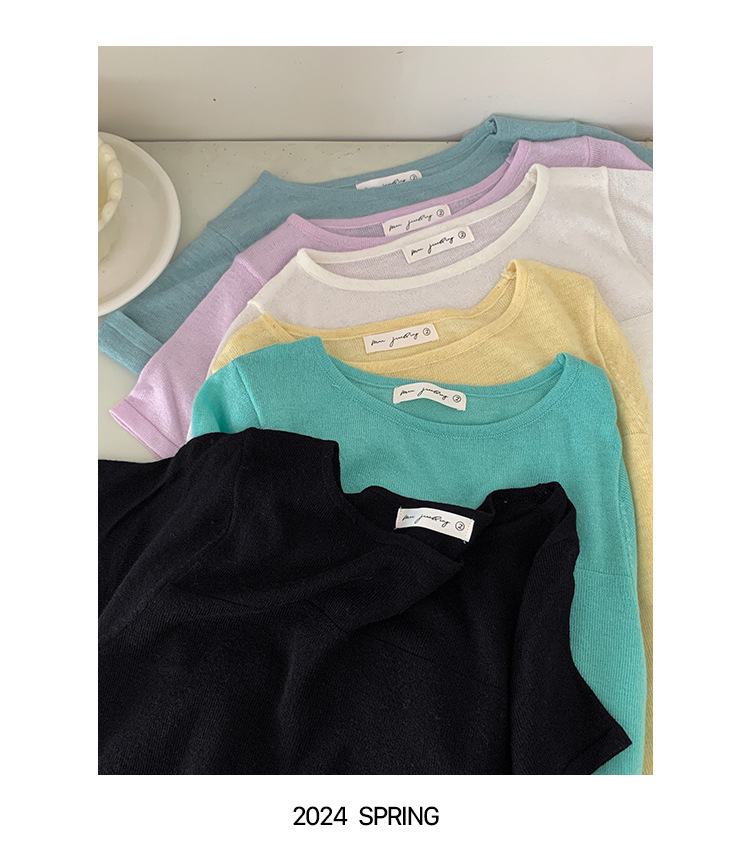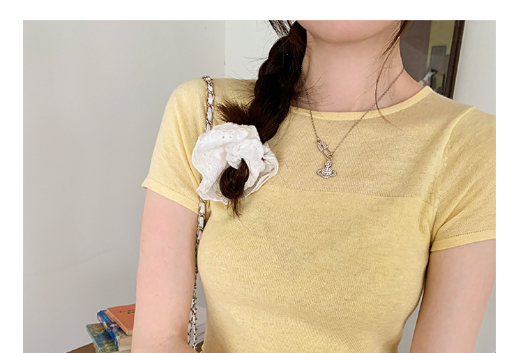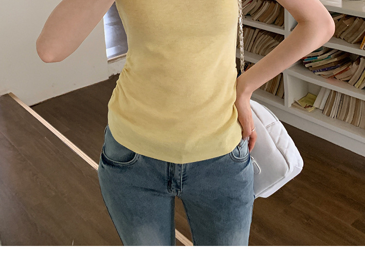 韩系气质纯欲收腰抽褶拼接薄款短袖针织T恤夏季新款修身上衣
