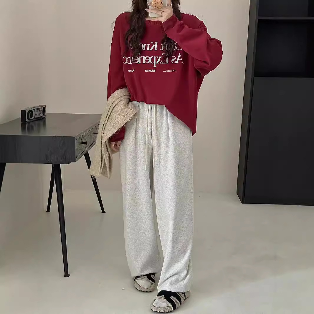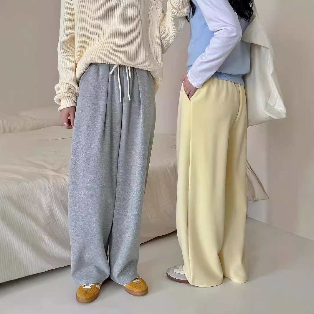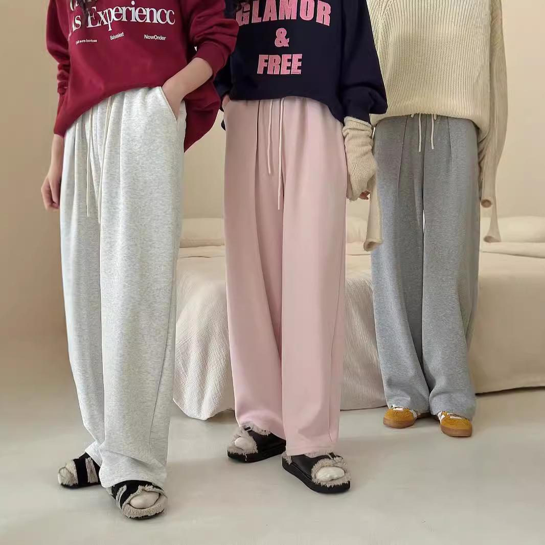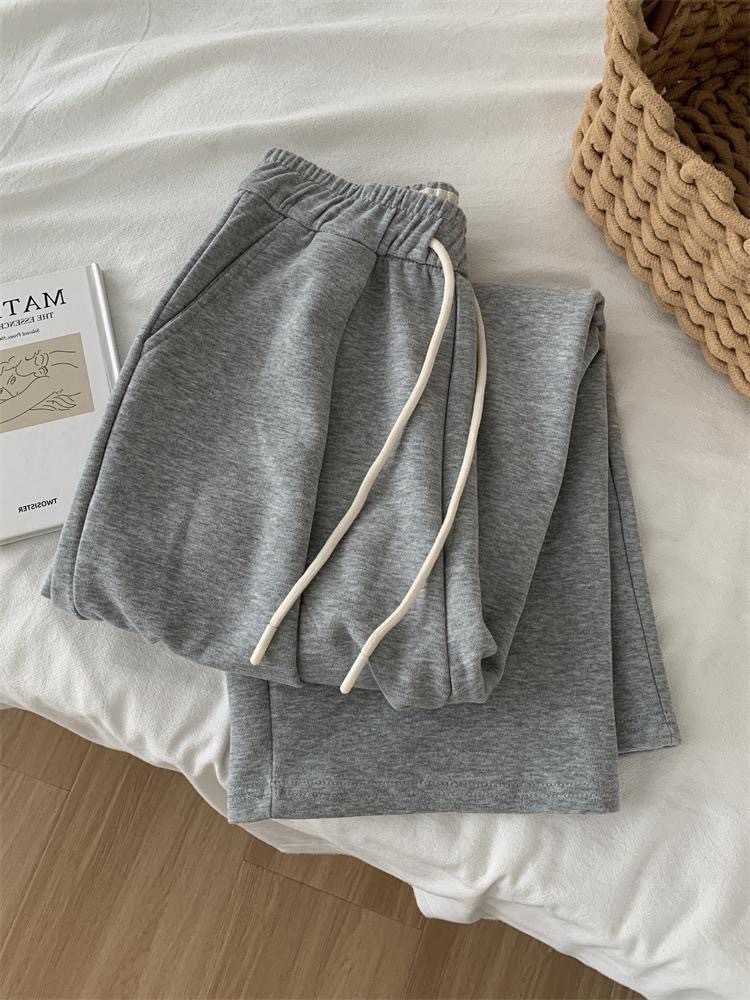 韩版新款早秋直筒阔腿裤女宽松马卡龙色休闲运动裤百搭棉质长裤子
