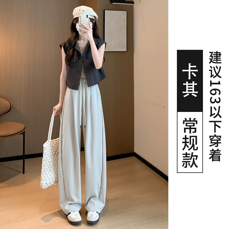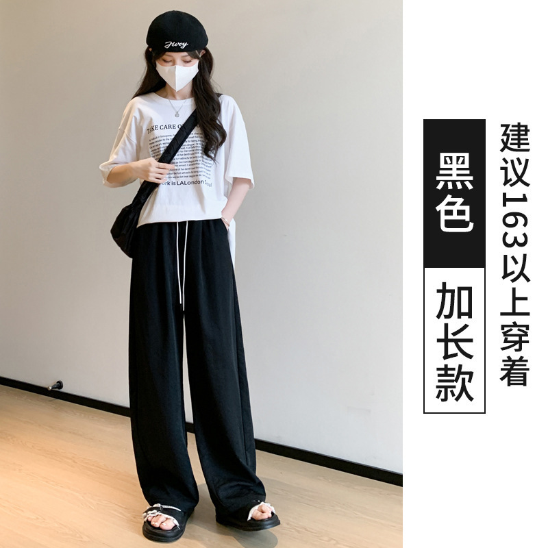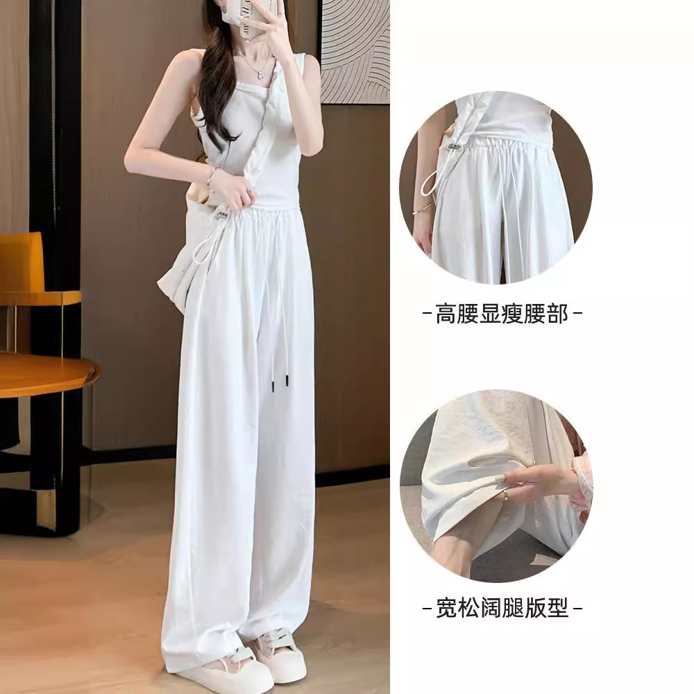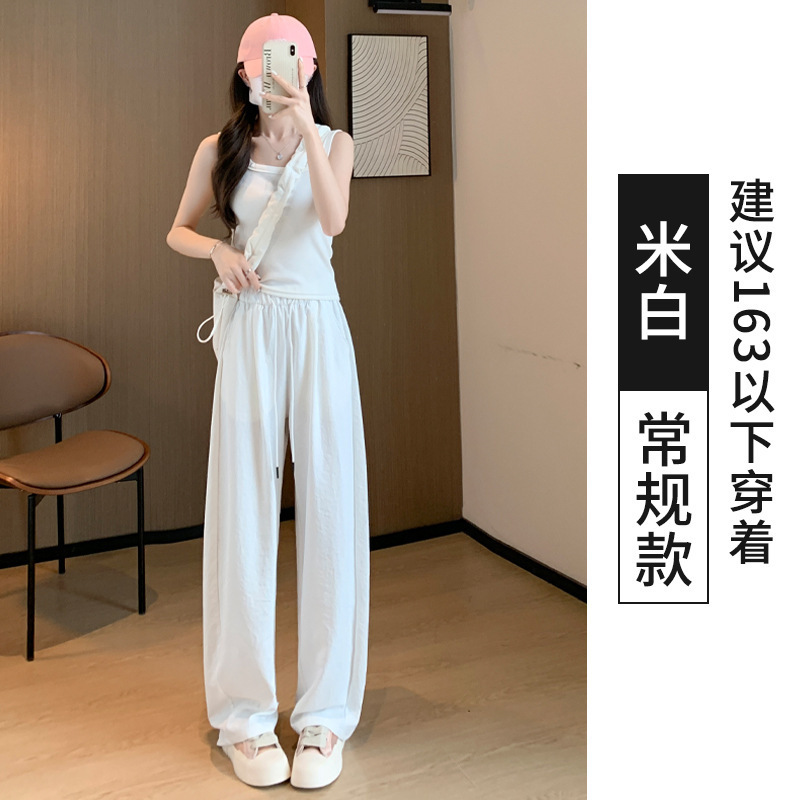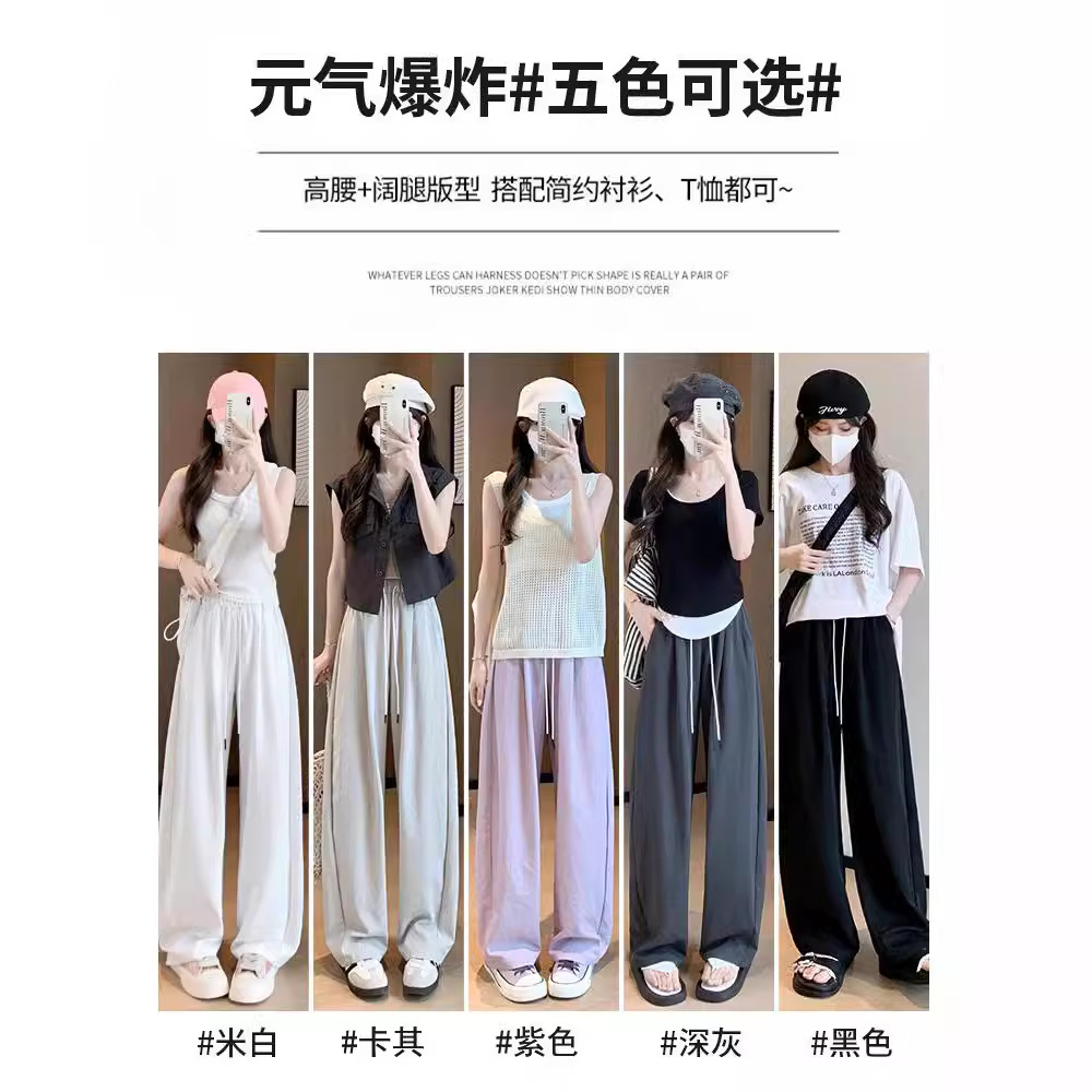 白色运动阔腿裤女夏季薄款高腰垂感宽松舒适休闲速干香蕉弯刀裤