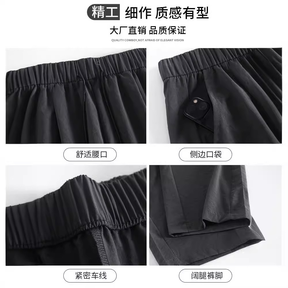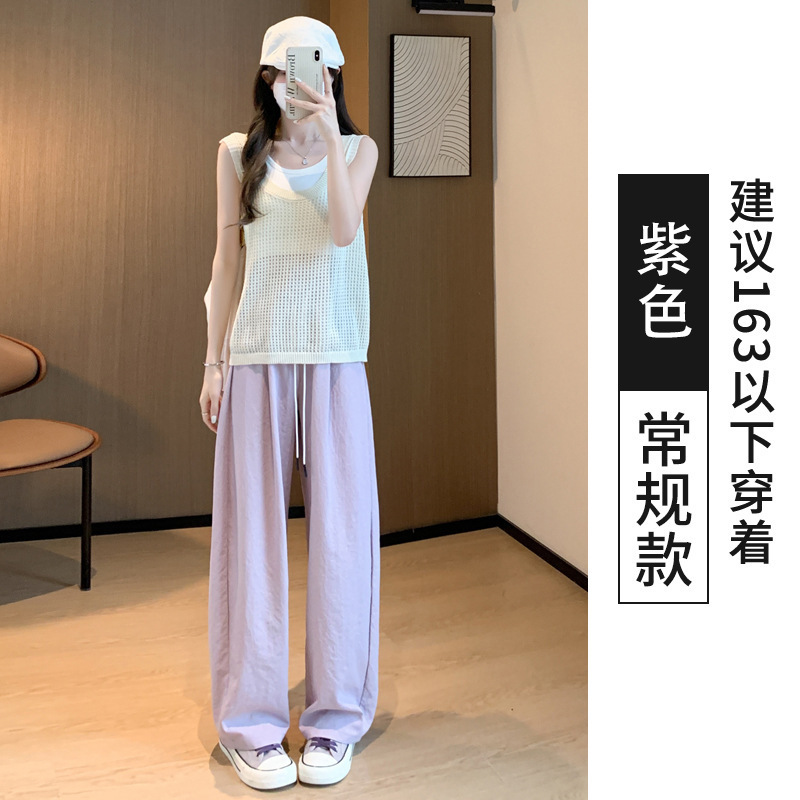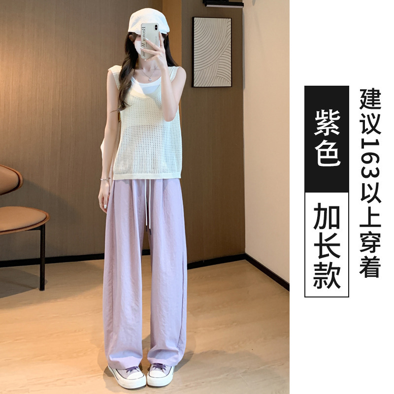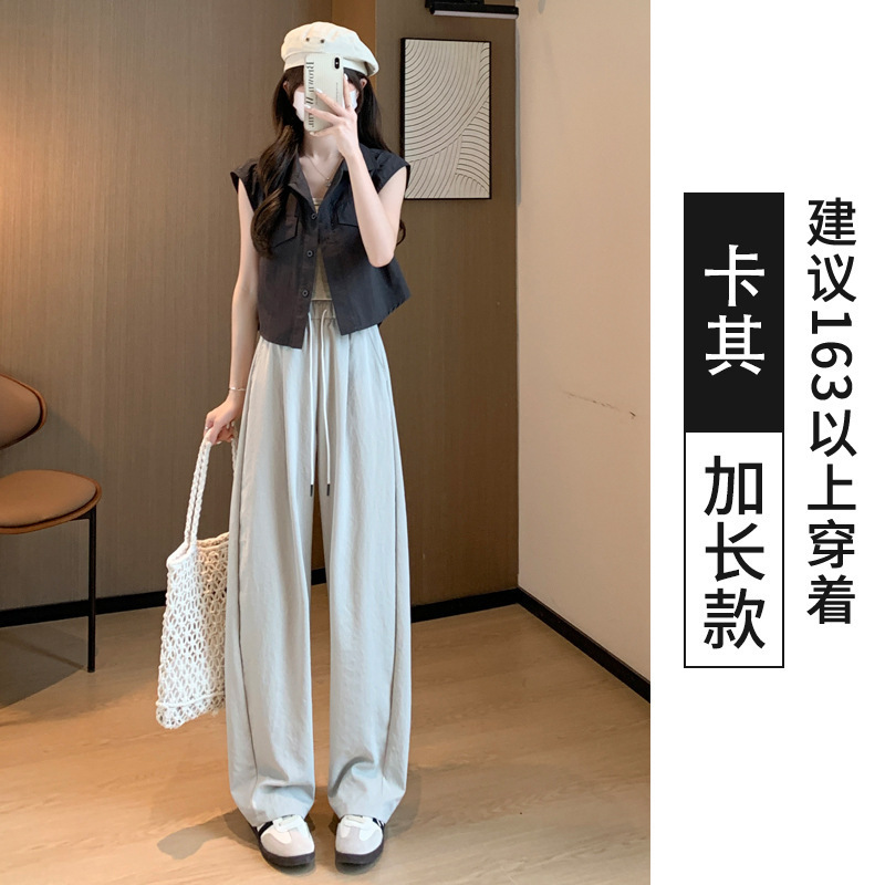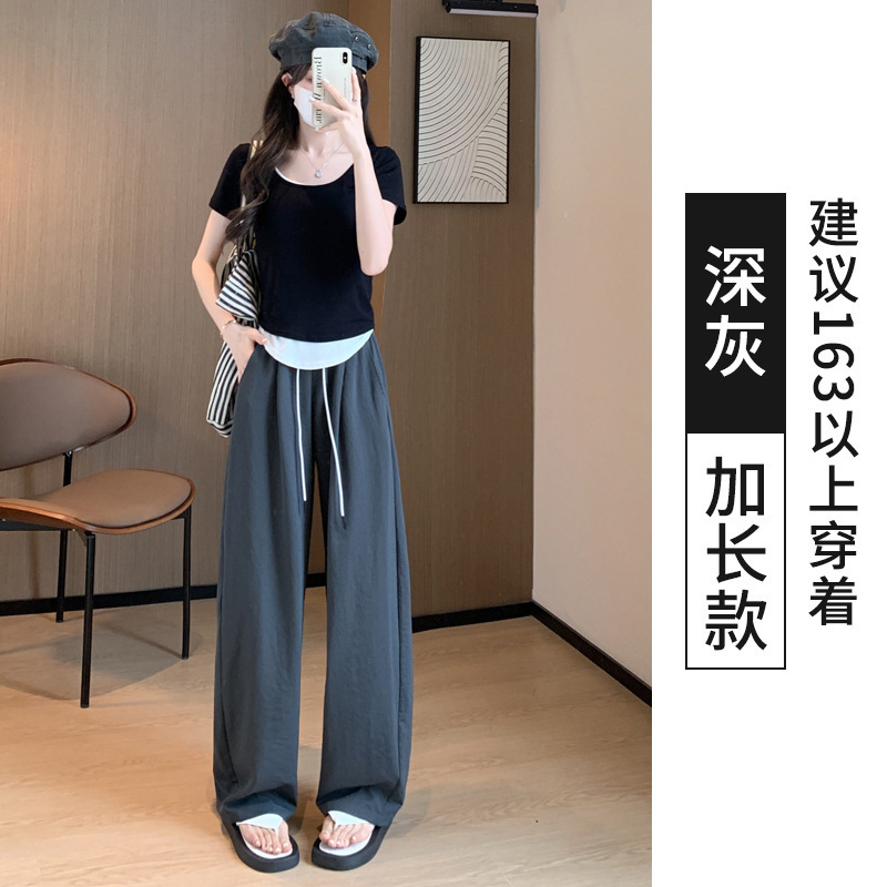 白色运动阔腿裤女夏季薄款高腰垂感宽松舒适休闲速干香蕉弯刀裤