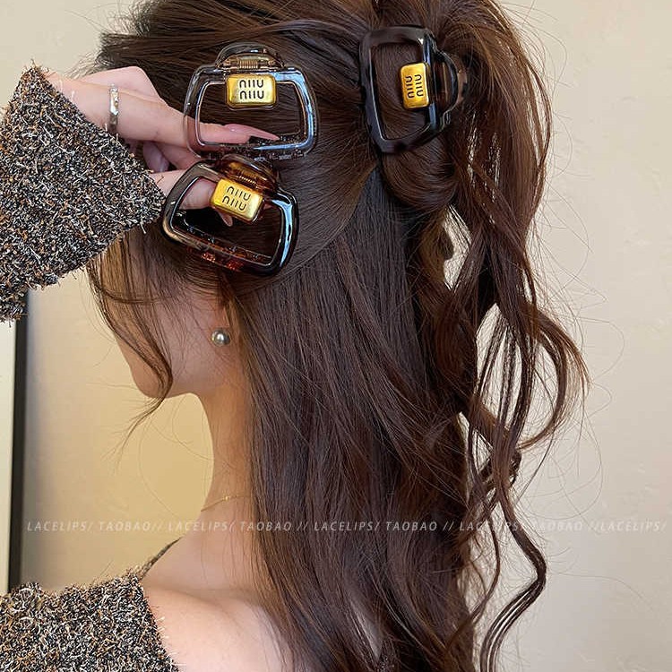 安可拉红字母抓夹女后脑勺半扎发鲨鱼夹子中号发夹高马尾发卡头饰