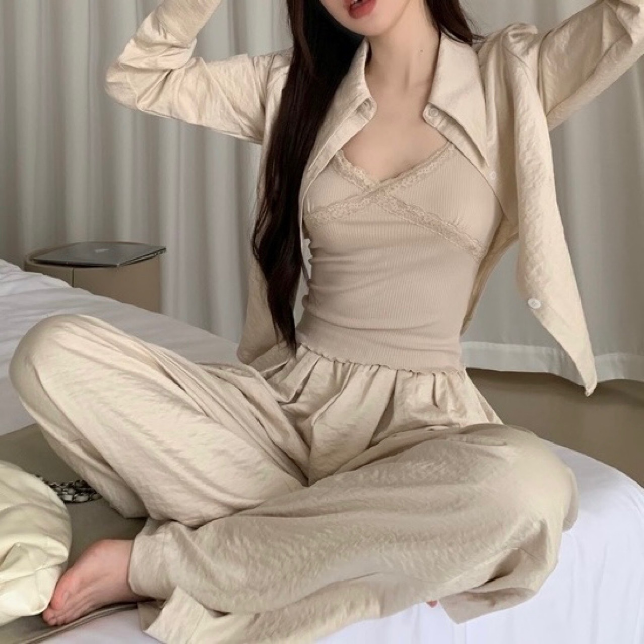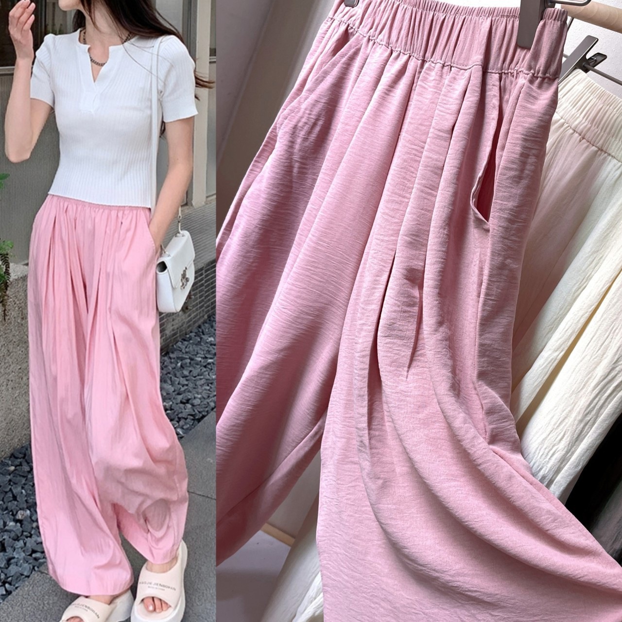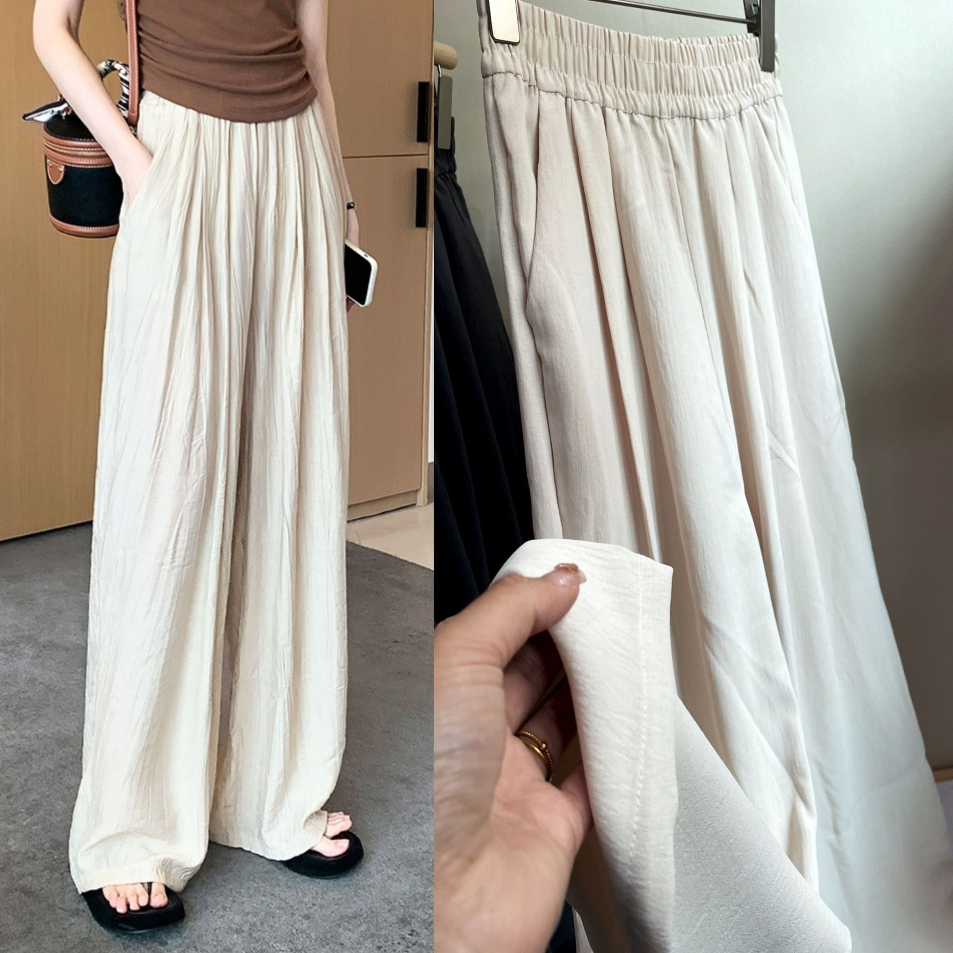 宽松褶肌理感休闲日系天丝阔腿裤女山本裤 夏天遛弯慵懒风抖抖裤