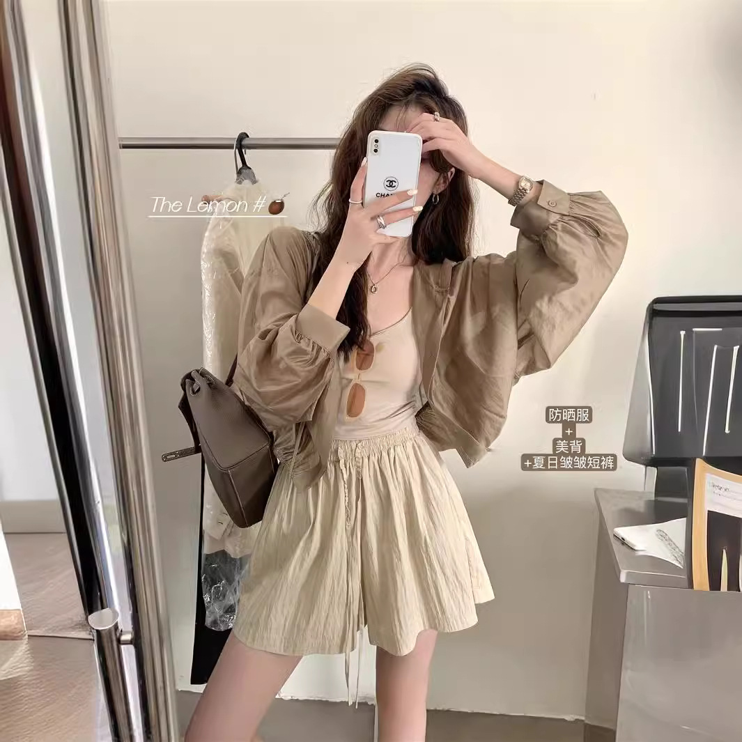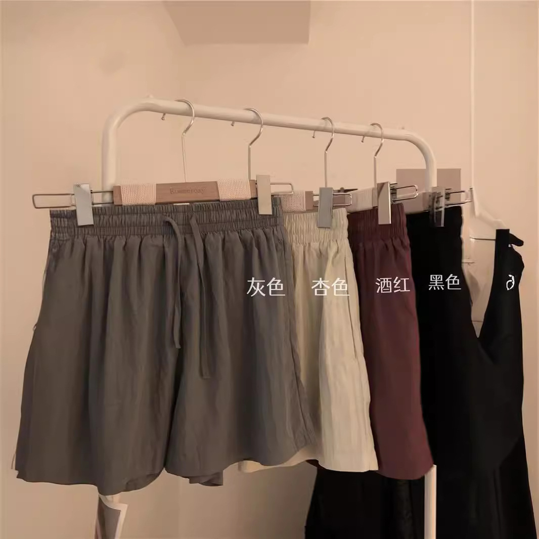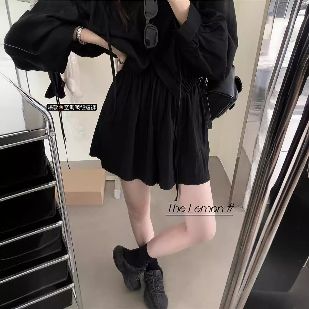锦棉冰丝速干肌理短裤女夏季薄款宽松松紧褶皱凉凉裤阔腿裤五分裤