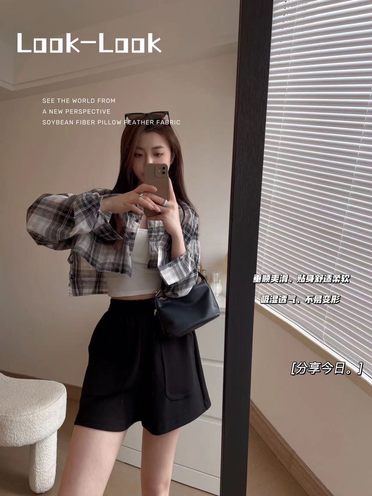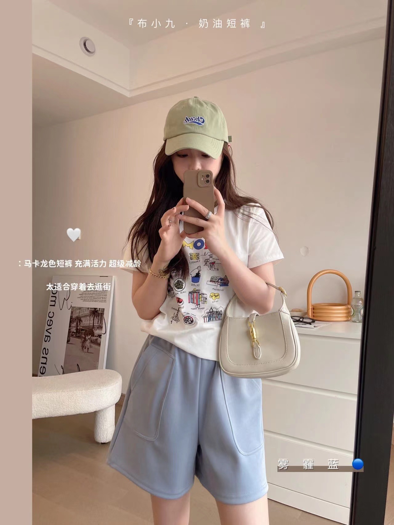 亿涵梦奶油空气层短裤女外夏韩版宽松百搭运动舒适穿纯色休闲短裤