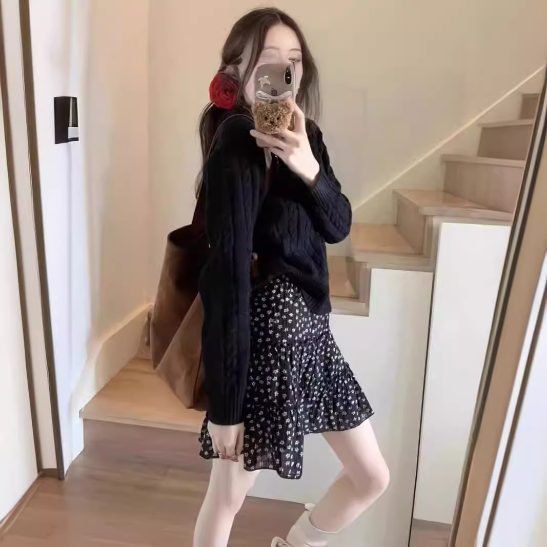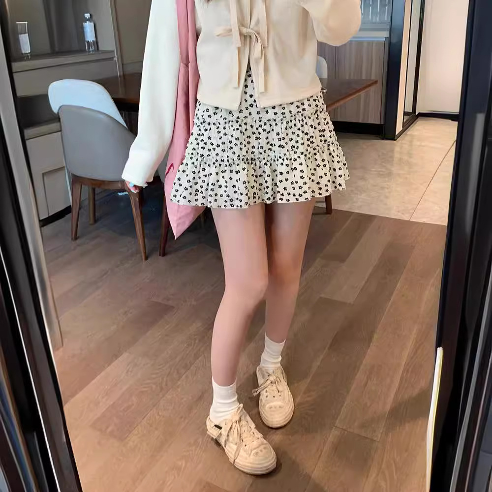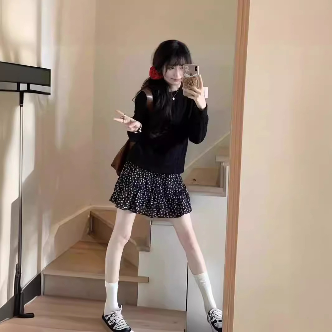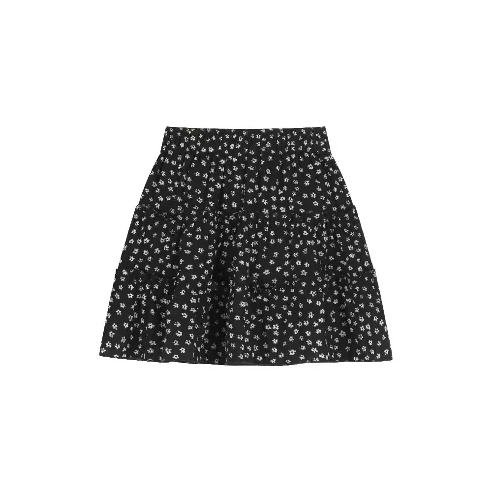 黑色碎花半身裙女夏季新款气质蛋糕裙半裙小个子a字裙子短裙