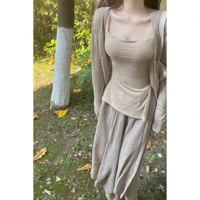 日系复古港风纯棉一体式不规则斜开叉吊带背心舒适纯色内搭上衣女