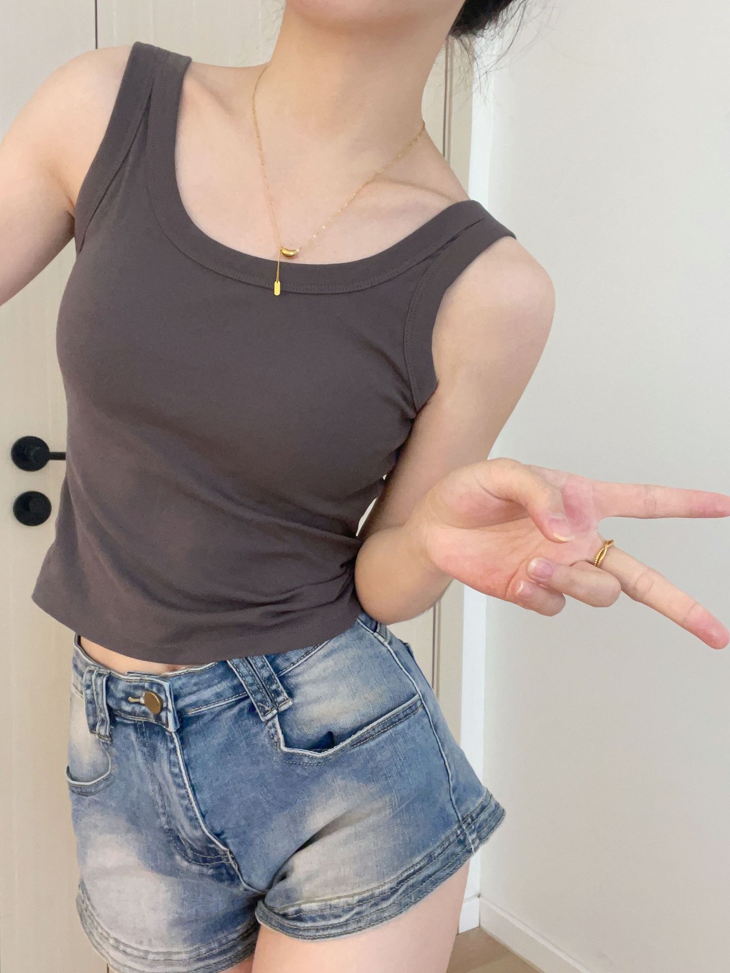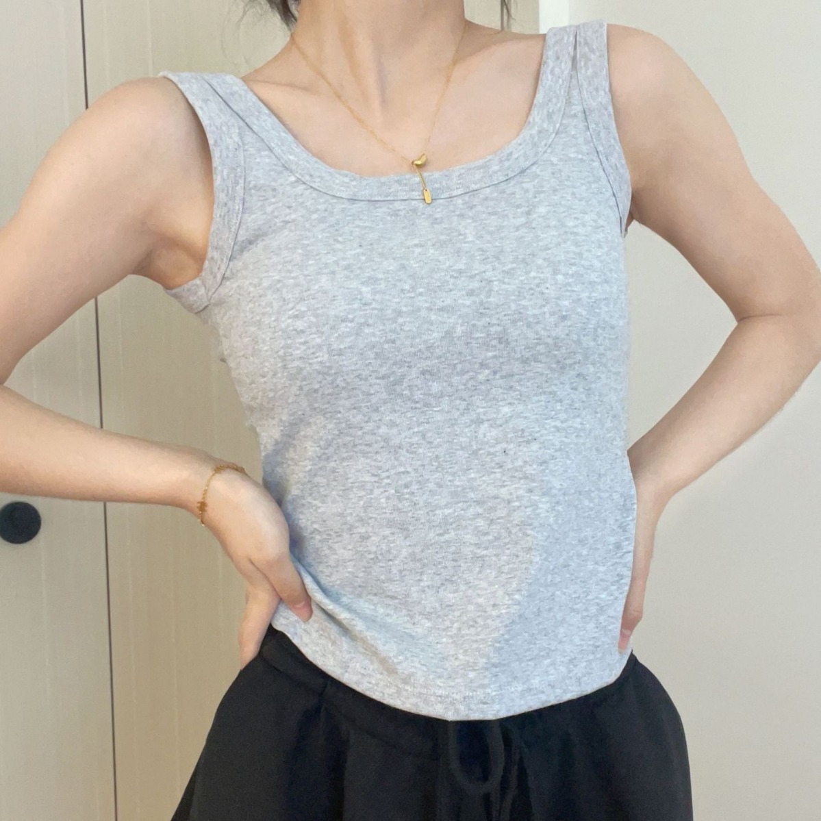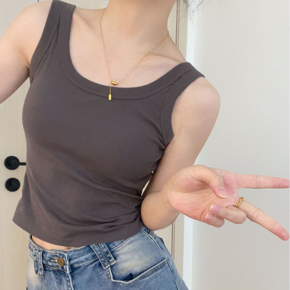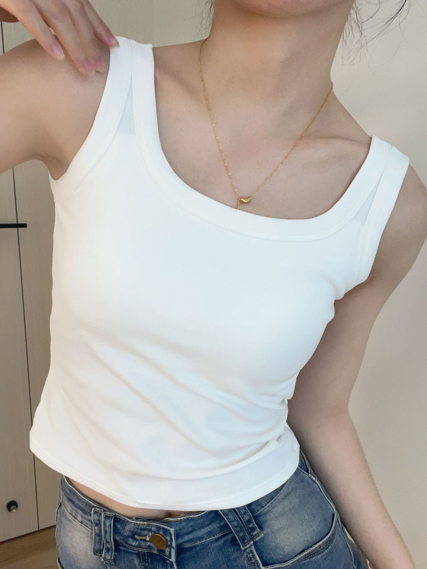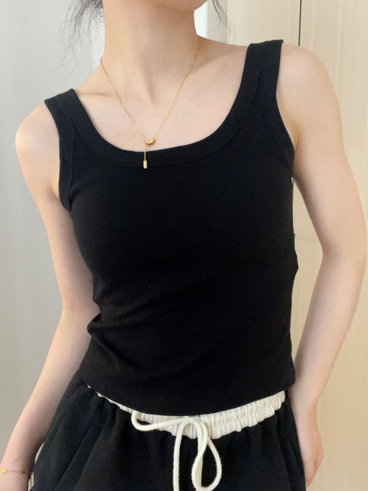 纯色背心吊带女自带胸垫固定杯背心遮副乳百搭内搭外穿简约背心