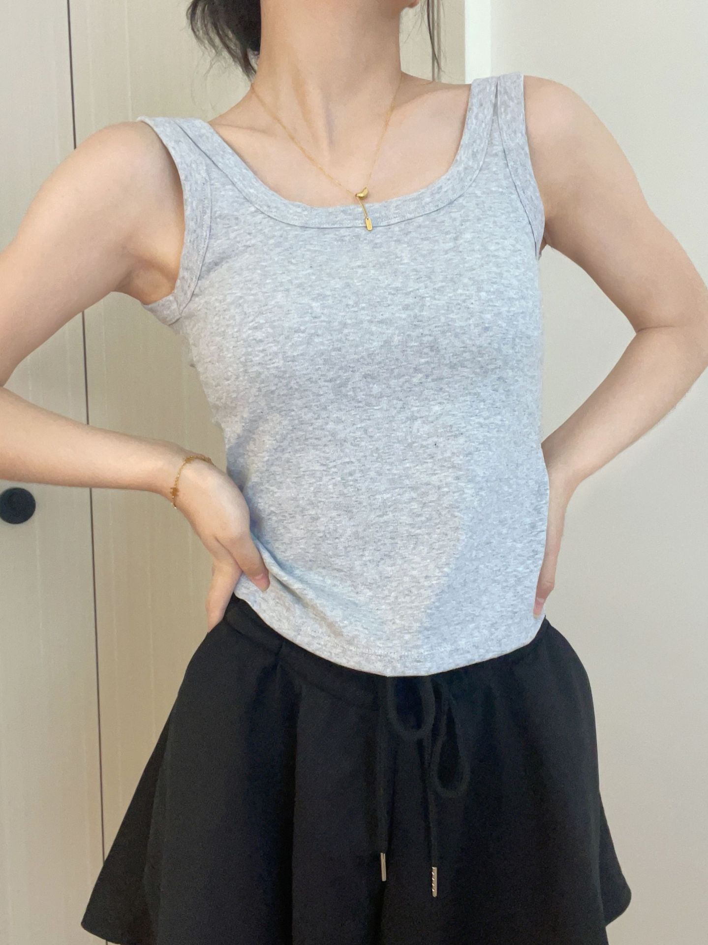 【价值高于价格】高弹细螺纹打底衫上衣夏新款百搭露背吊带背心女