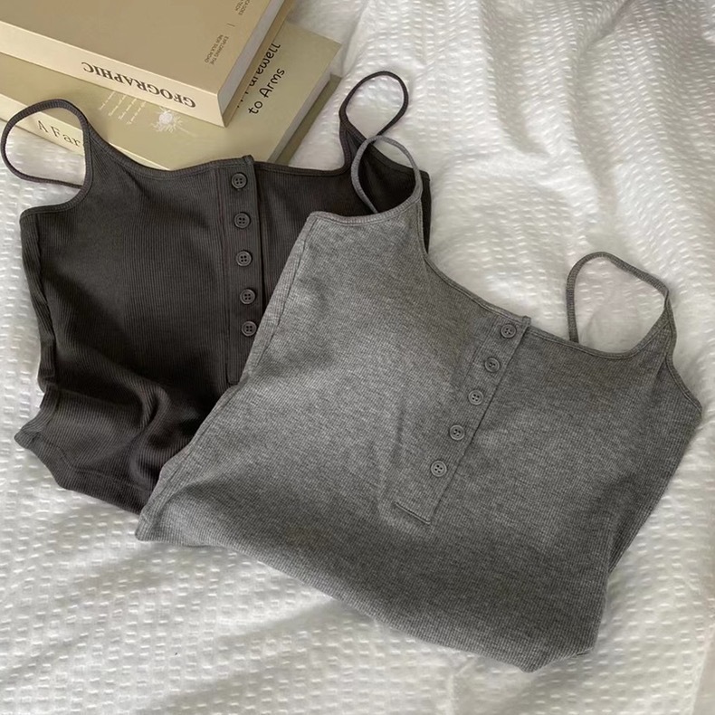 8820#纯欲纽扣吊带美背背心洋气百搭外穿上衣修身显瘦螺纹固定杯