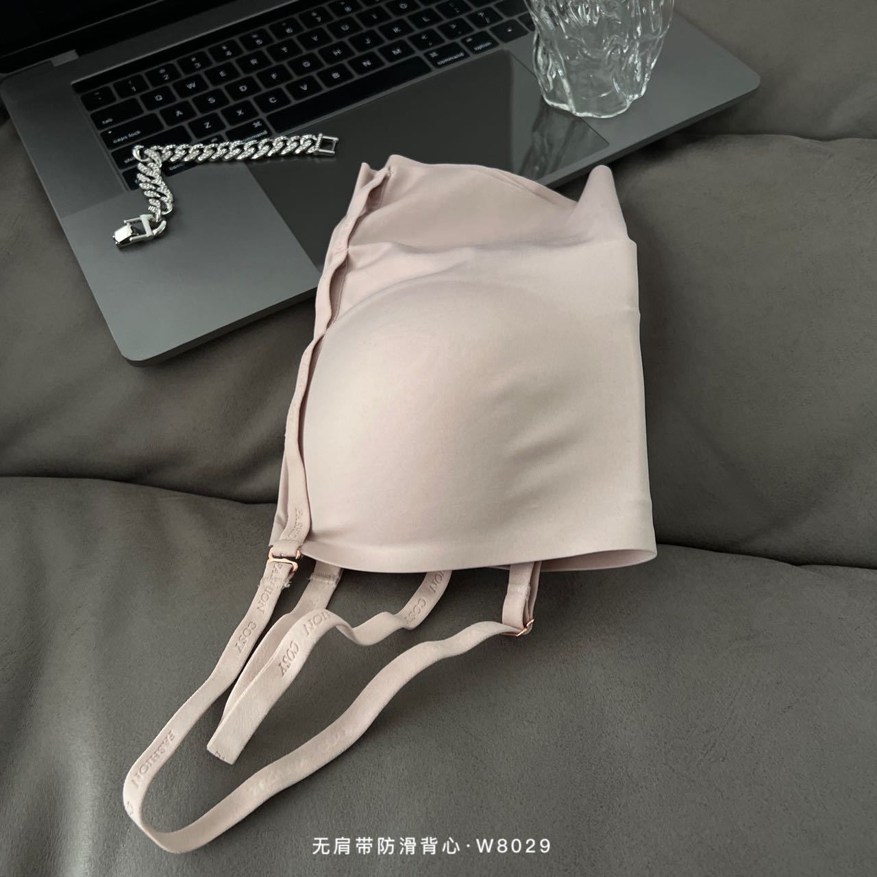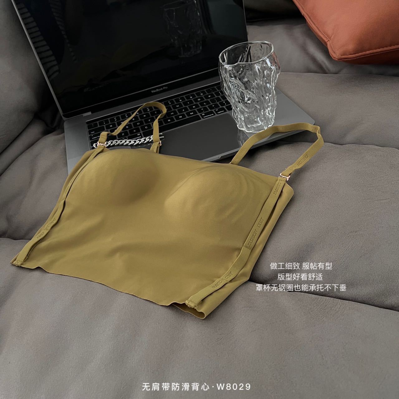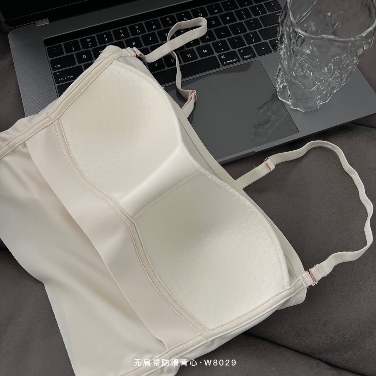 新品夏性感光面无钢圈 聚拢上托上薄下厚无肩带防滑文胸背心
