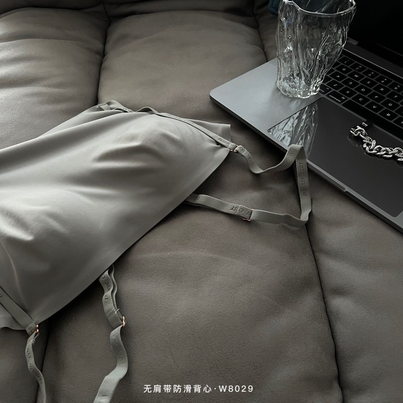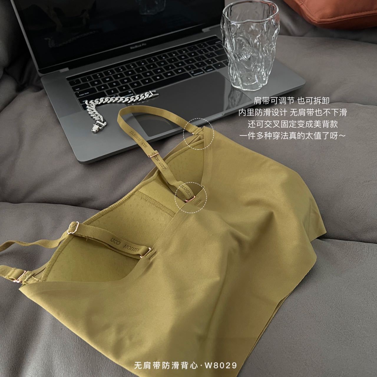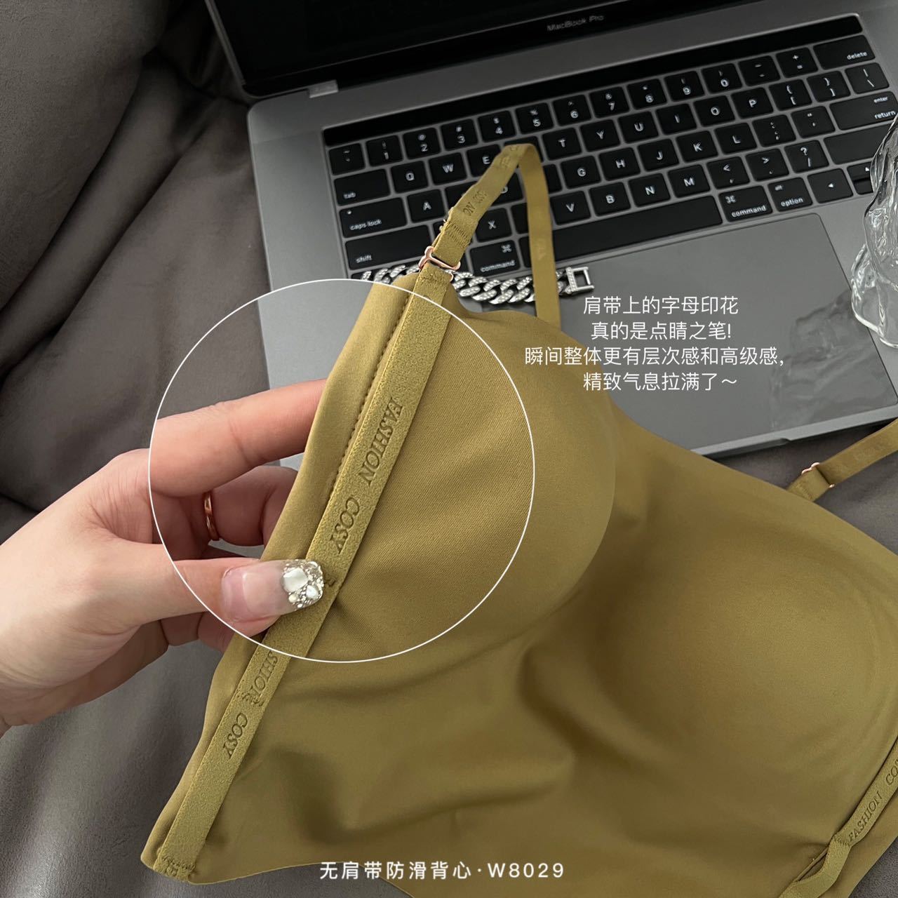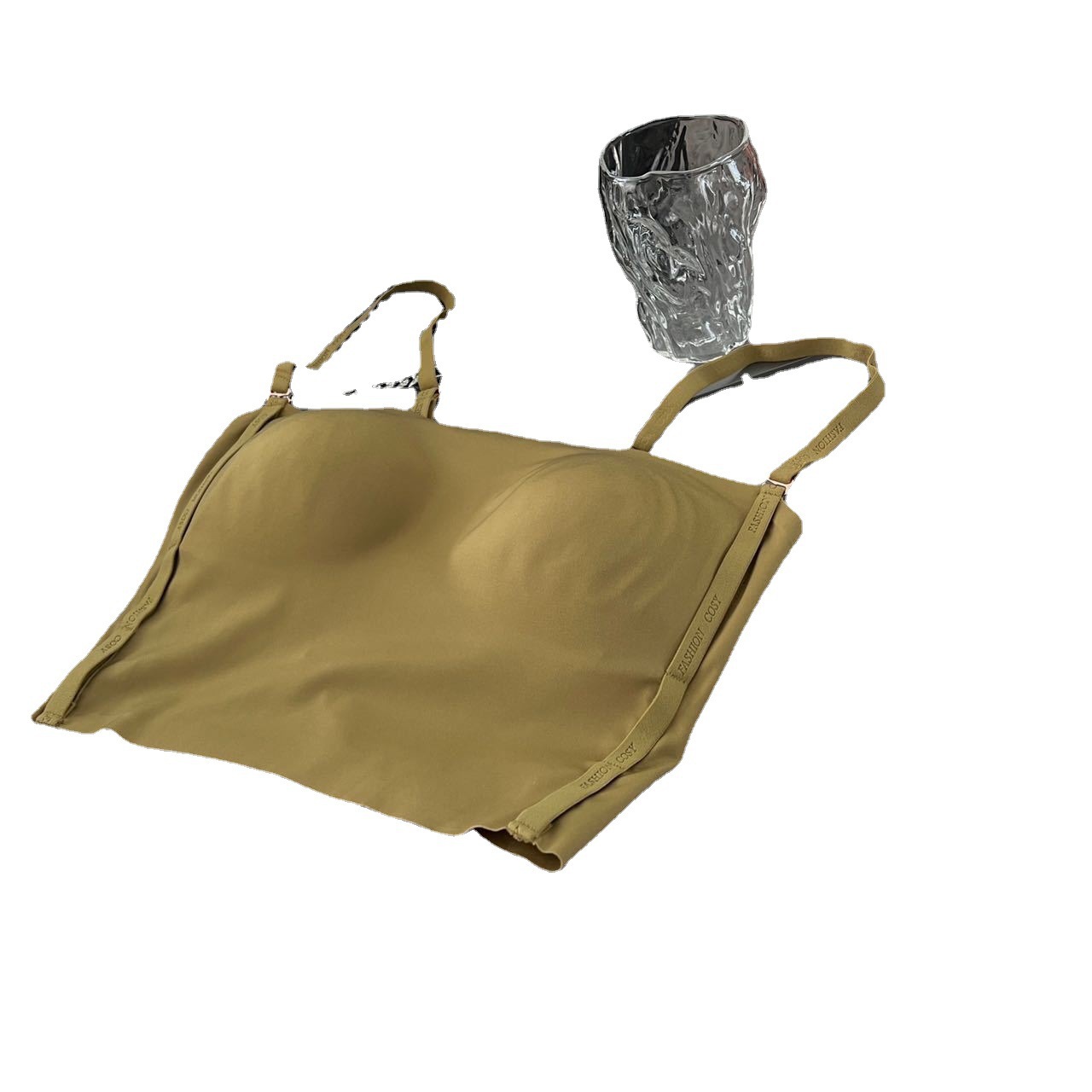 新品夏性感光面无钢圈 聚拢上托上薄下厚无肩带防滑文胸背心
