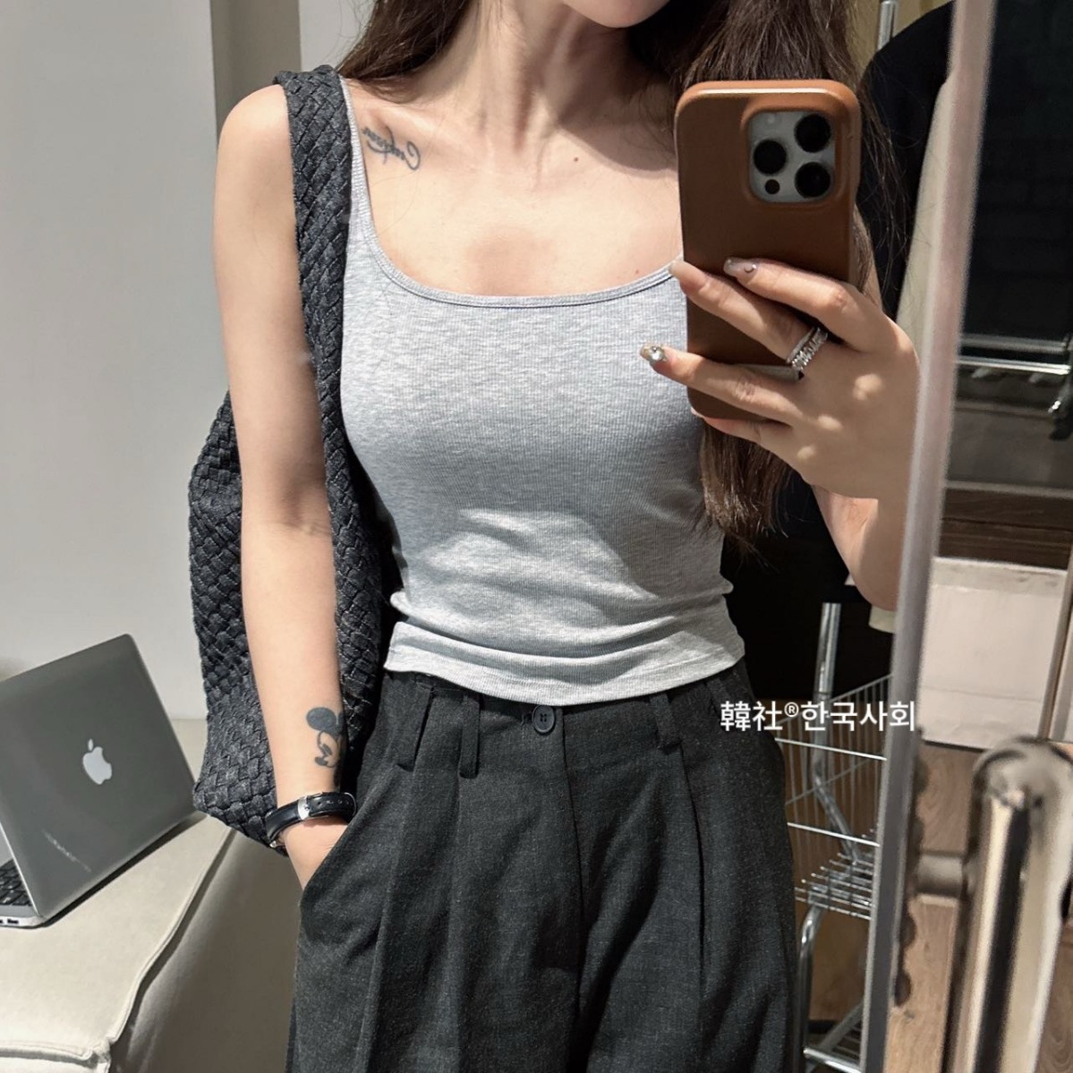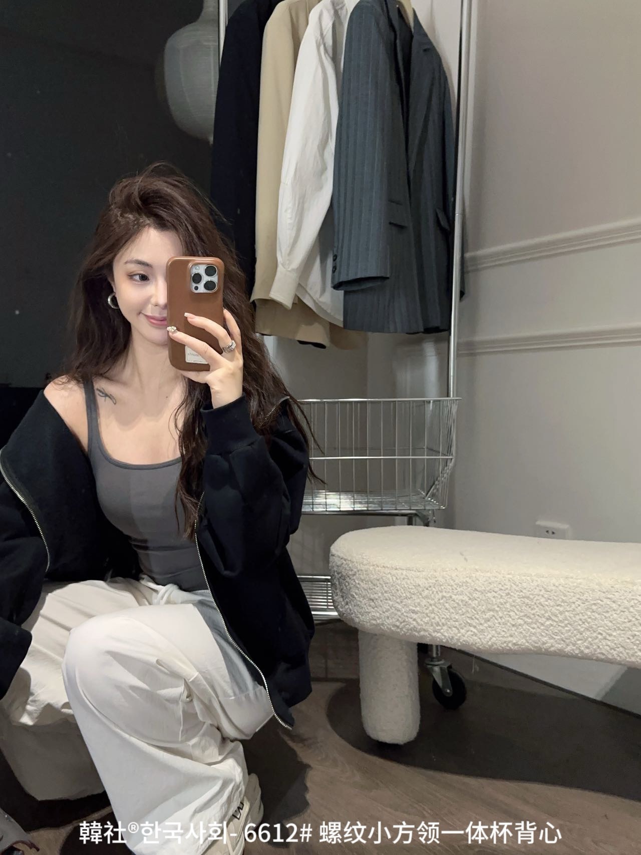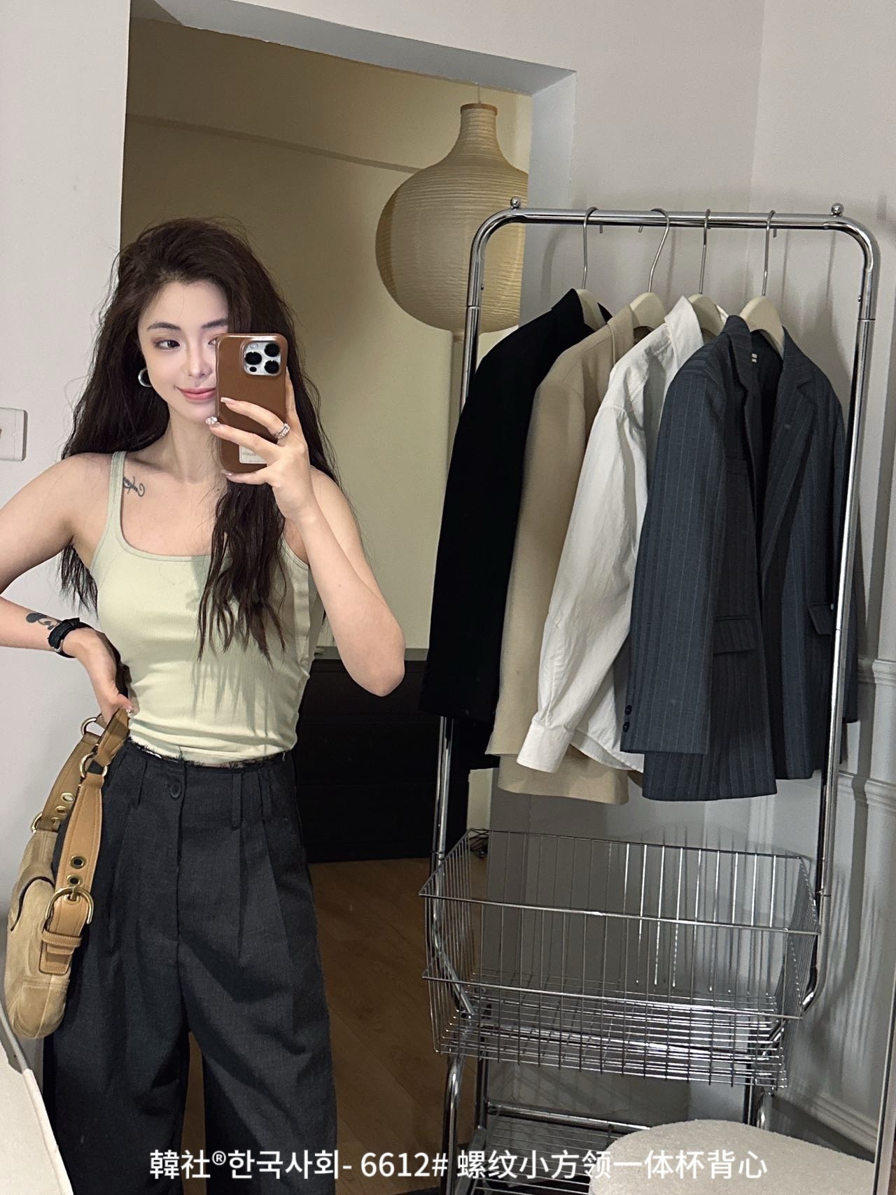 韩社6612#螺纹小方领一体杯背心女修身内搭外穿显瘦女生打底上衣