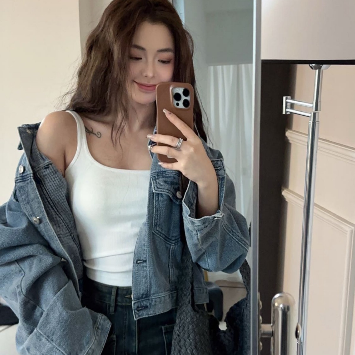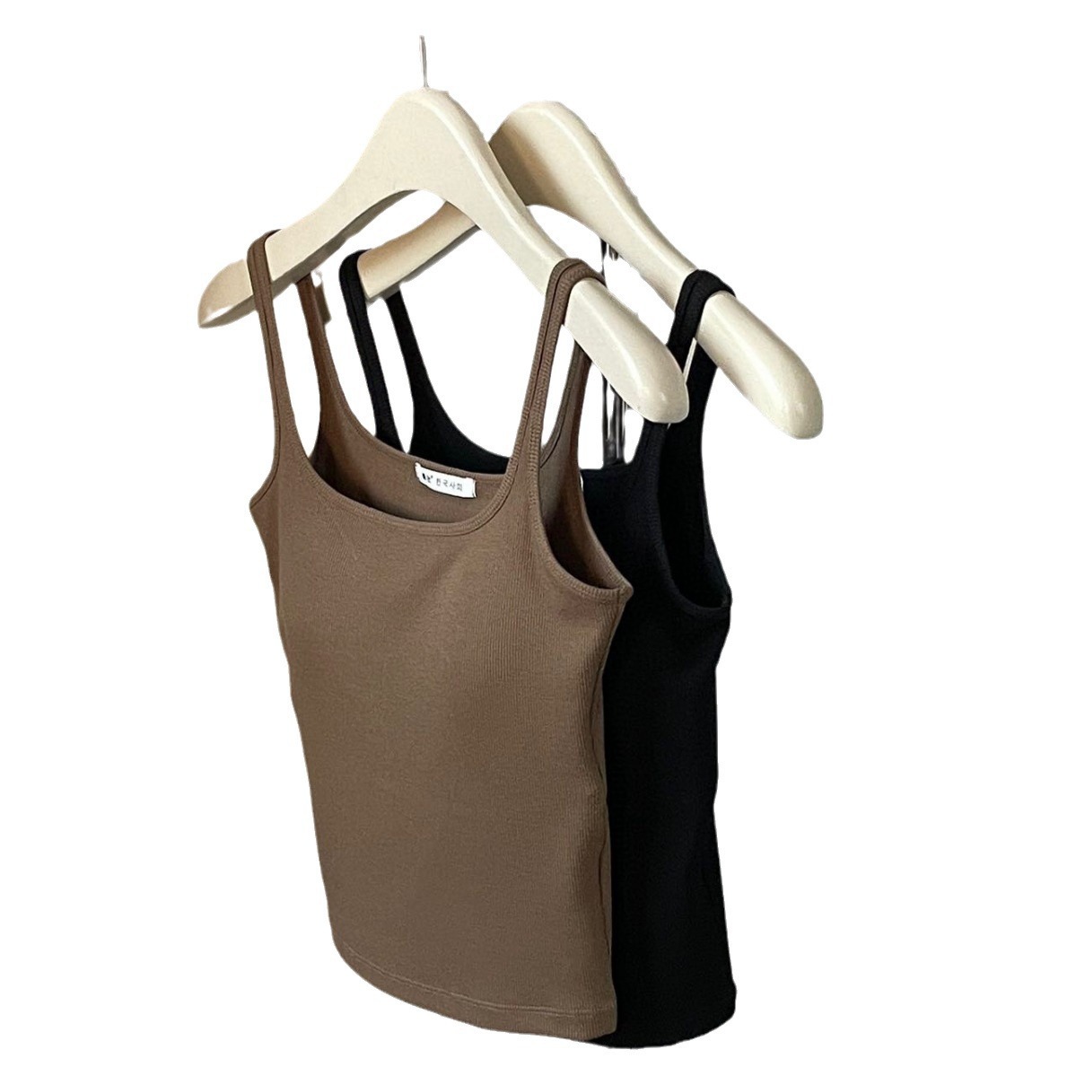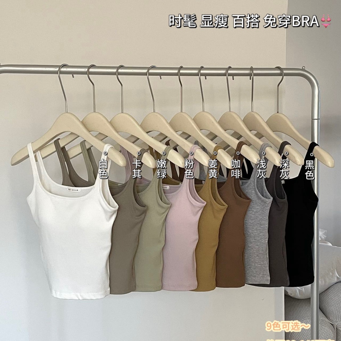 韩社6612#螺纹小方领一体杯背心女修身内搭外穿显瘦女生打底上衣