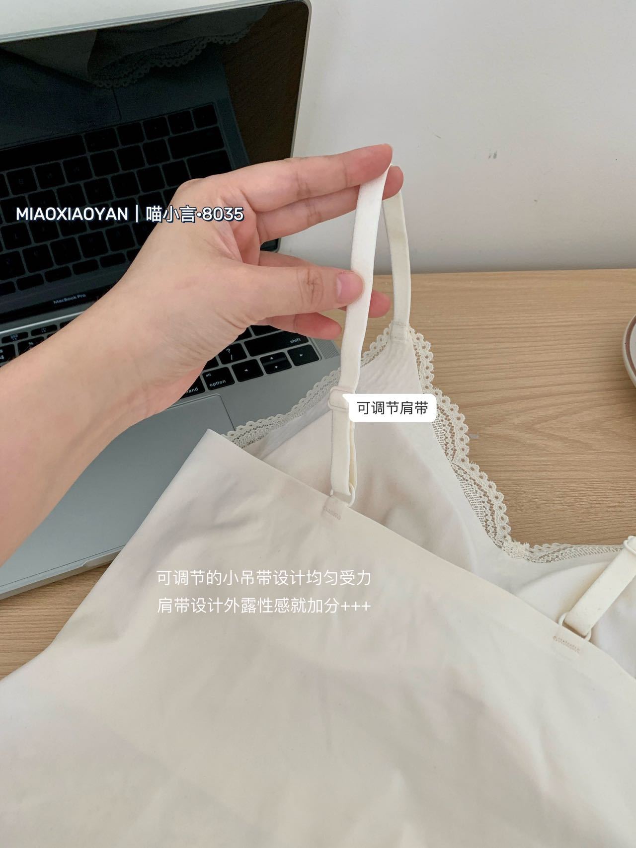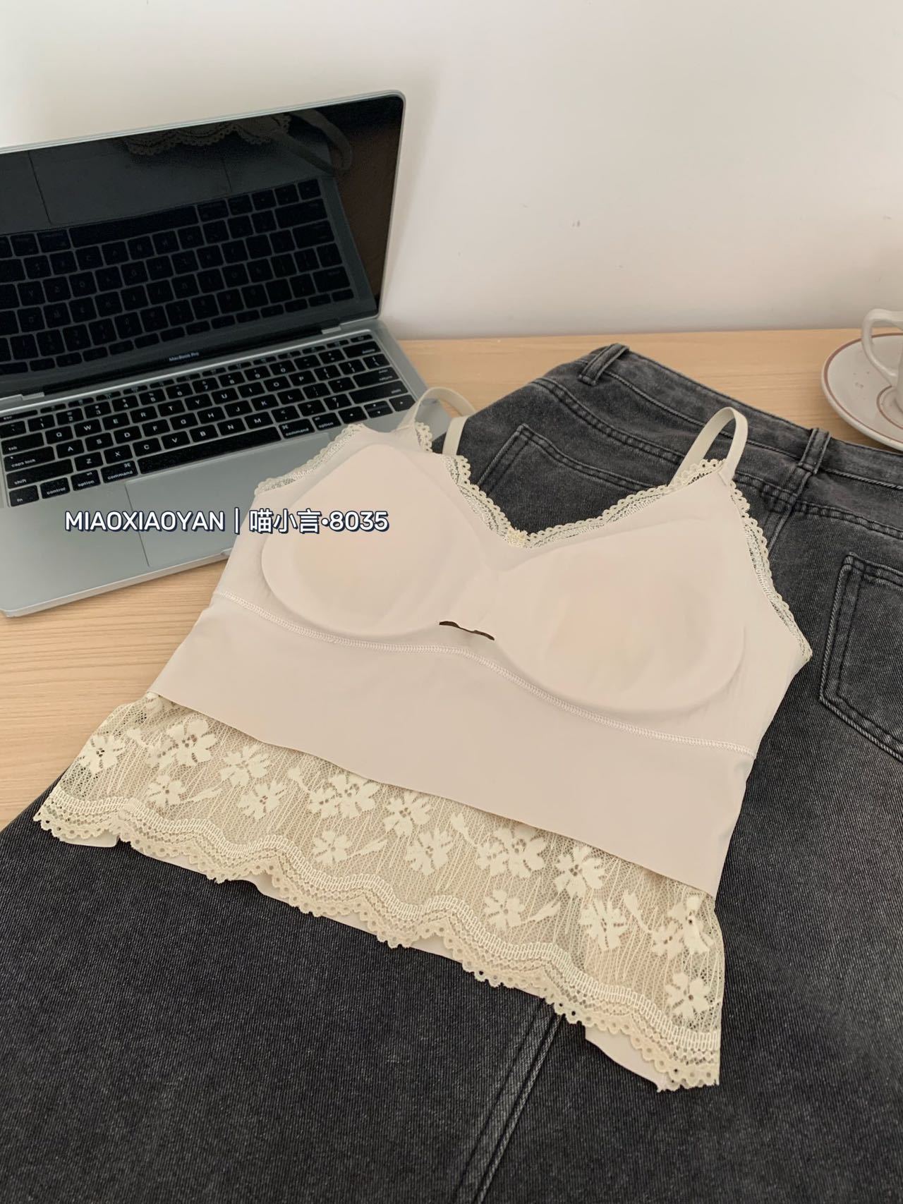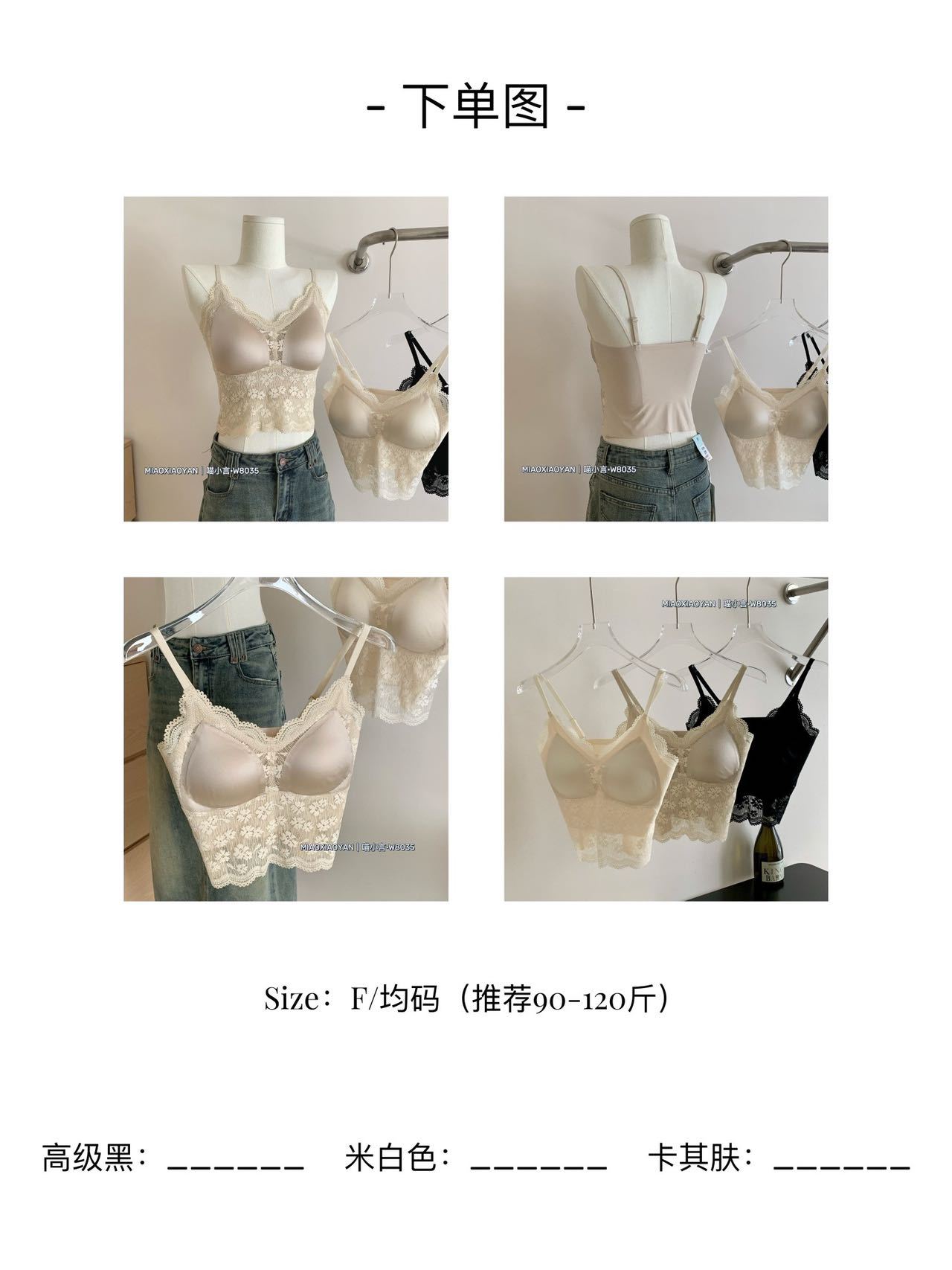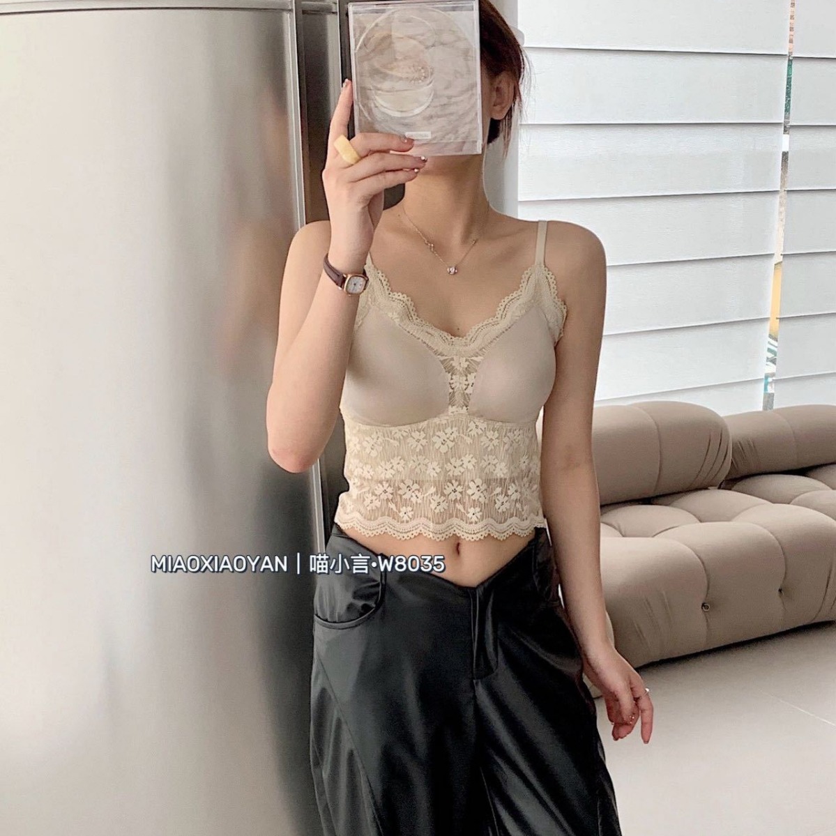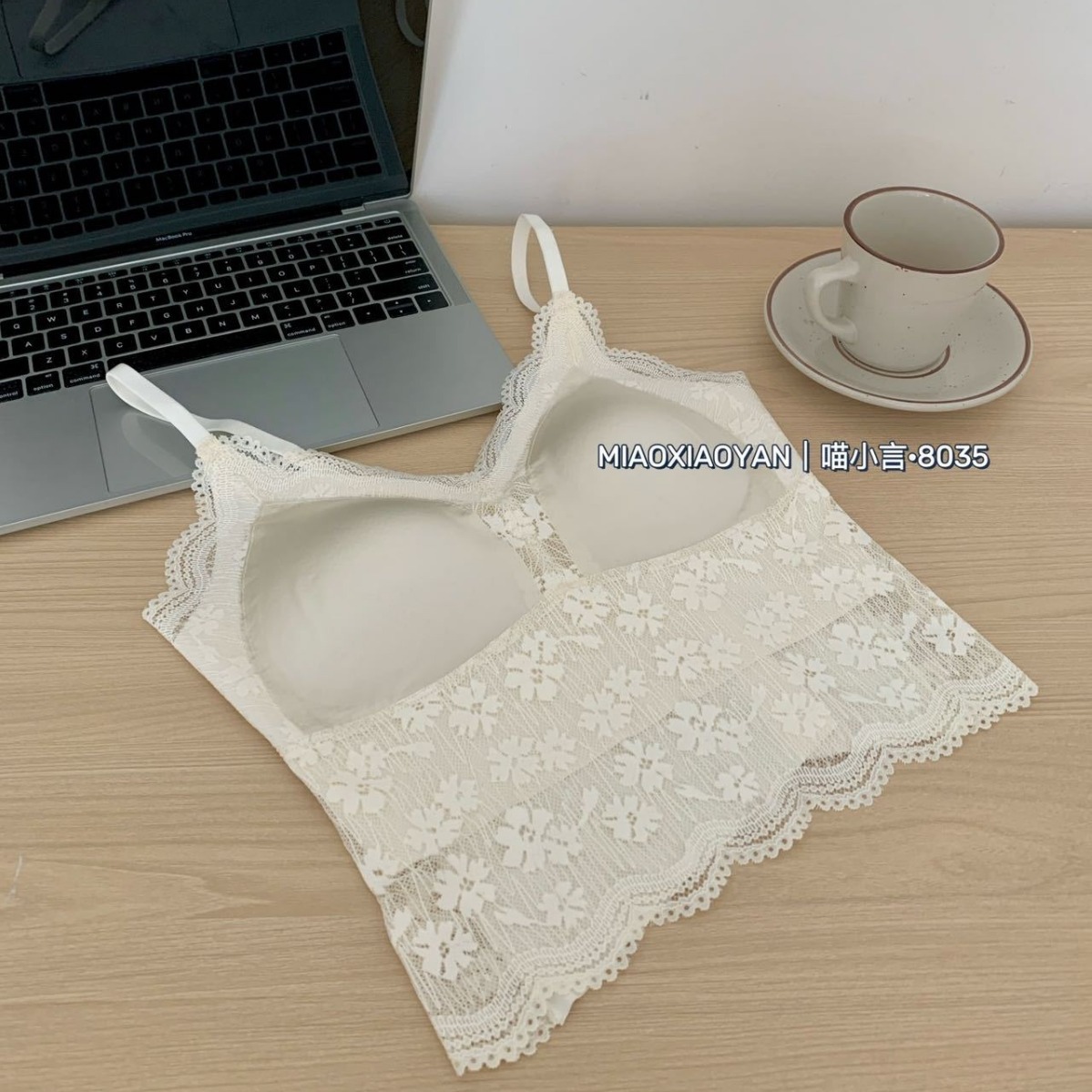 W8035韩系长款内衣蕾丝花边背心百搭休闲固定胸垫吊带美背打底