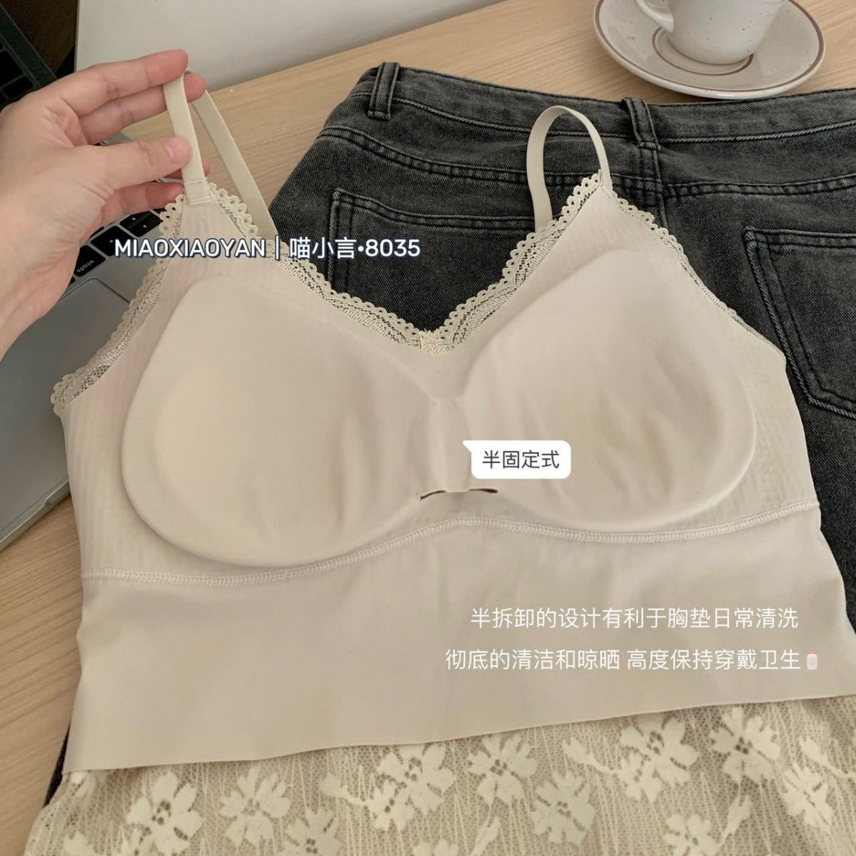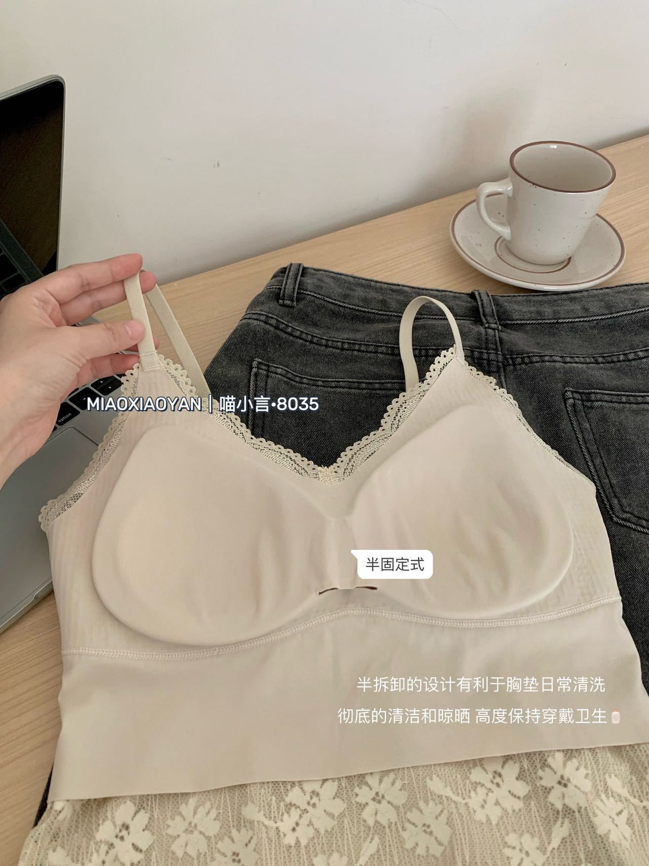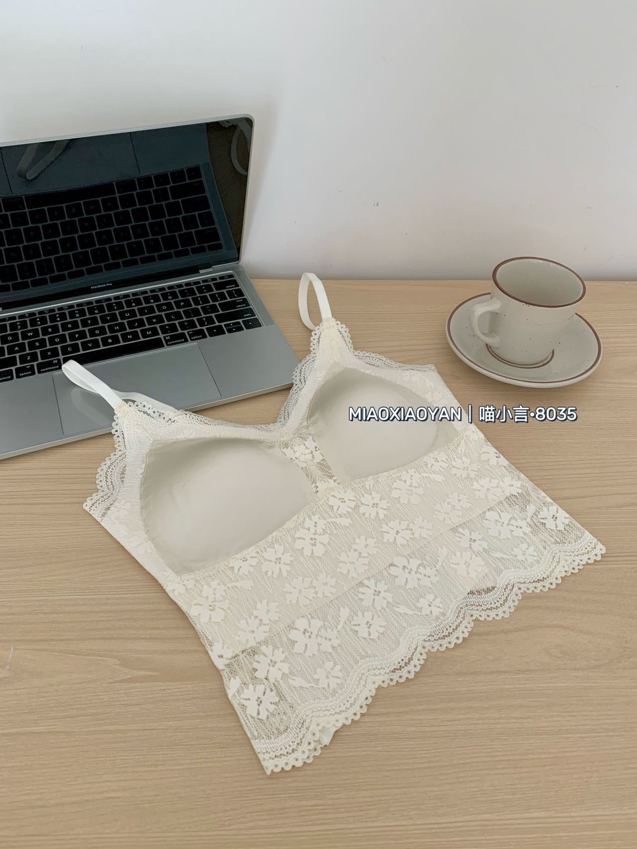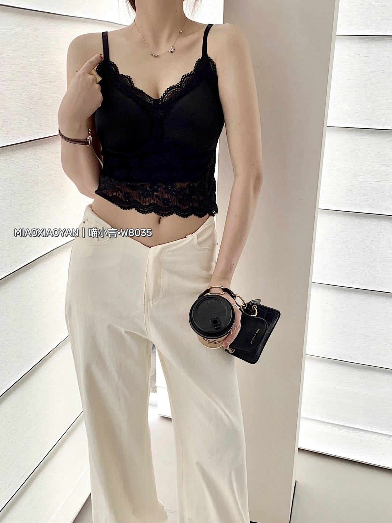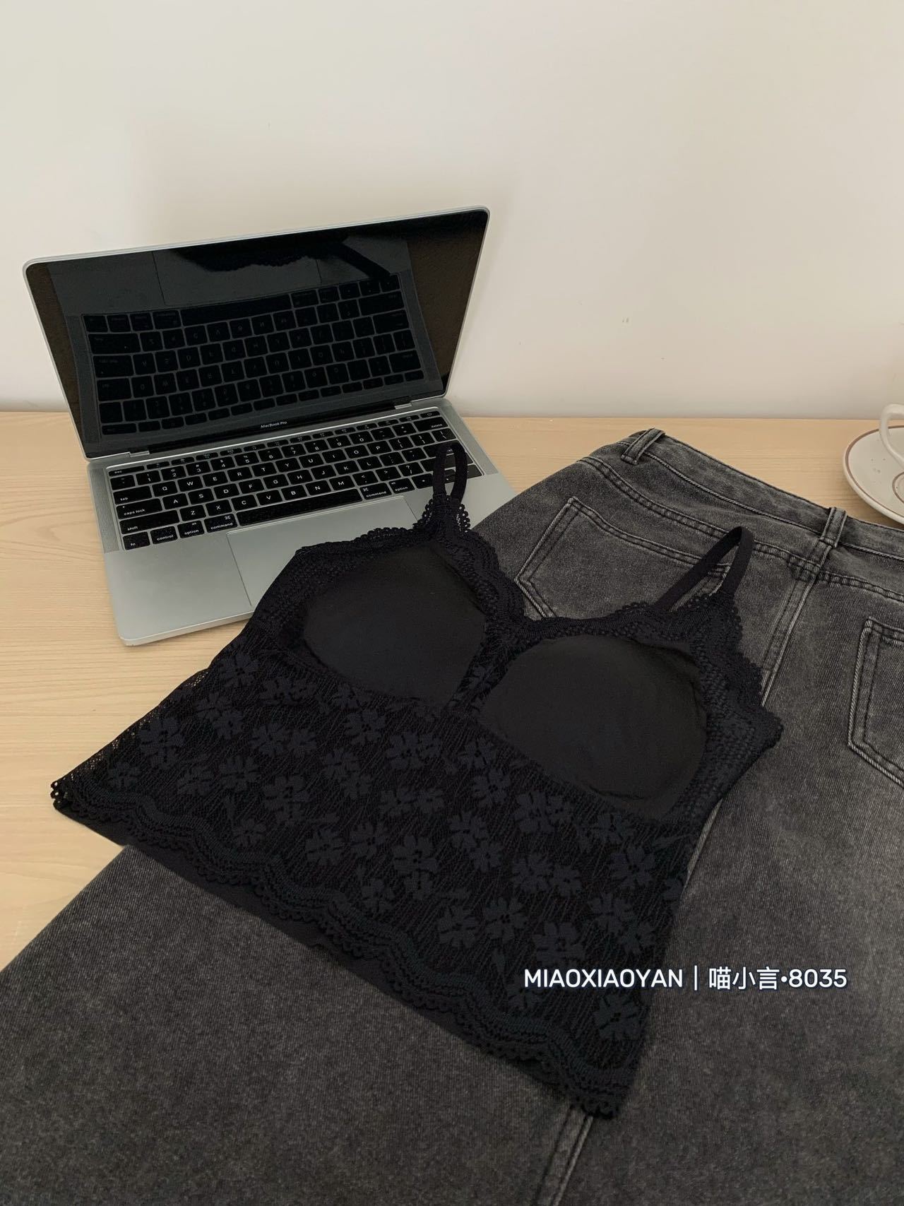 W8035韩系长款内衣蕾丝花边背心百搭休闲固定胸垫吊带美背打底