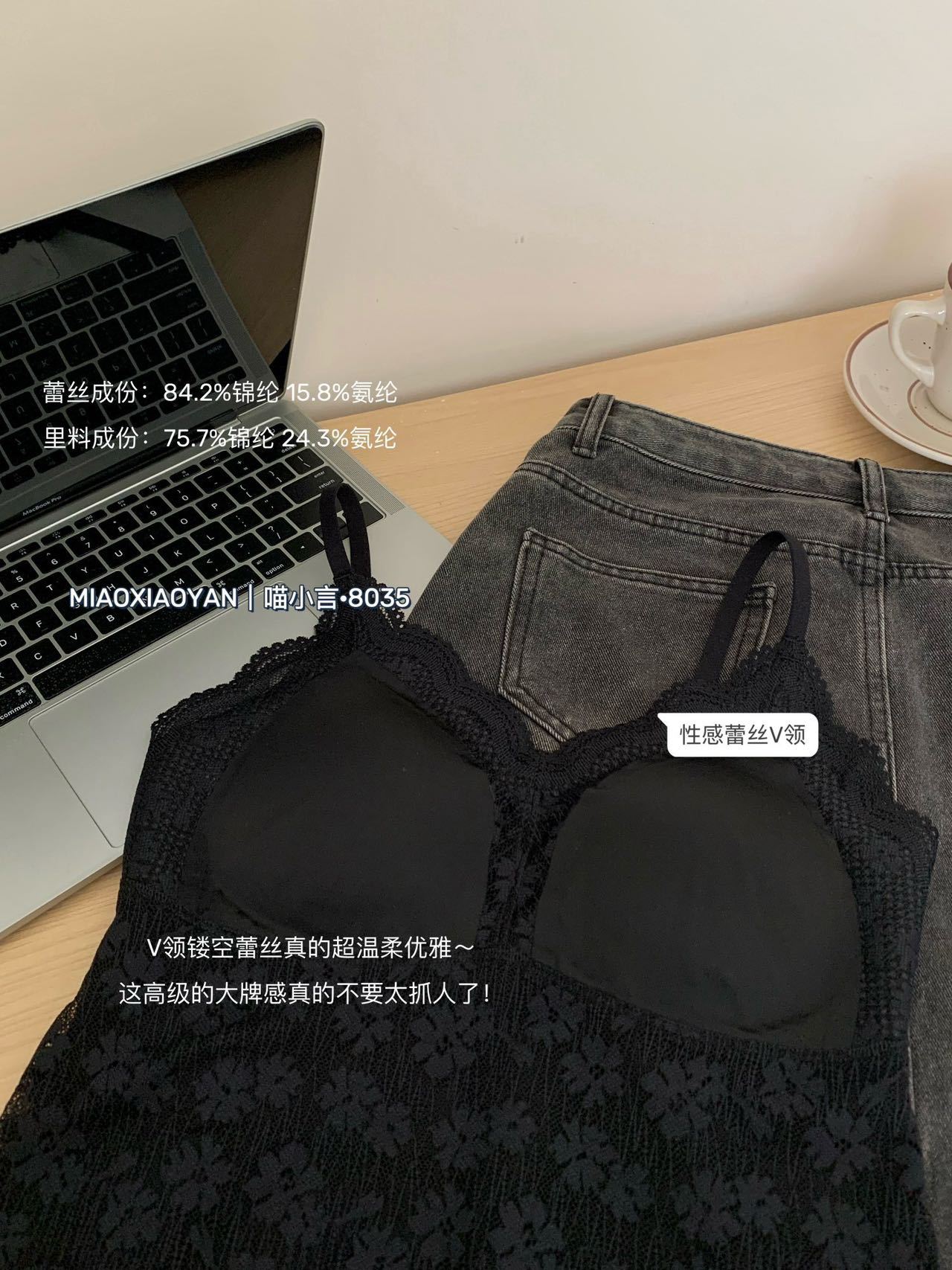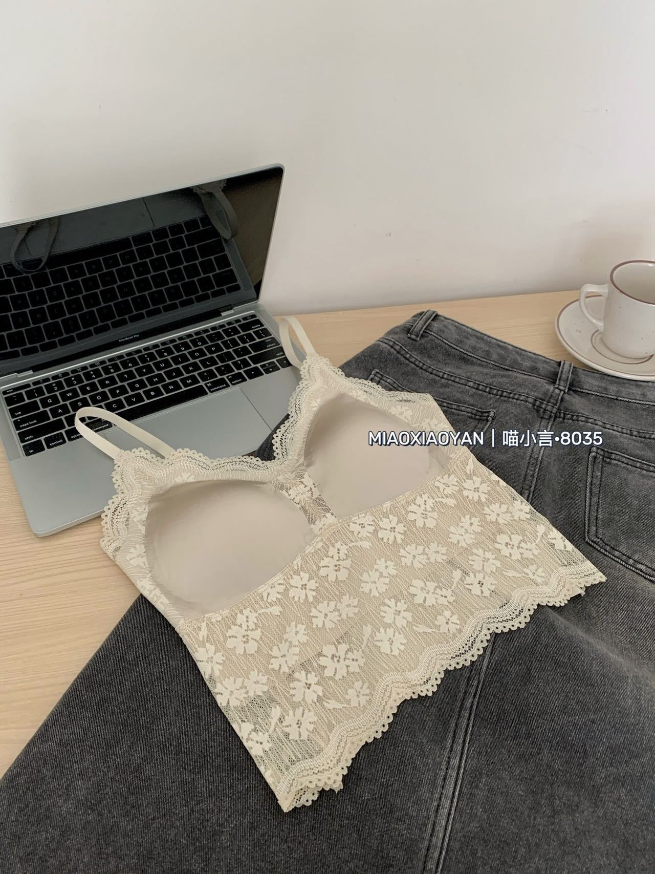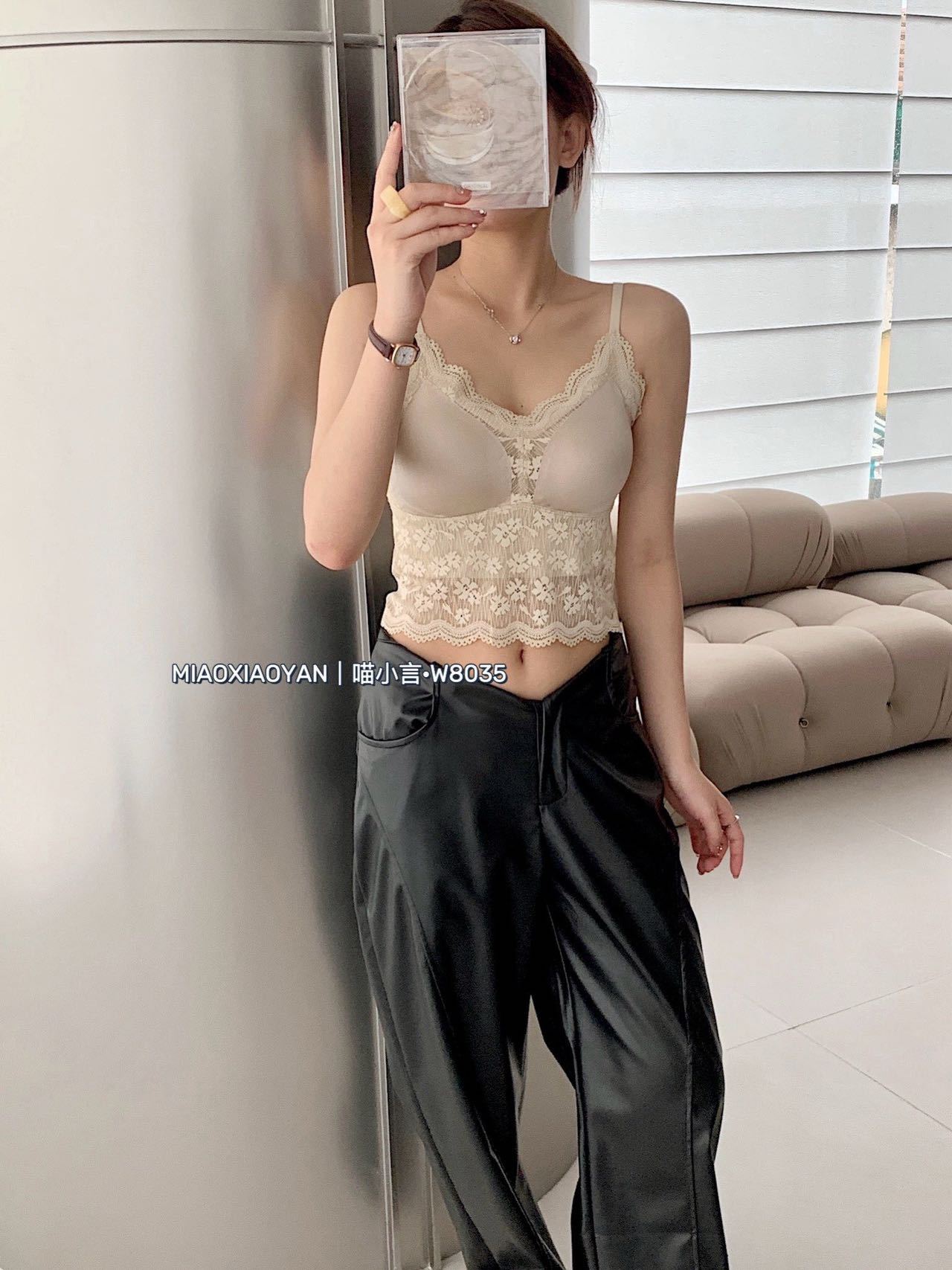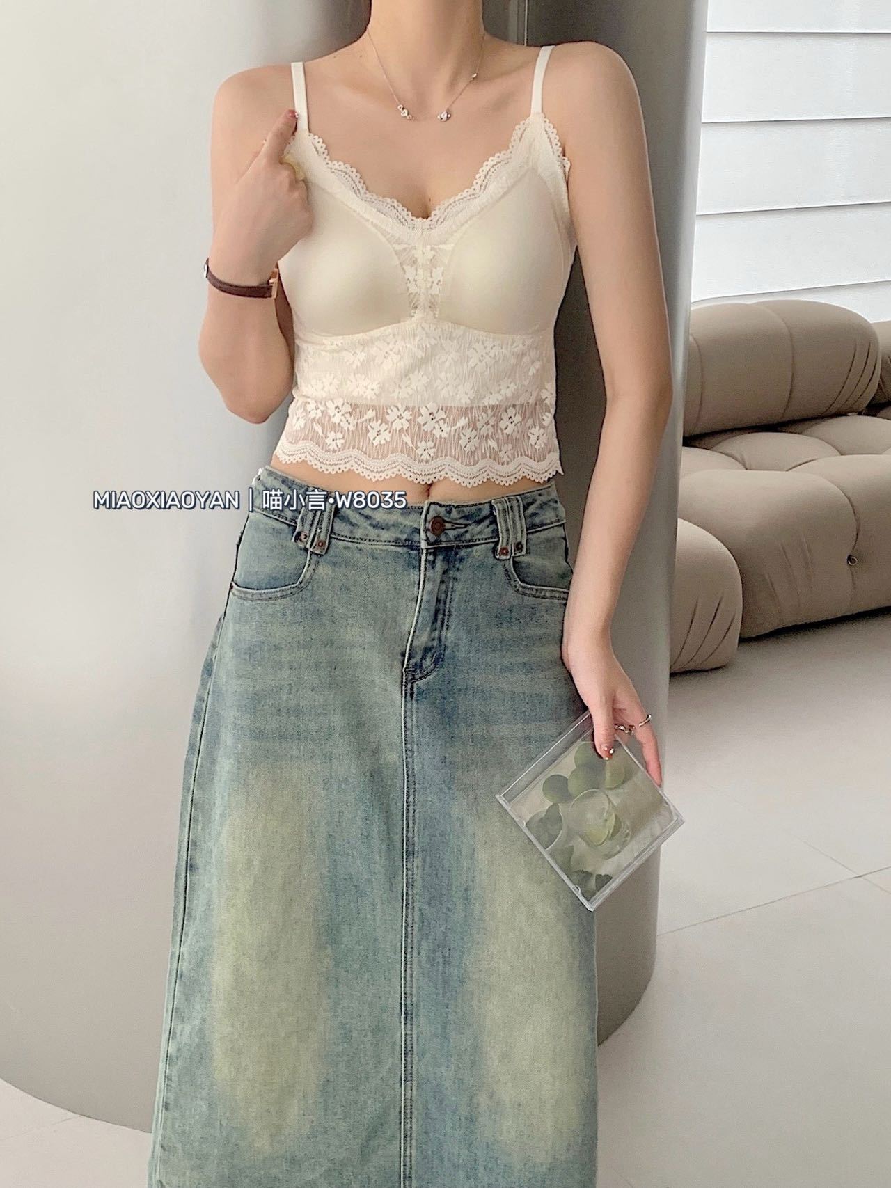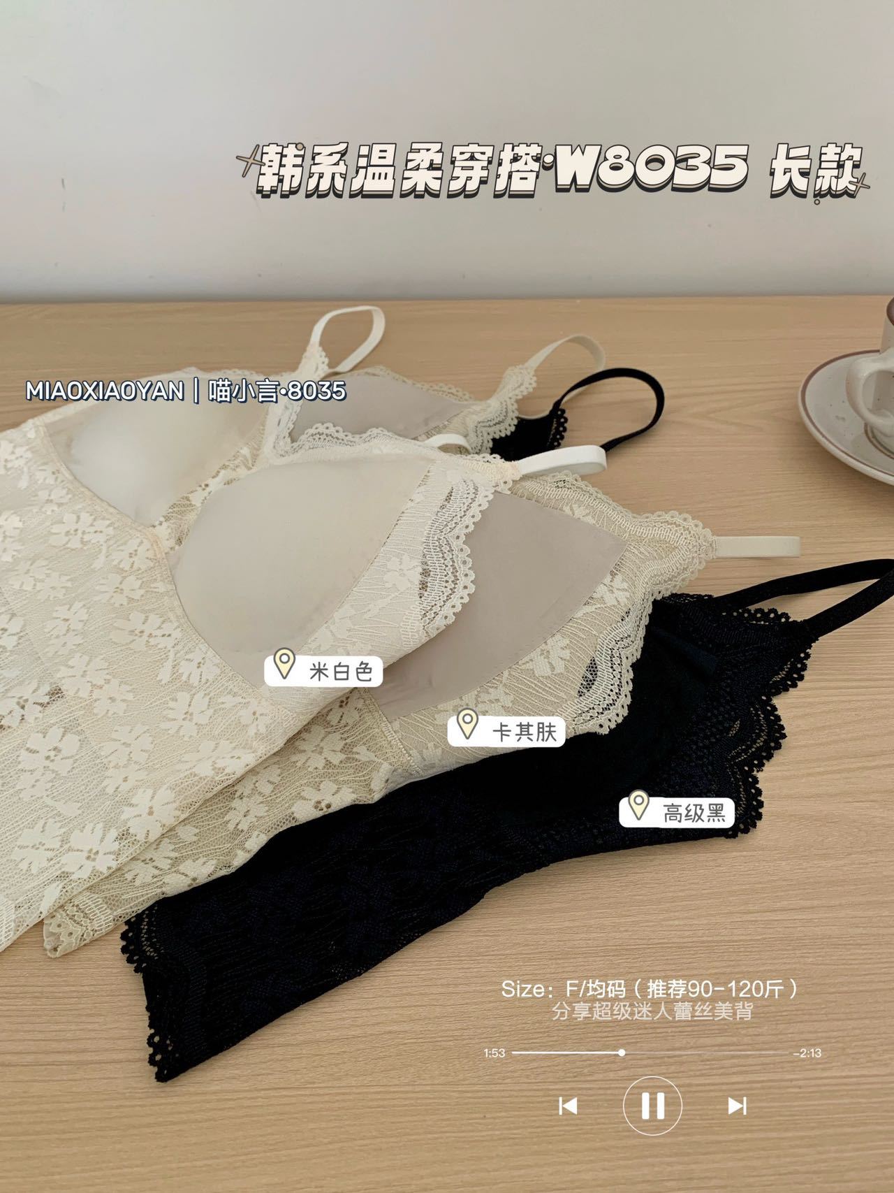 W8035韩系长款内衣蕾丝花边背心百搭休闲固定胸垫吊带美背打底