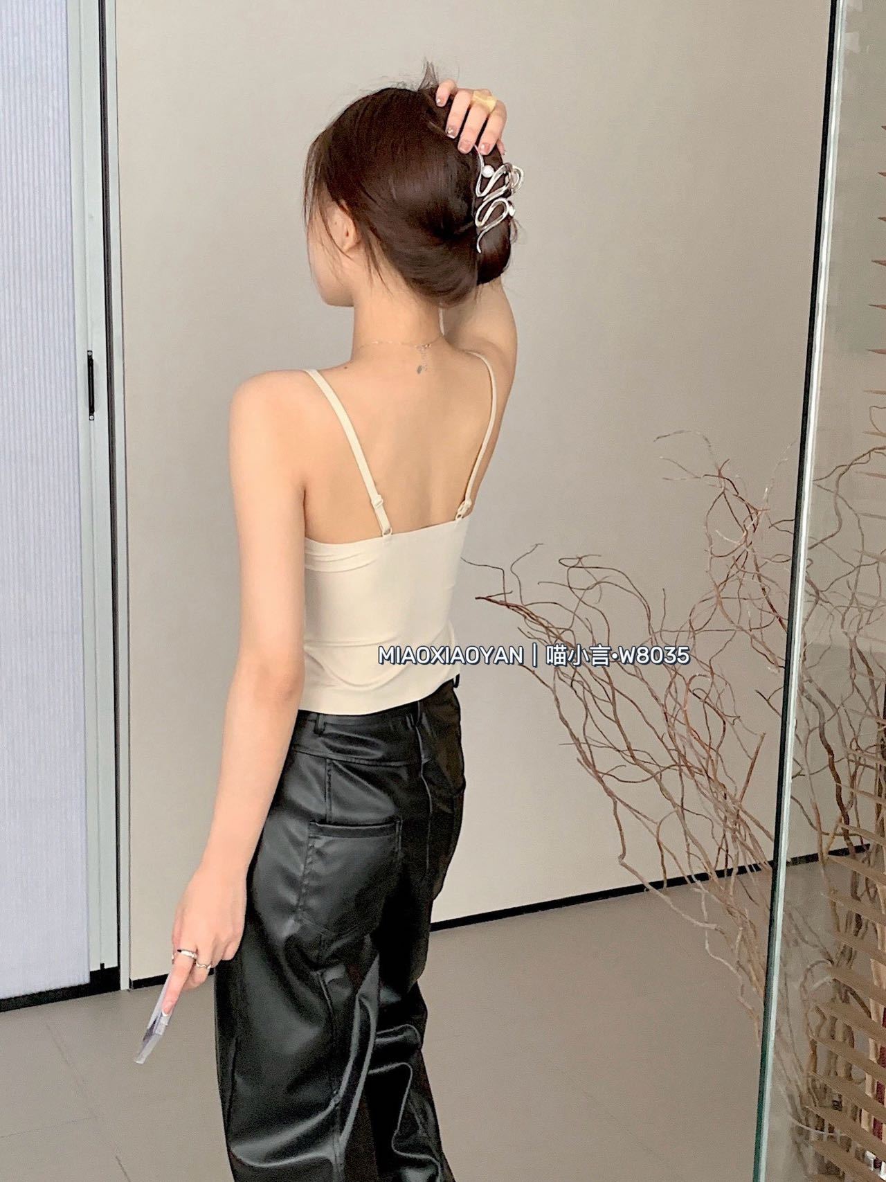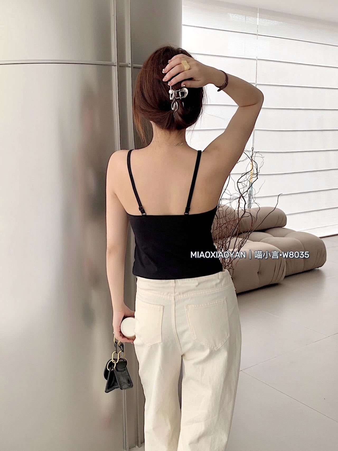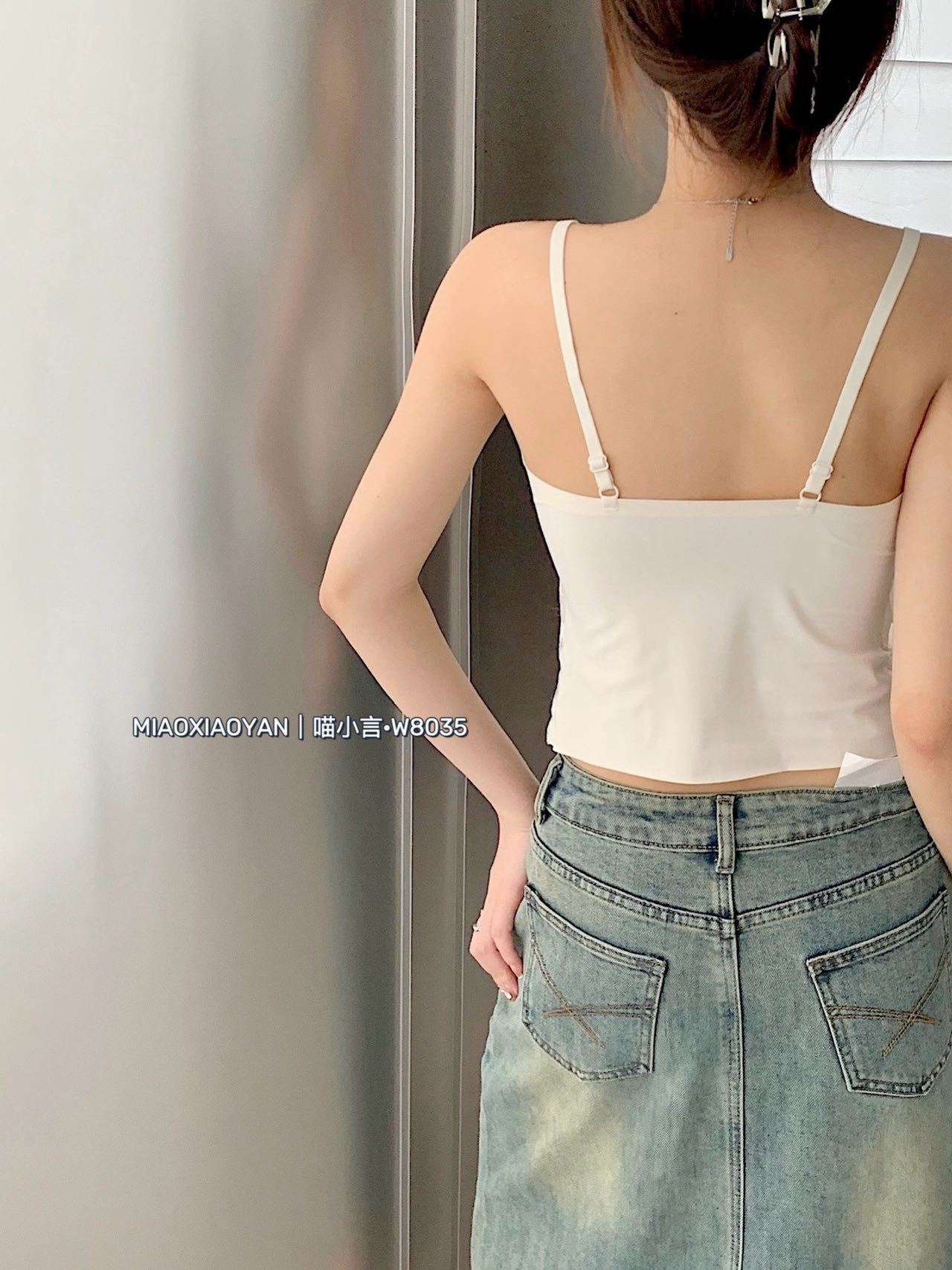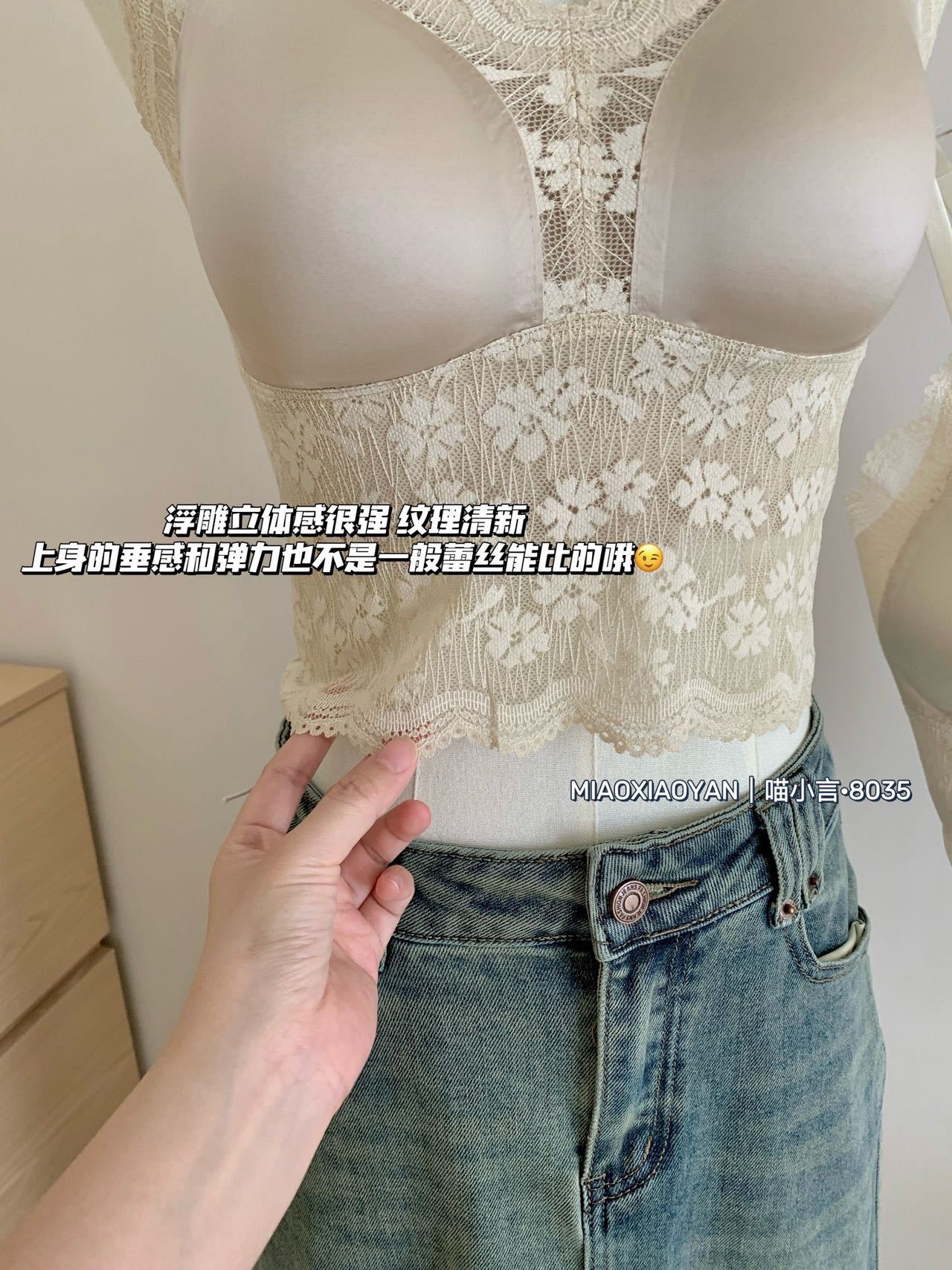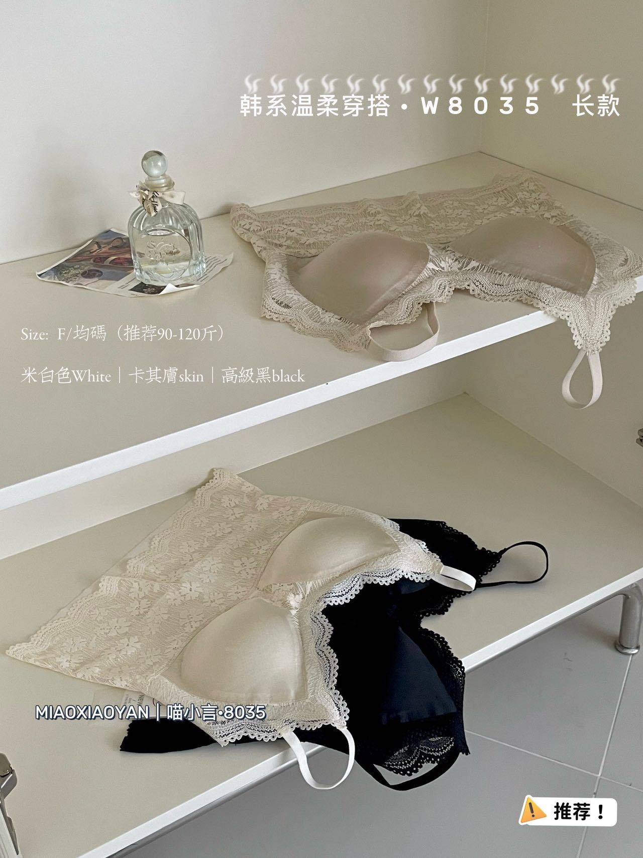 W8035韩系长款内衣蕾丝花边背心百搭休闲固定胸垫吊带美背打底