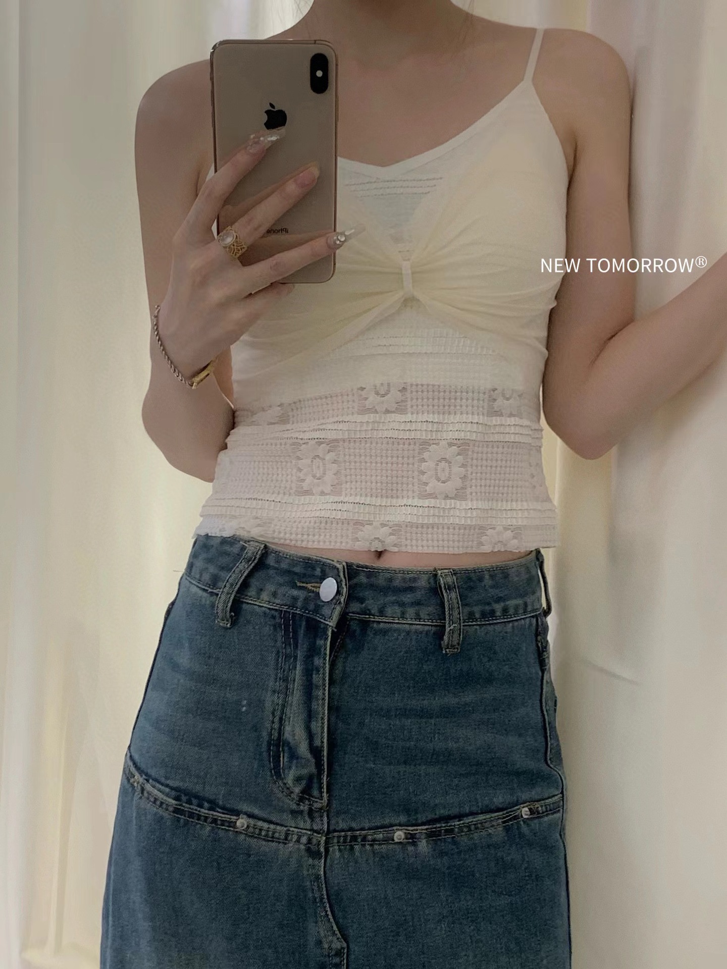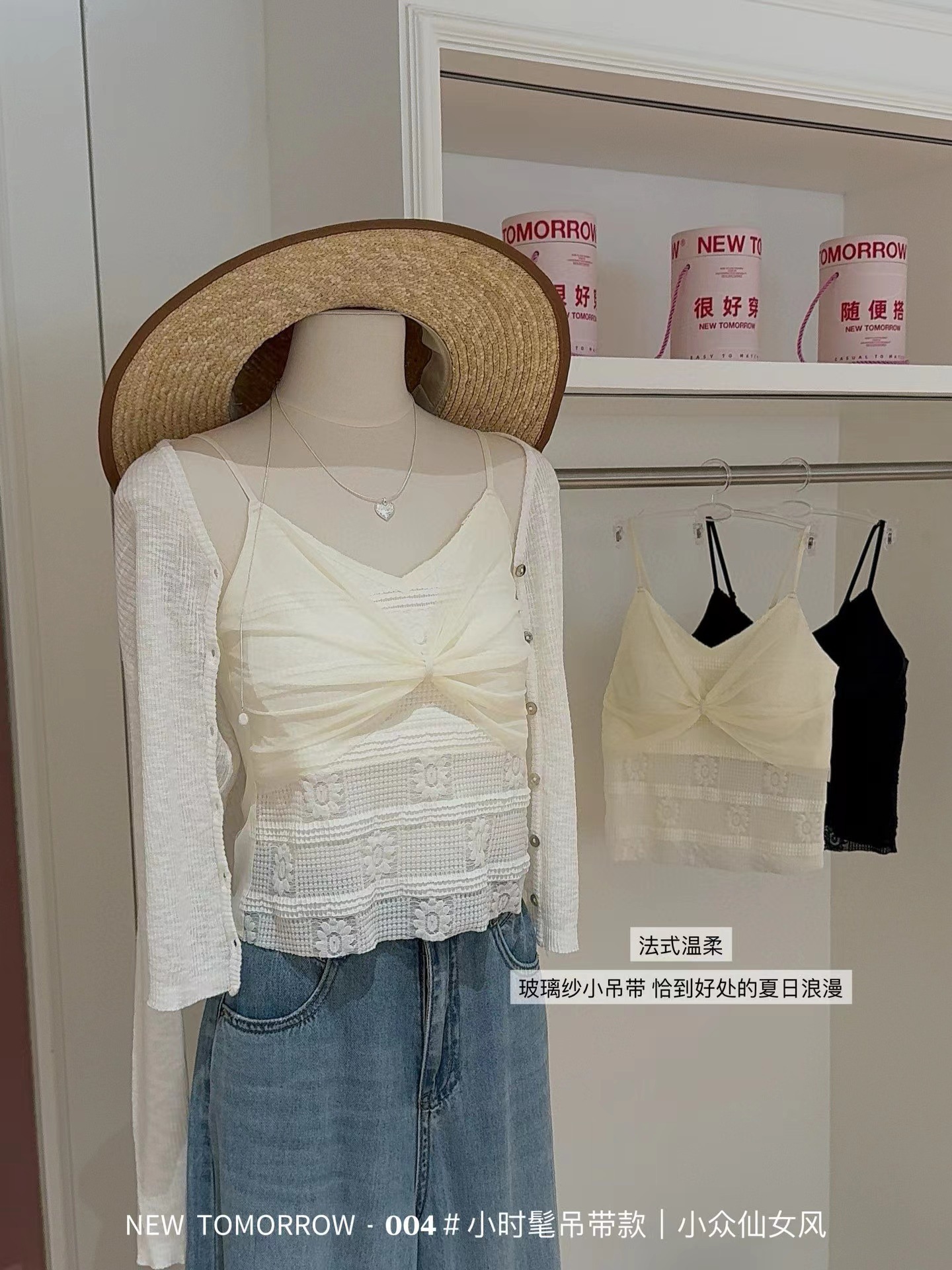夏季新款 004#玻璃纱小时髦吊带小众仙女风吊带背心女带胸垫百搭