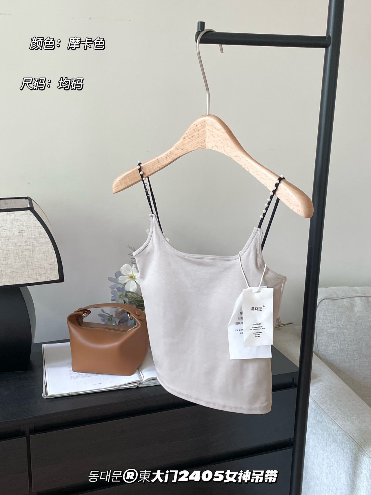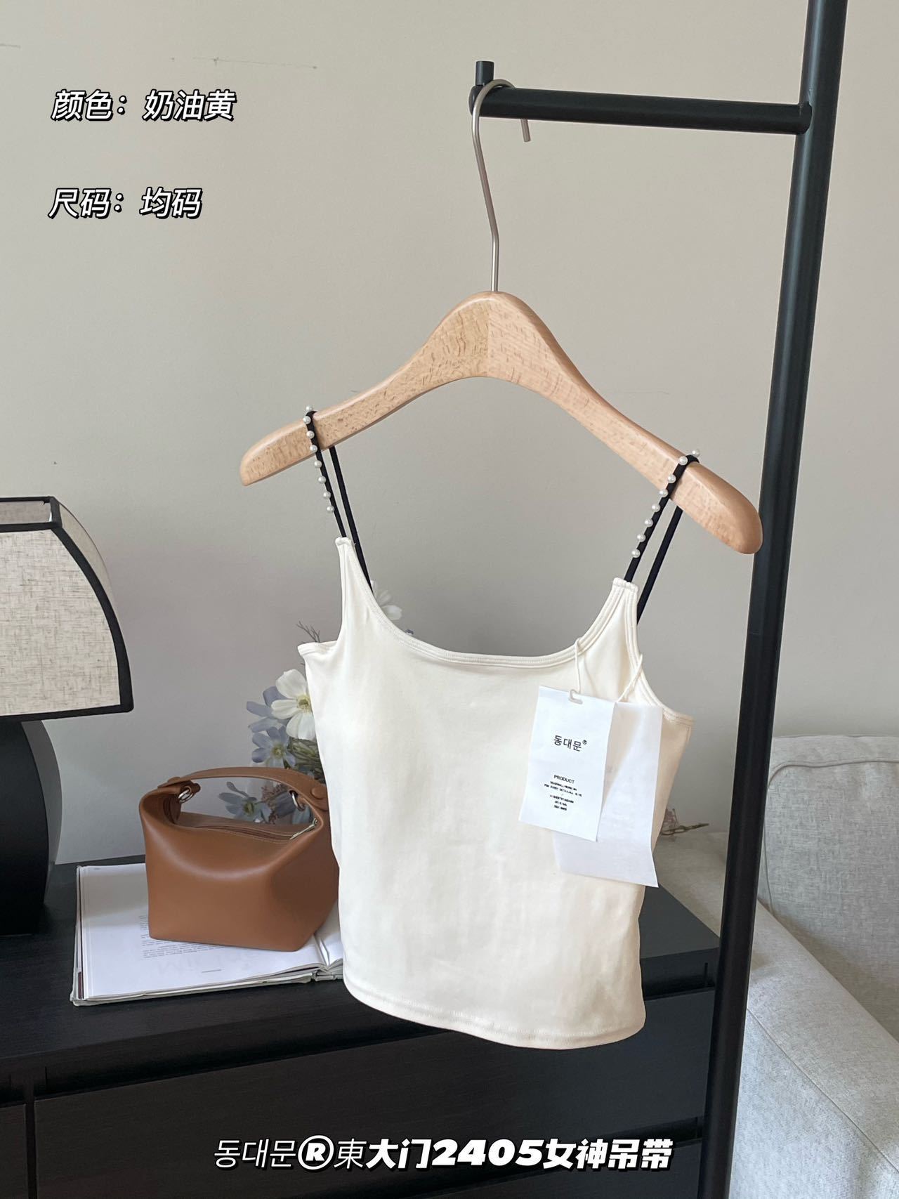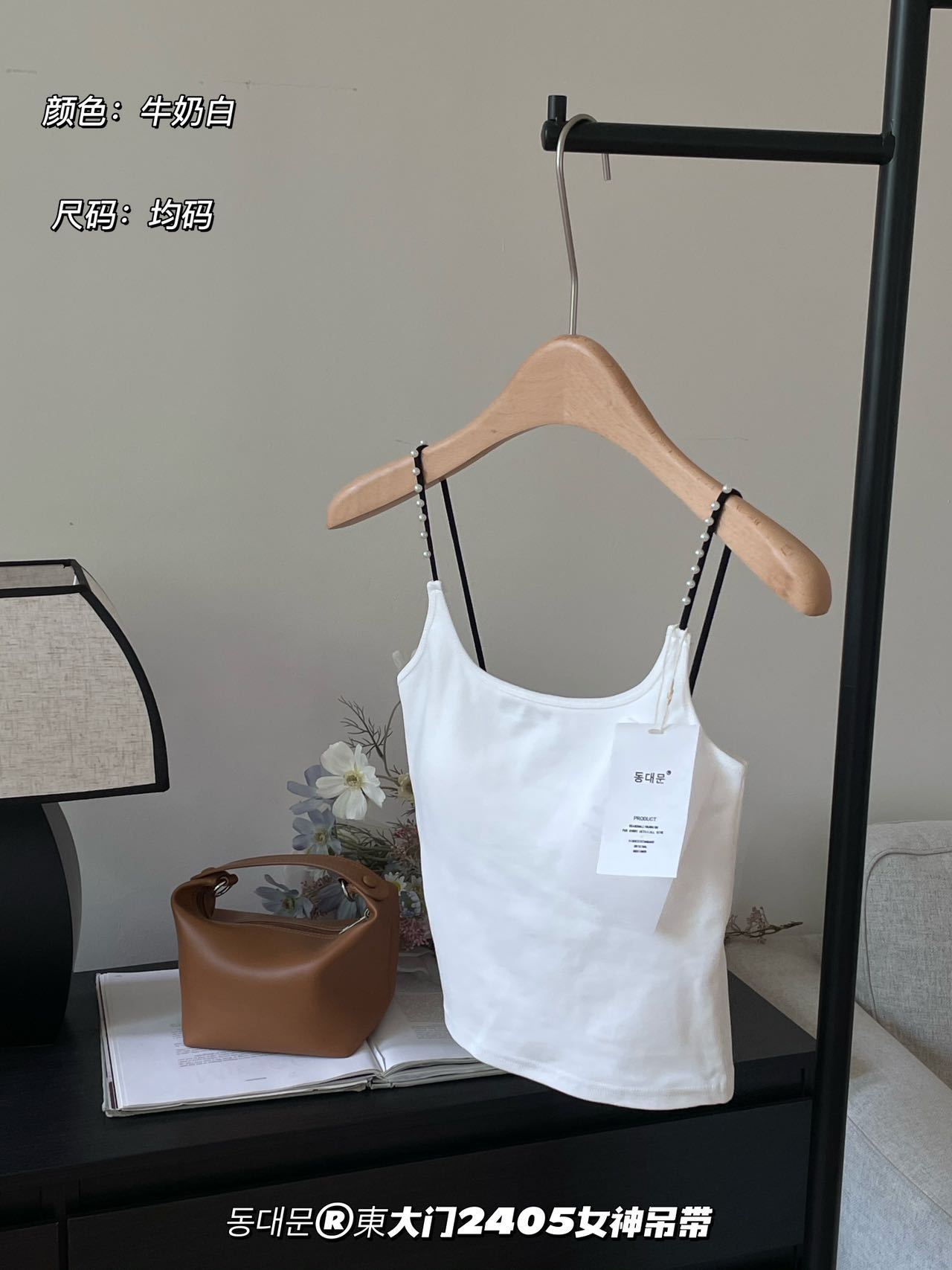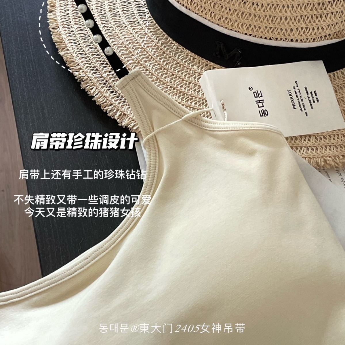 東大门2405女神吊带固定胸垫U领领口肩带珍珠设计修身百搭吊带女