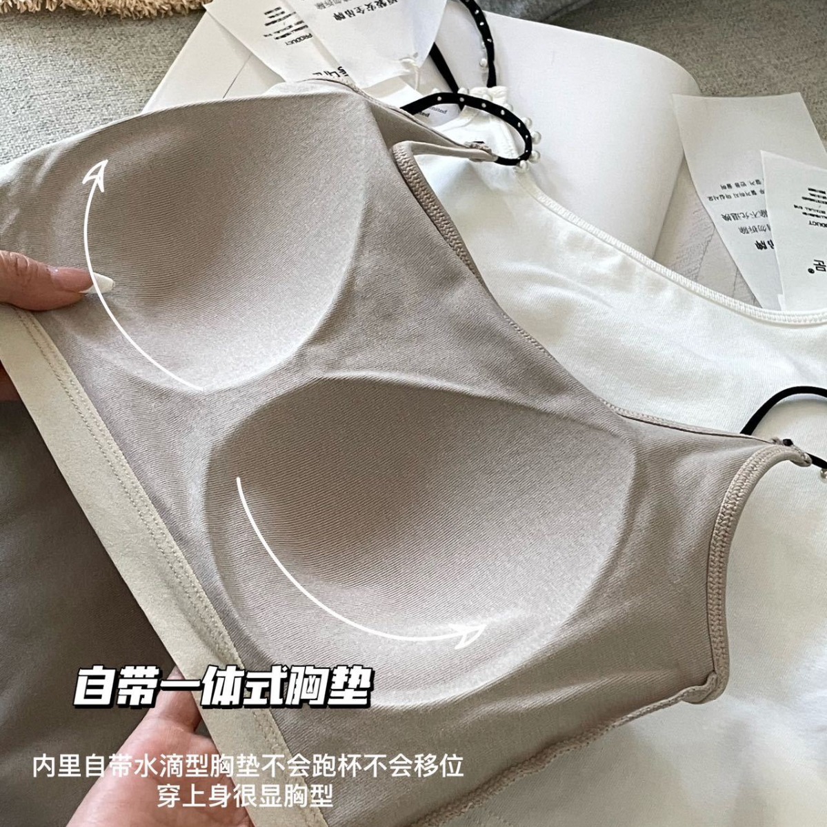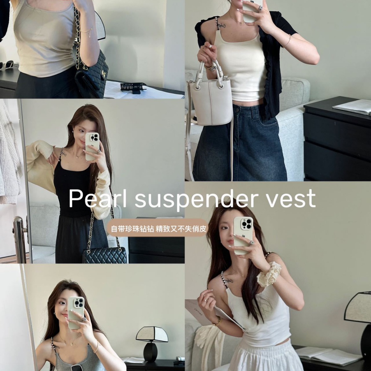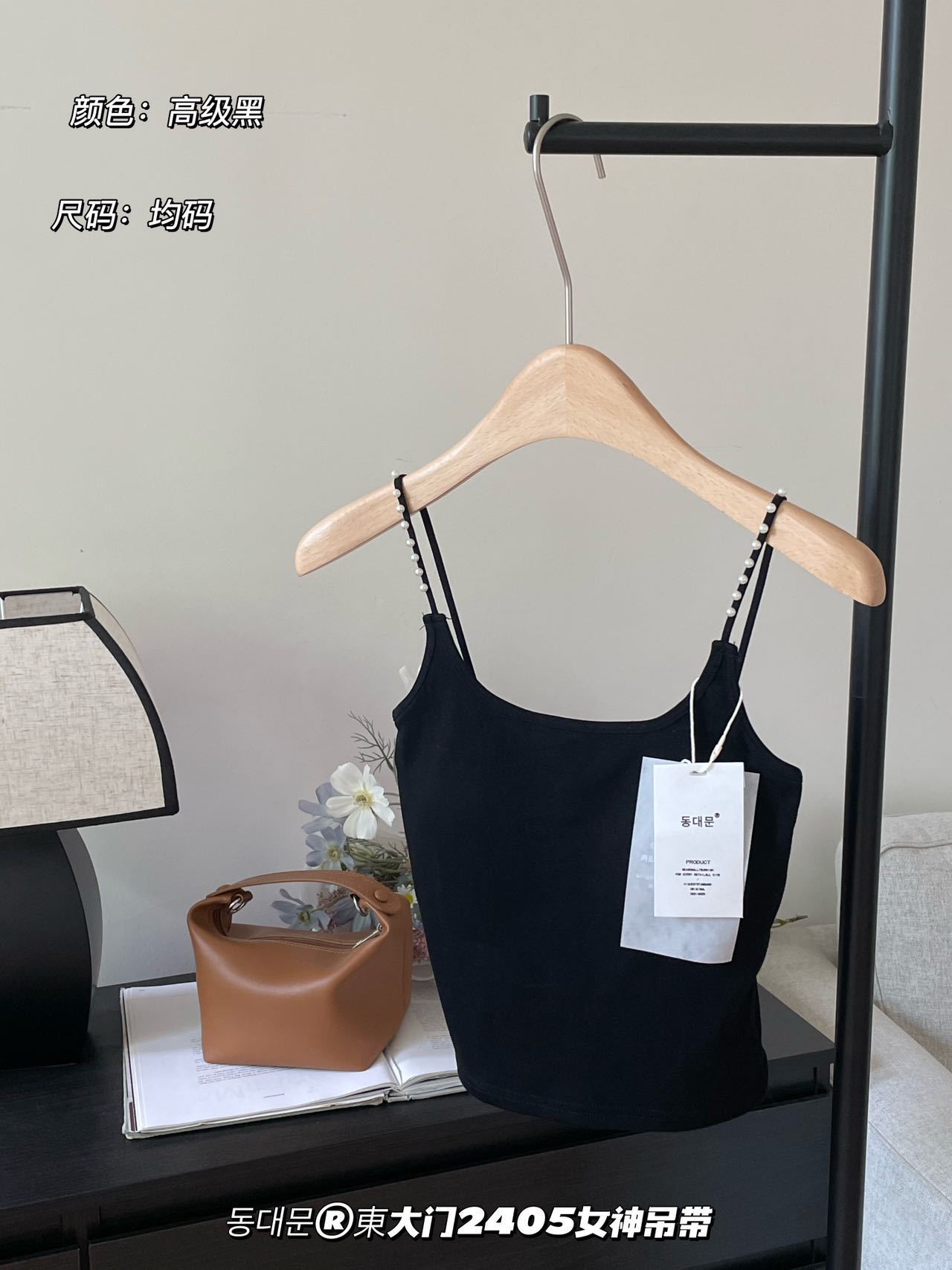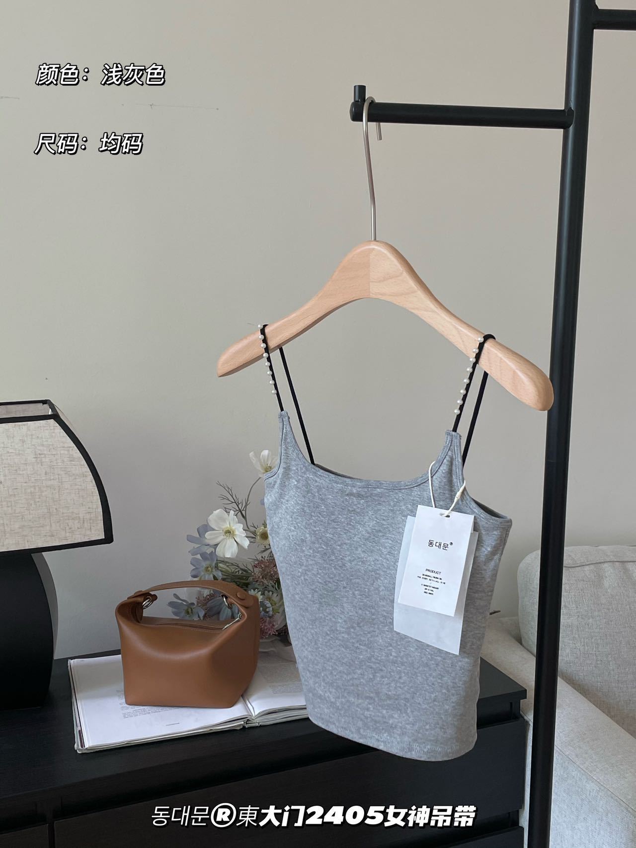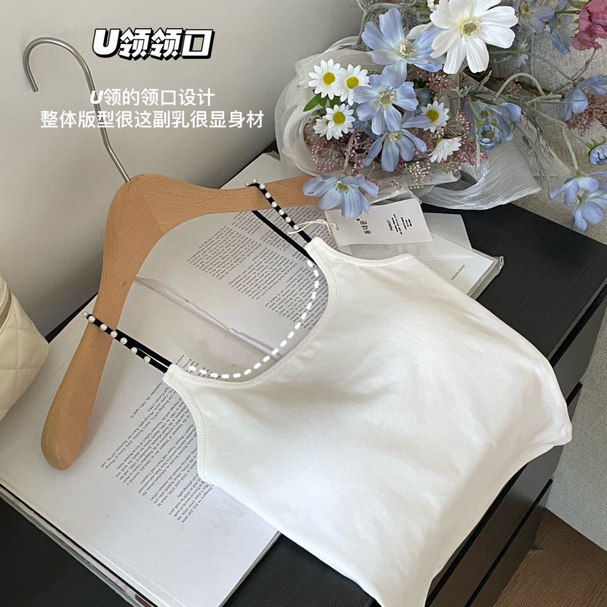 東大门2405女神吊带固定胸垫U领领口肩带珍珠设计修身百搭吊带女
