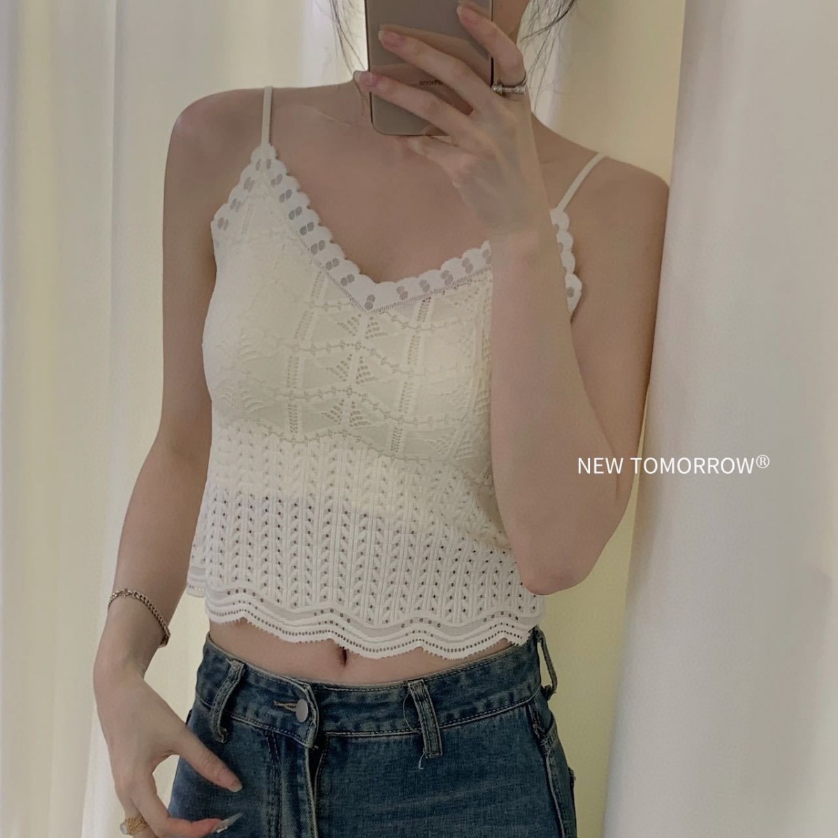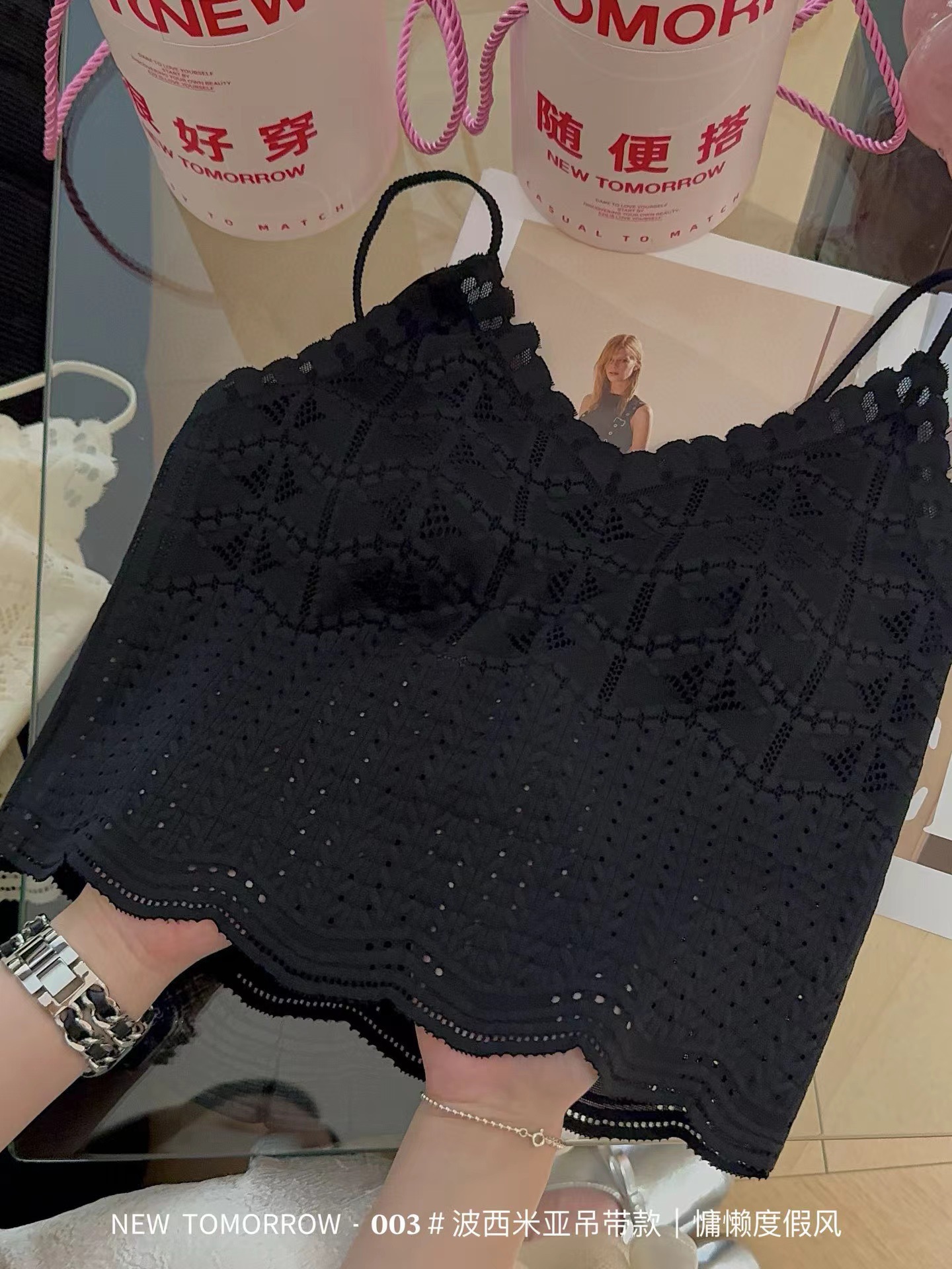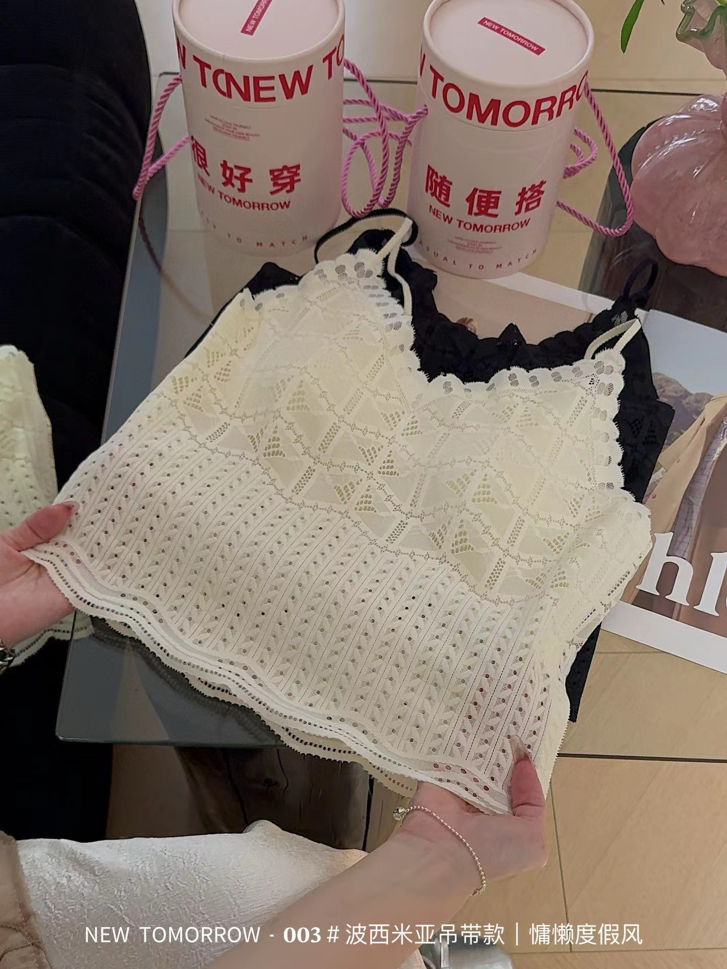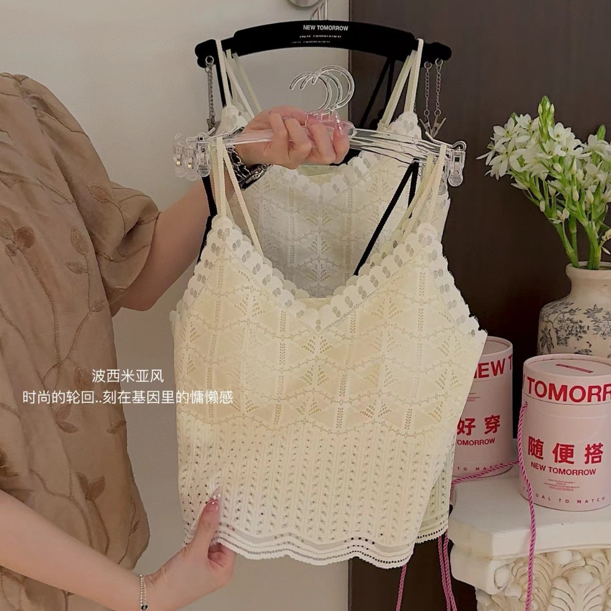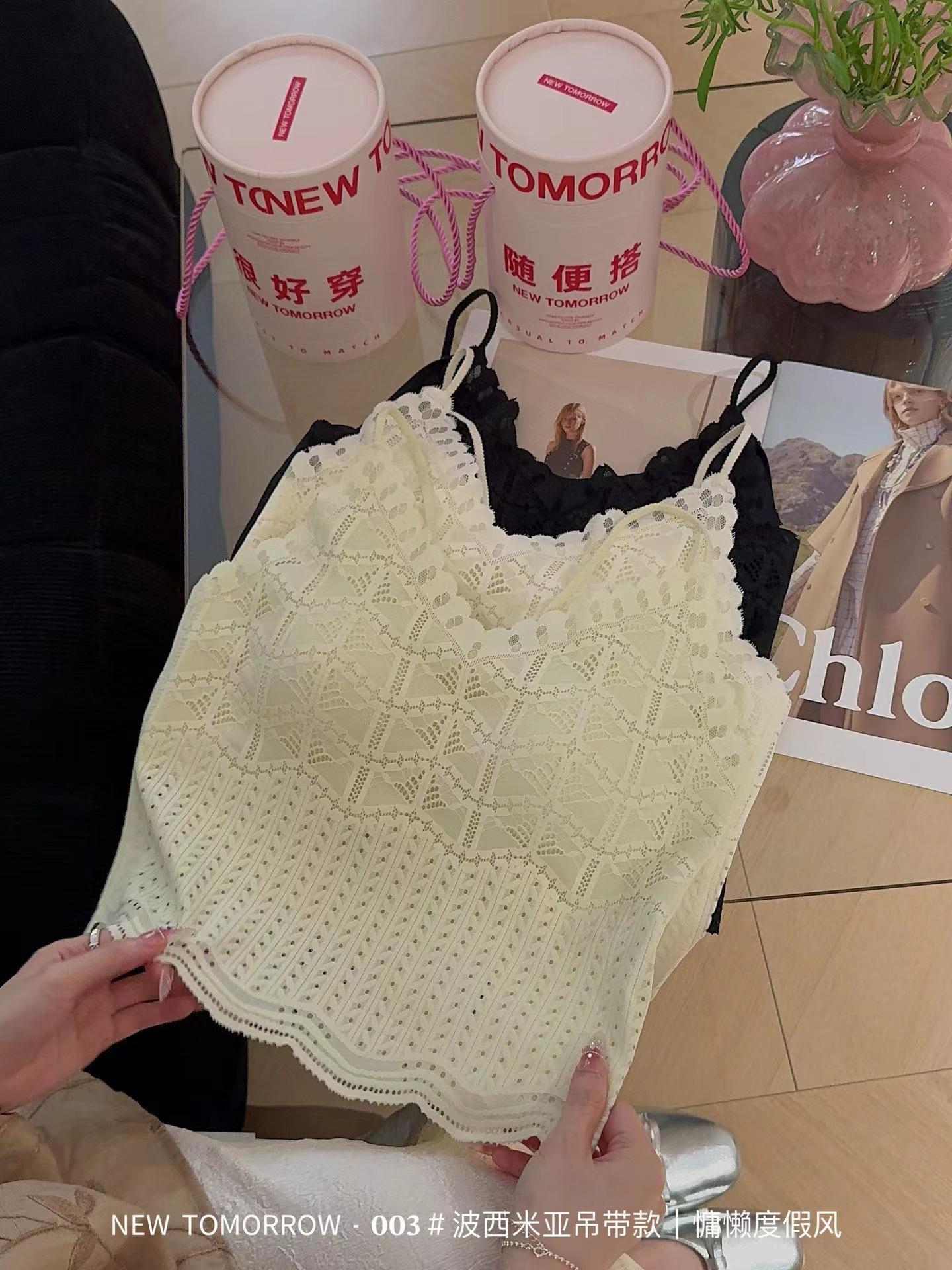 夏季 003# 波西米亚蕾丝吊带背心慵懒度假风修身百搭显瘦带胸垫女