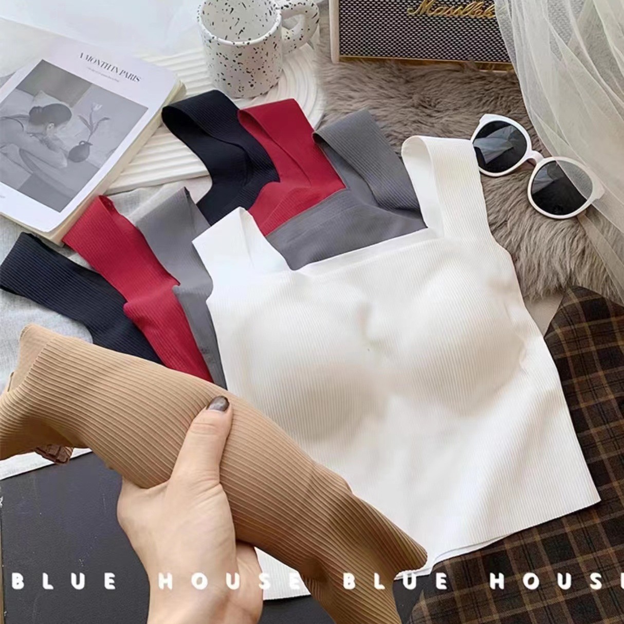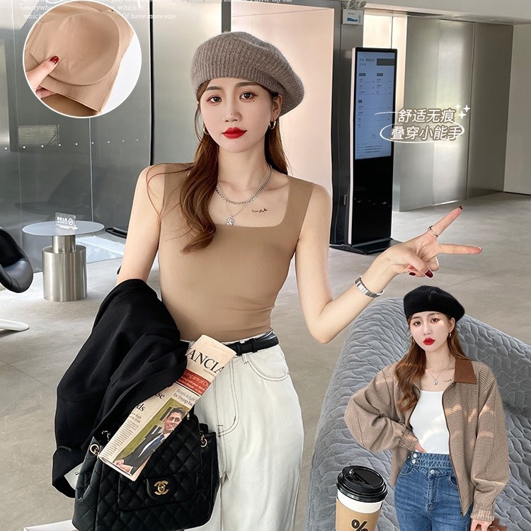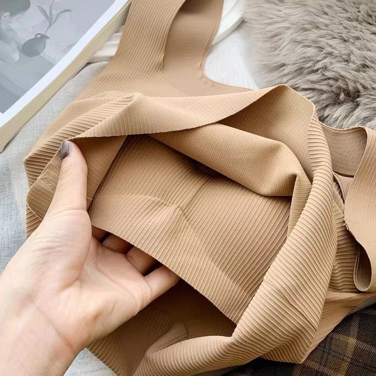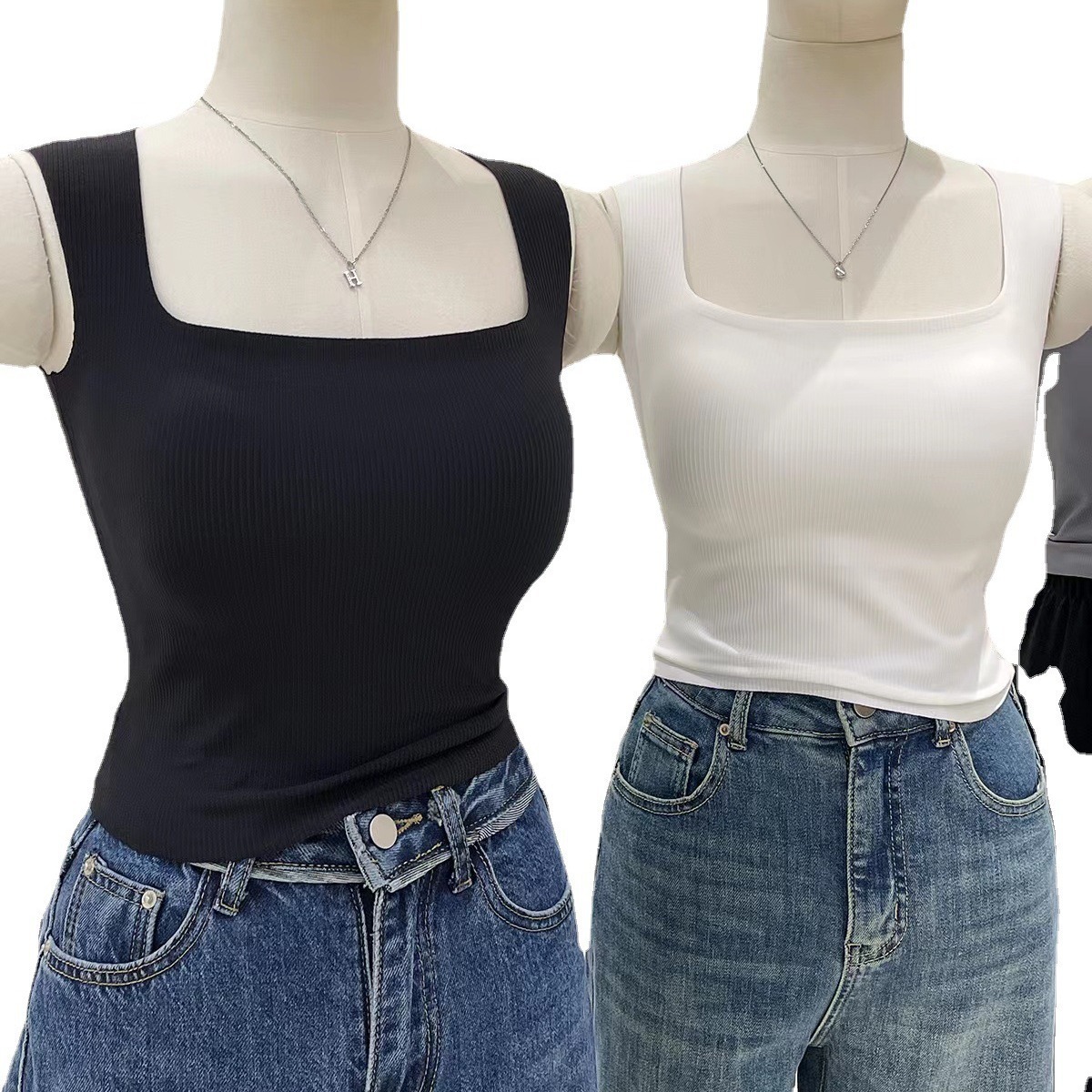 夏季方领背心bra螺纹一体式固定杯胸垫美背外穿辣妹裹胸内衣女