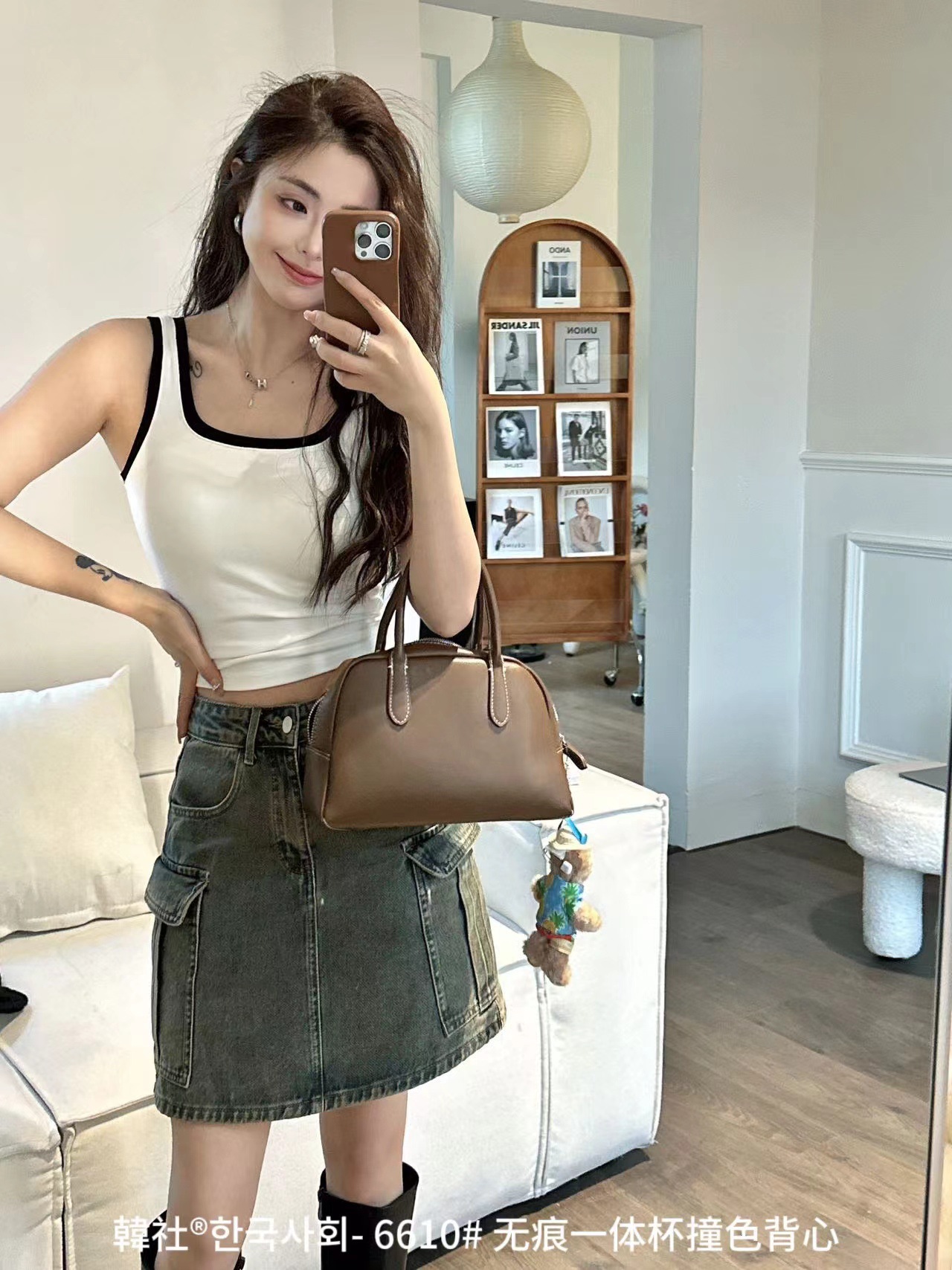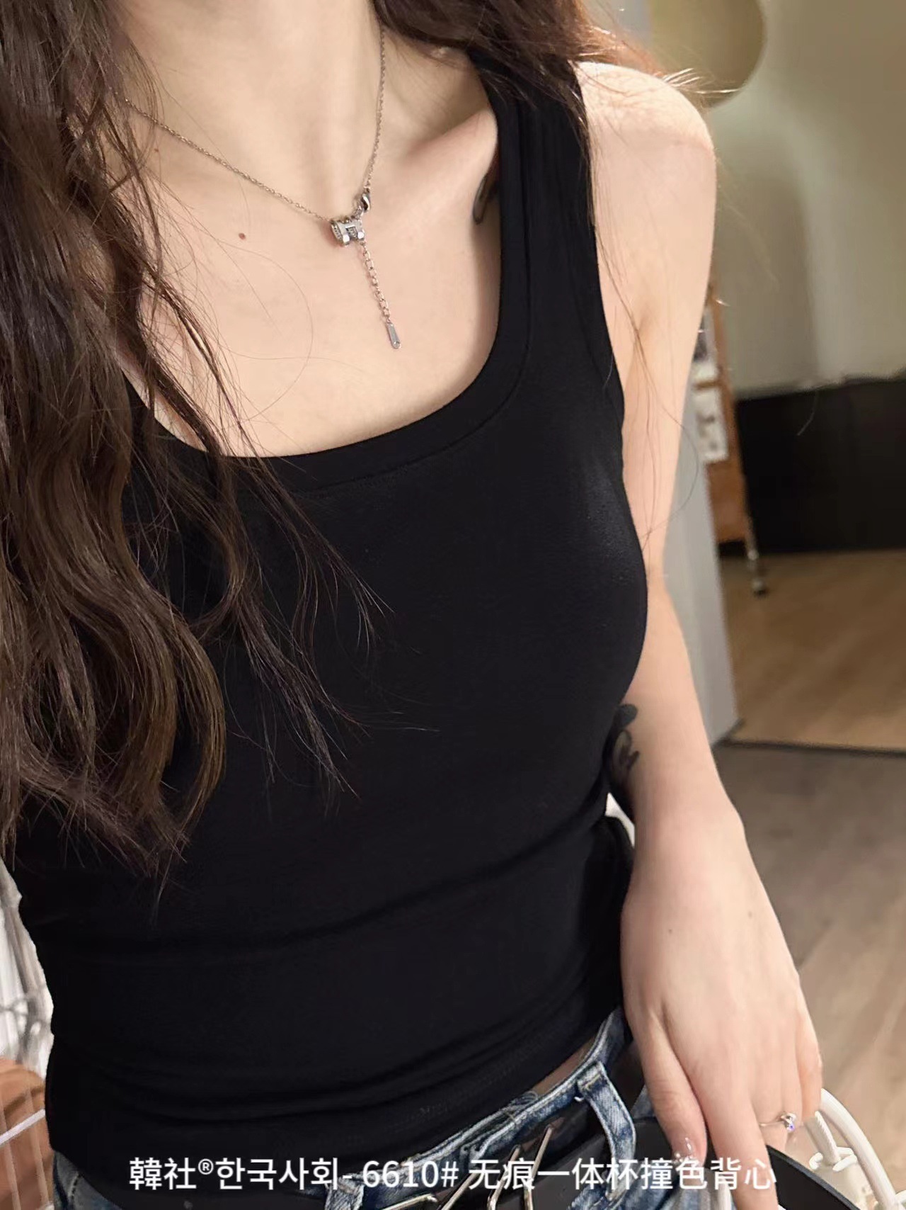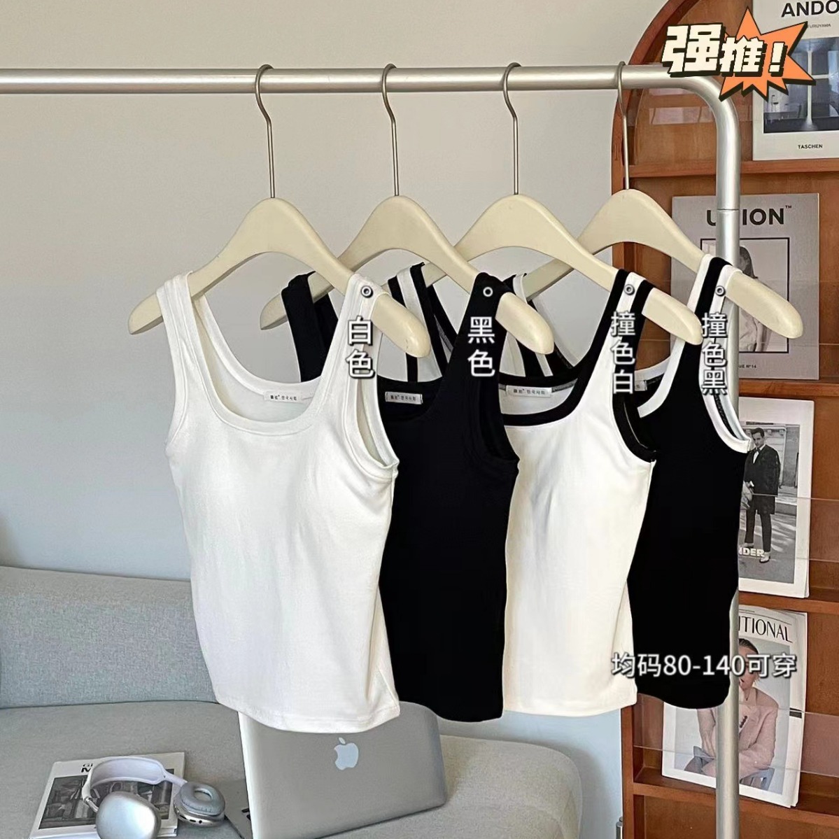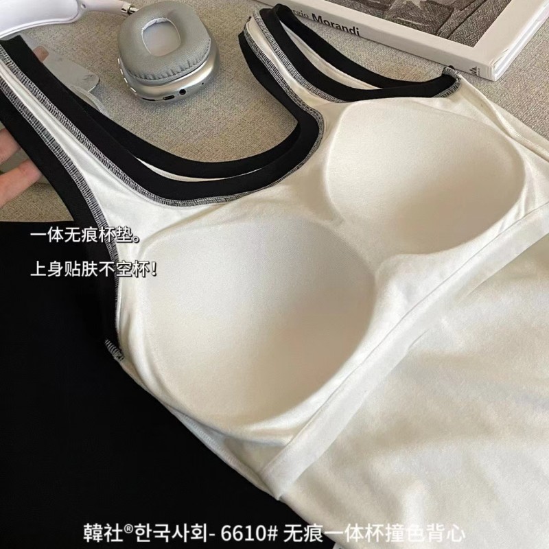 韩社6610# 无痕一体杯撞色U领背心防走光舒适打底拼接吊带美背女