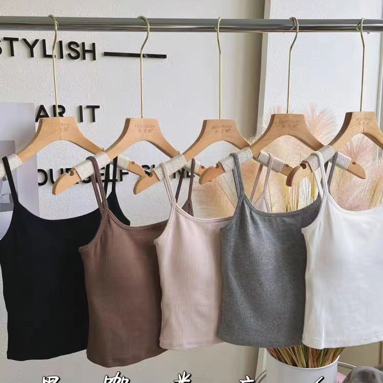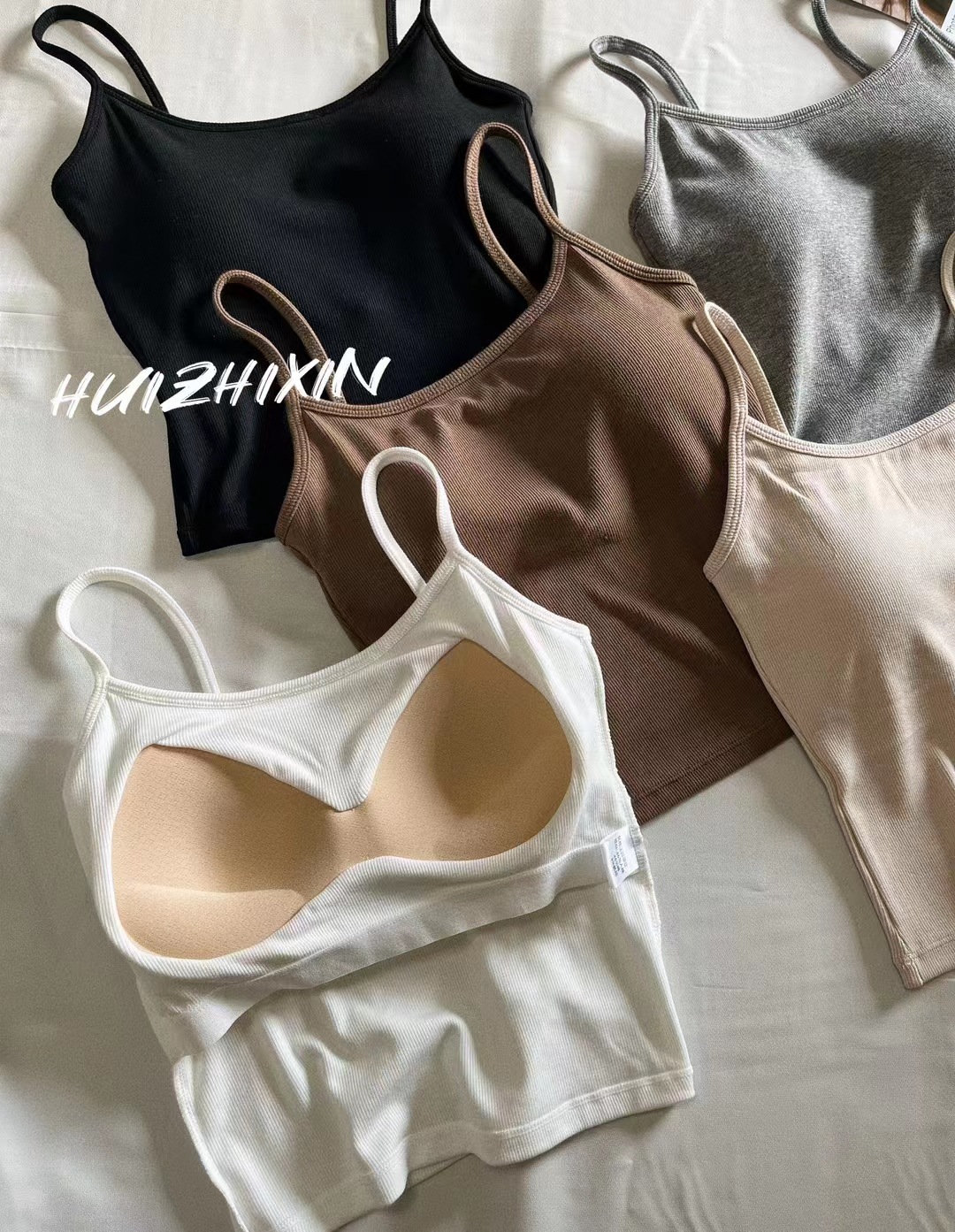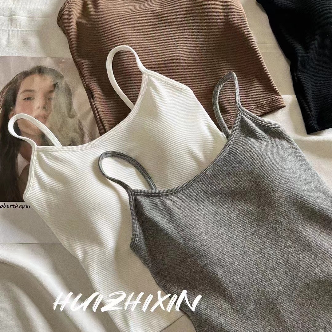 春夏新款韩版少女细肩带螺纹吊带背心女带胸垫打底内搭美背上衣