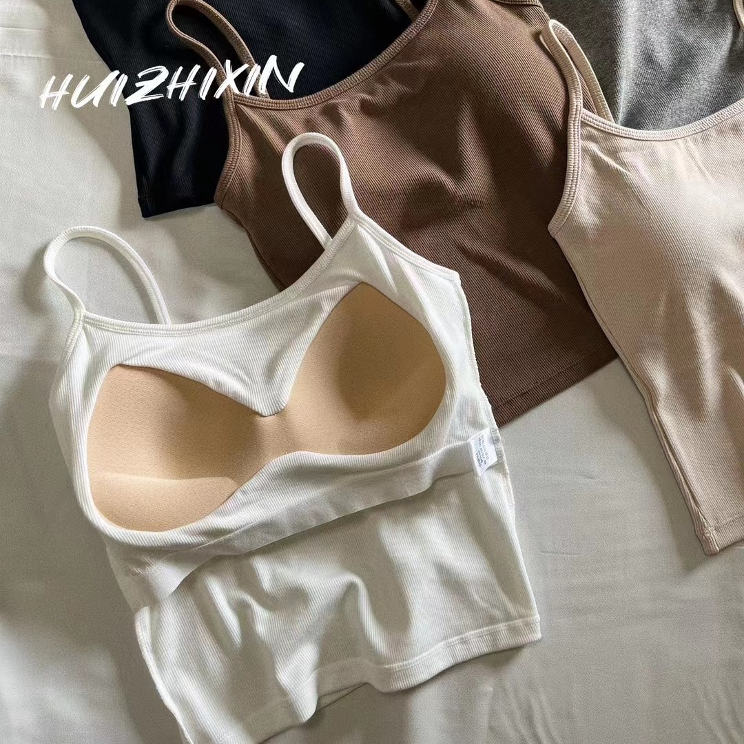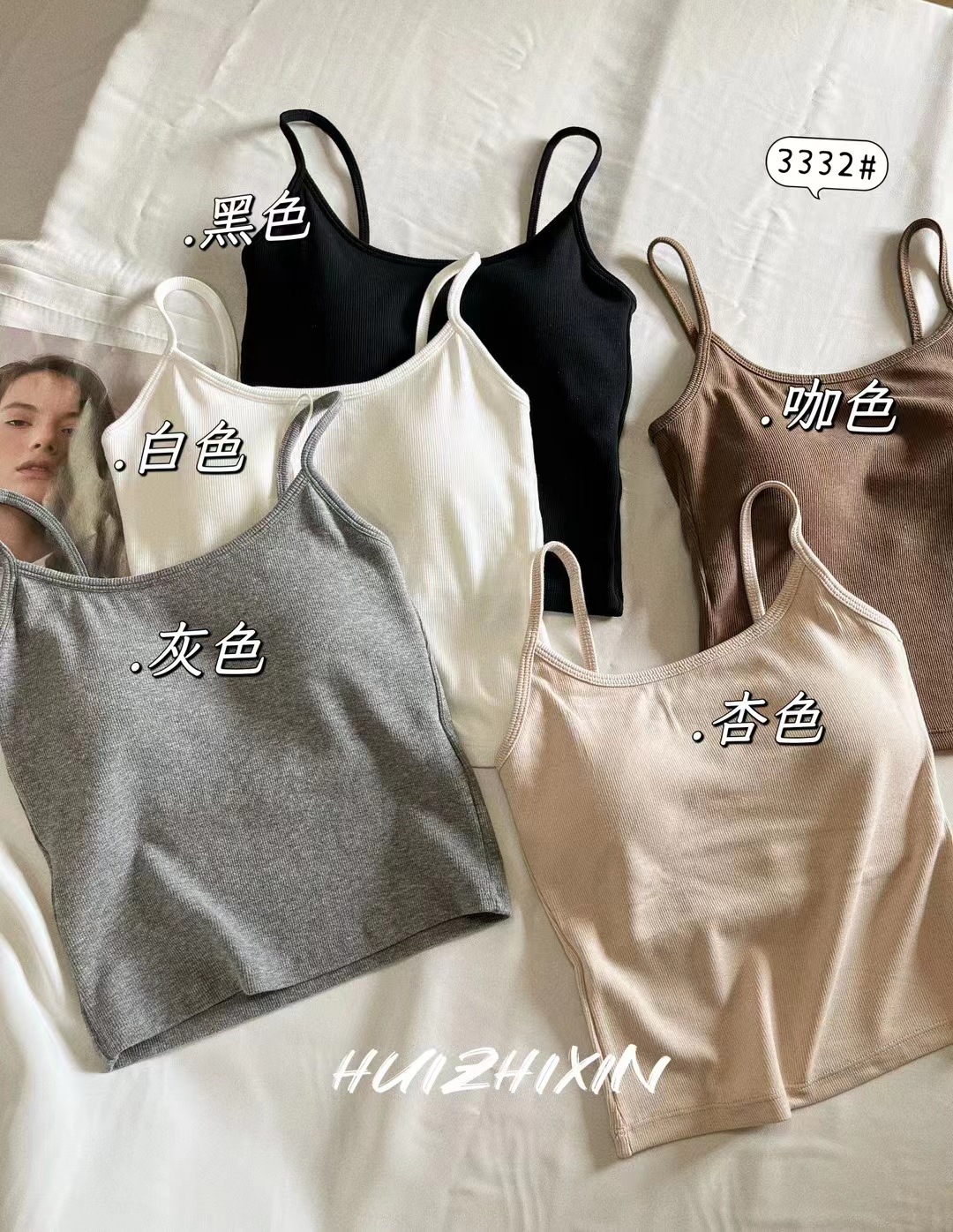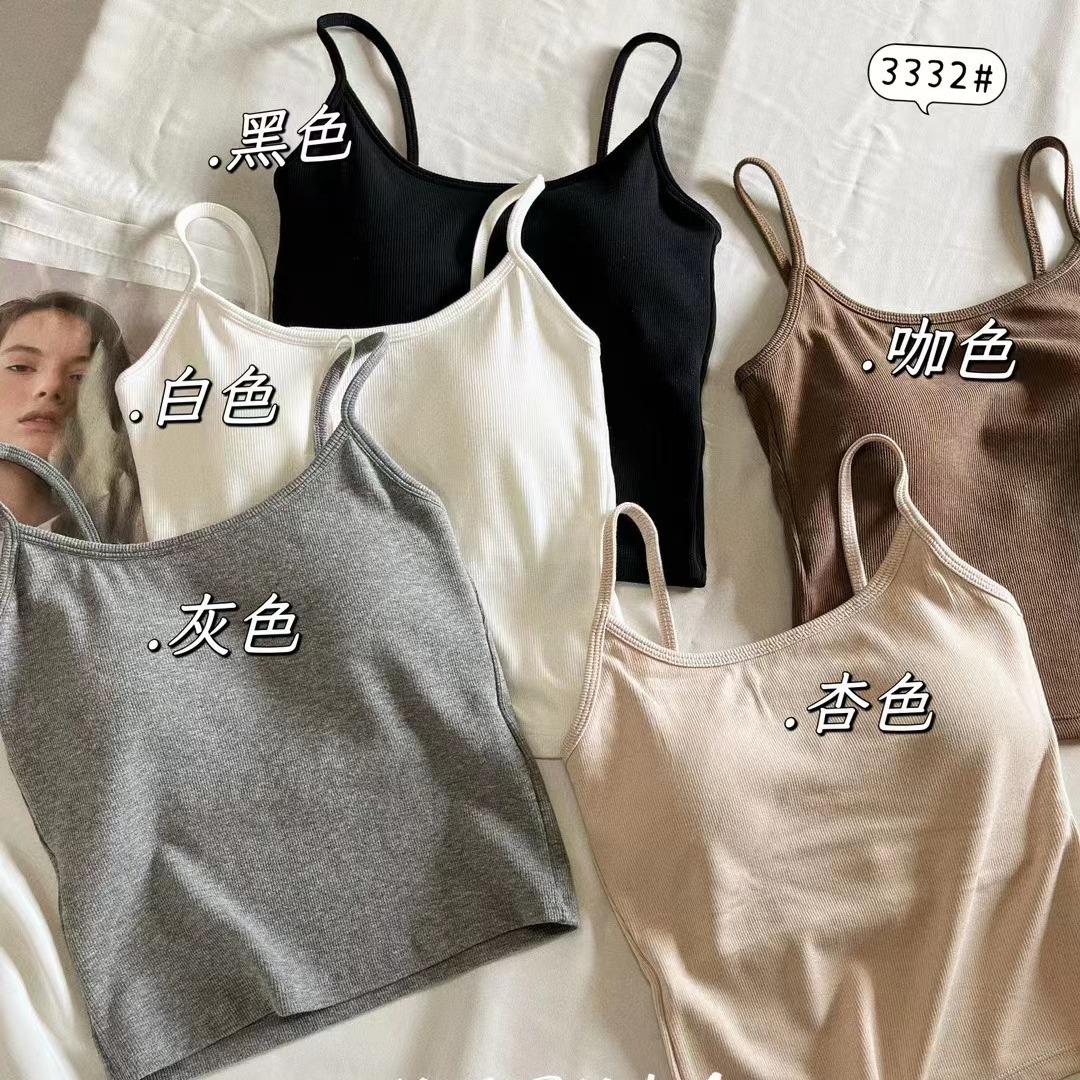 春夏新款韩版少女细肩带螺纹吊带背心女带胸垫打底内搭美背上衣