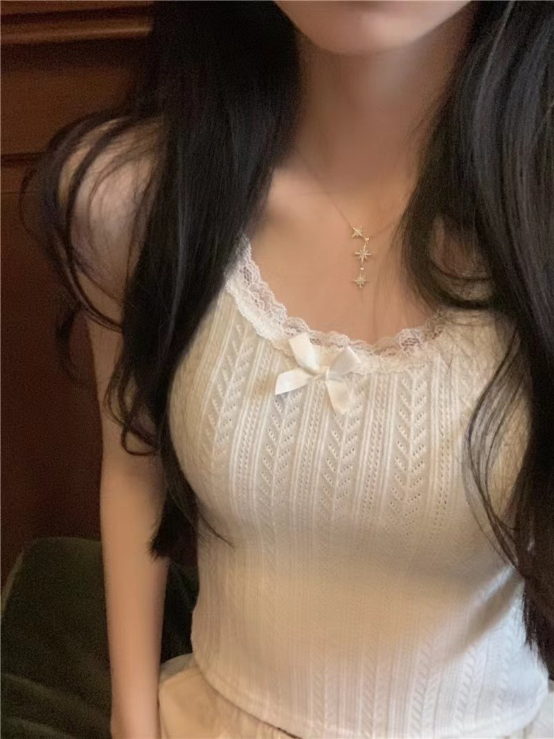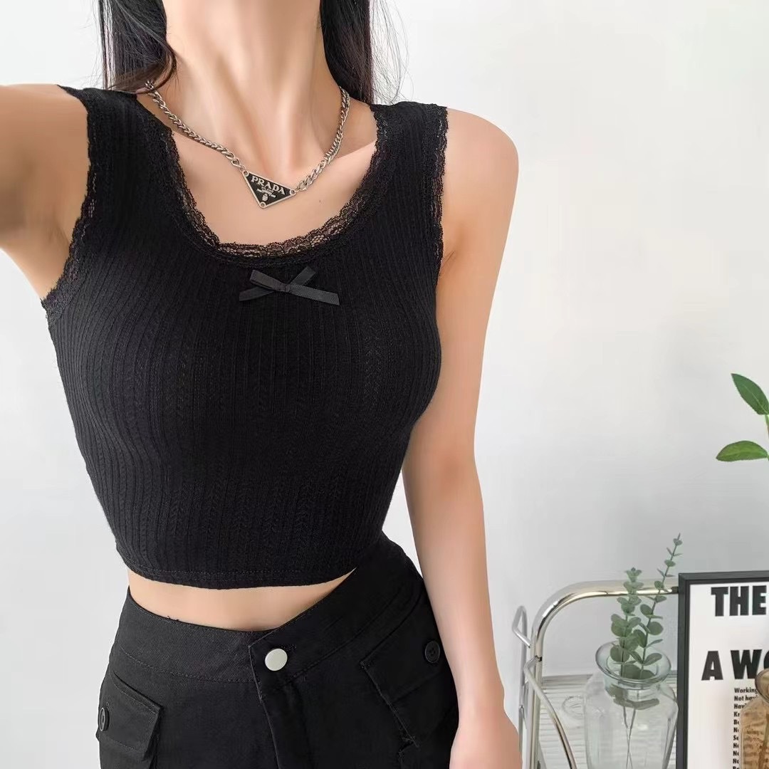 BM风纯欲风蕾丝花边吊带背心女夏季洋气百搭修身显瘦短款上衣