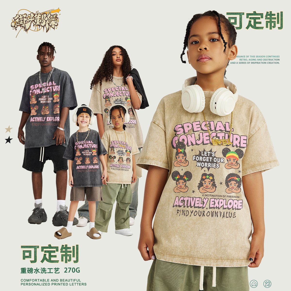 WD潮牌童装女宝上衣夏女童纯棉ins卡通印花圆领短袖中大童