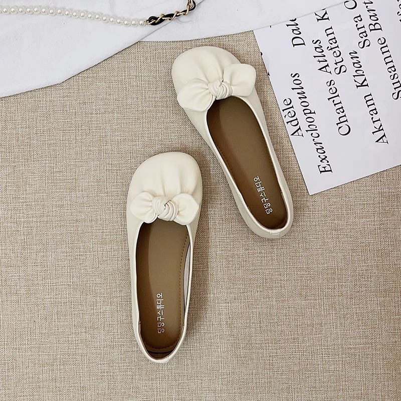 复古奶奶鞋女夏平底新款浅口软底配裙豆豆鞋一脚蹬蝴蝶结单鞋