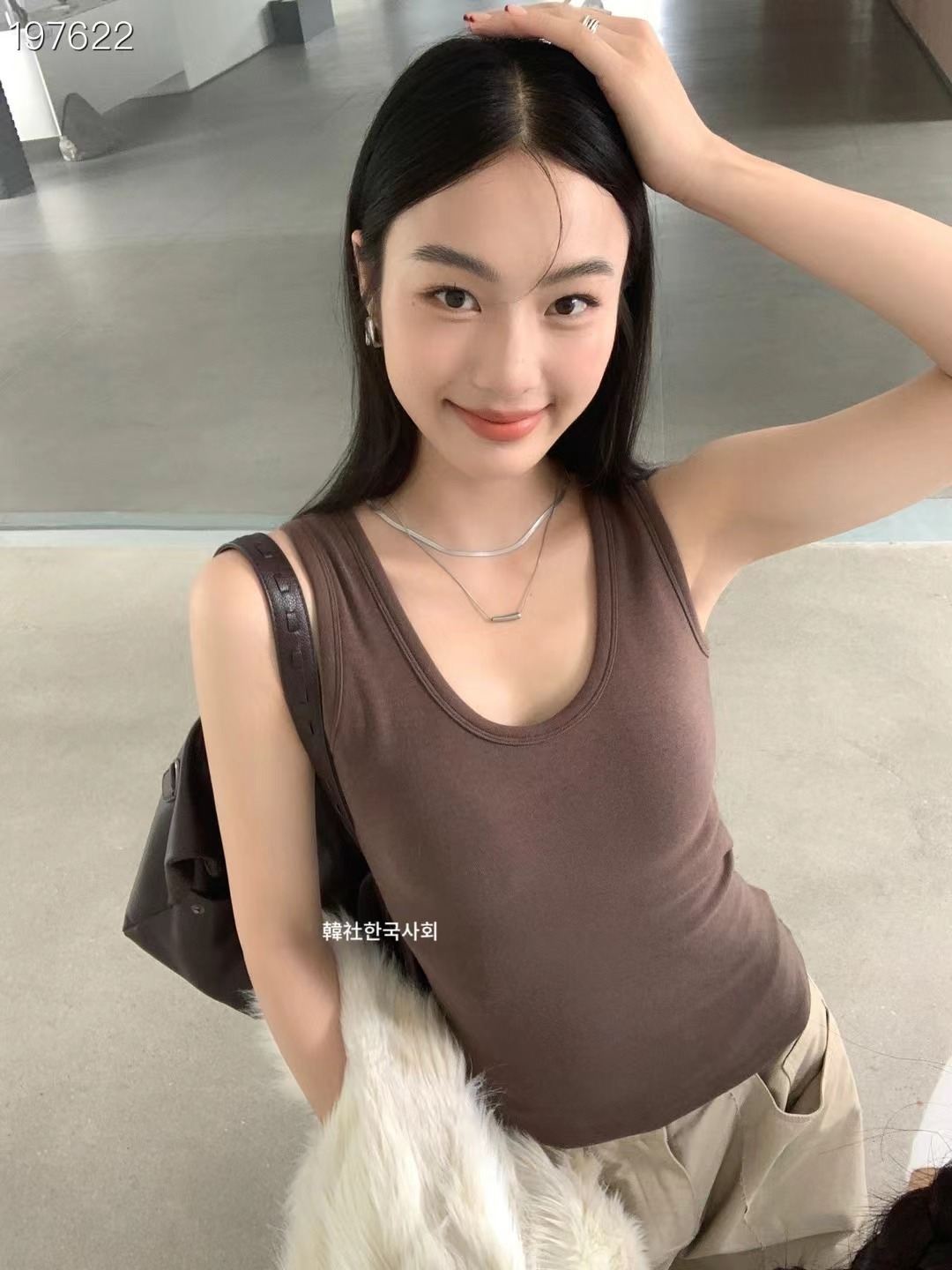 韓社한국사회-6618# 基础款.磨毛U领一体杯背心