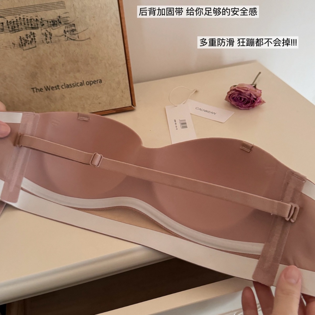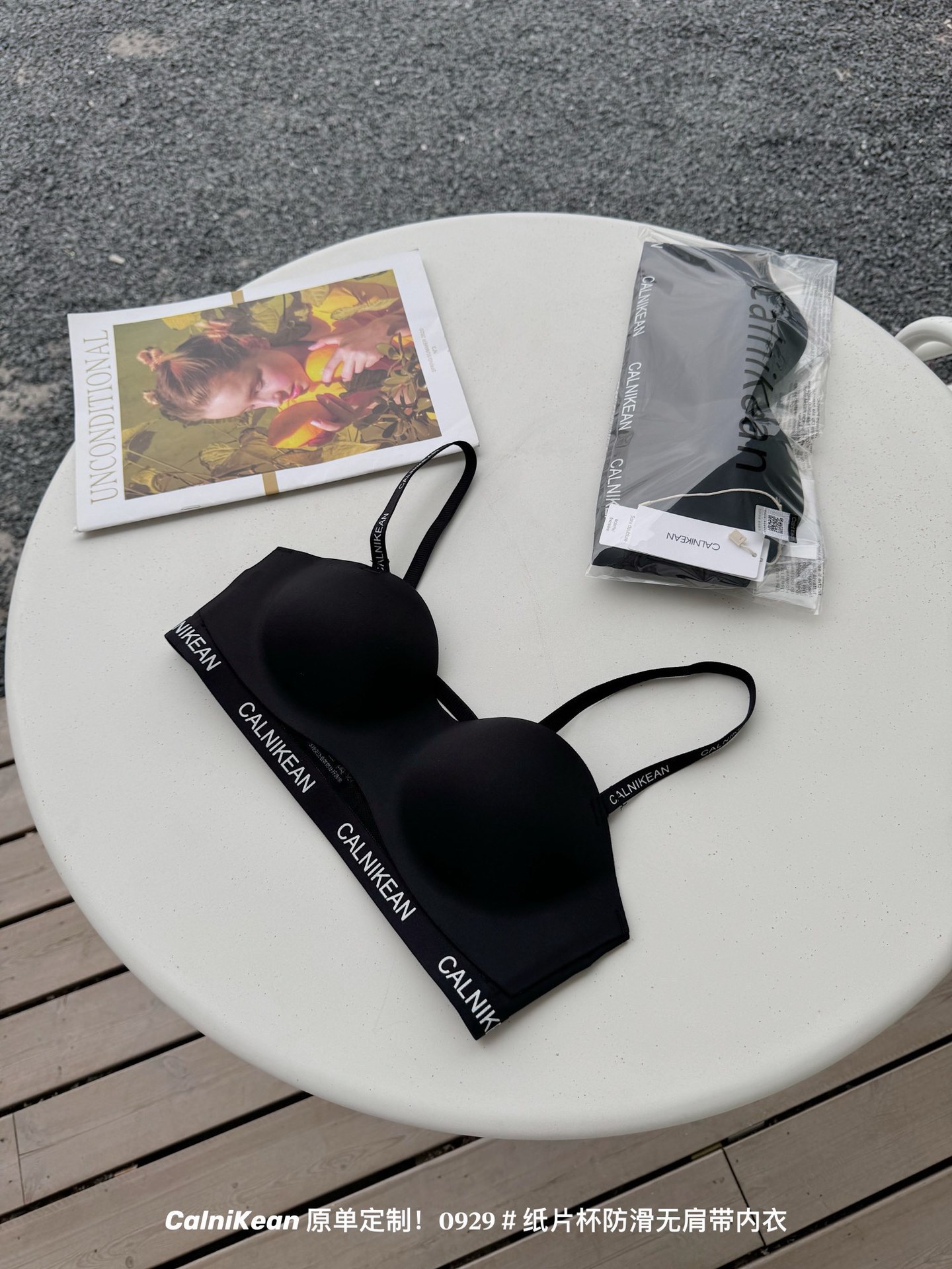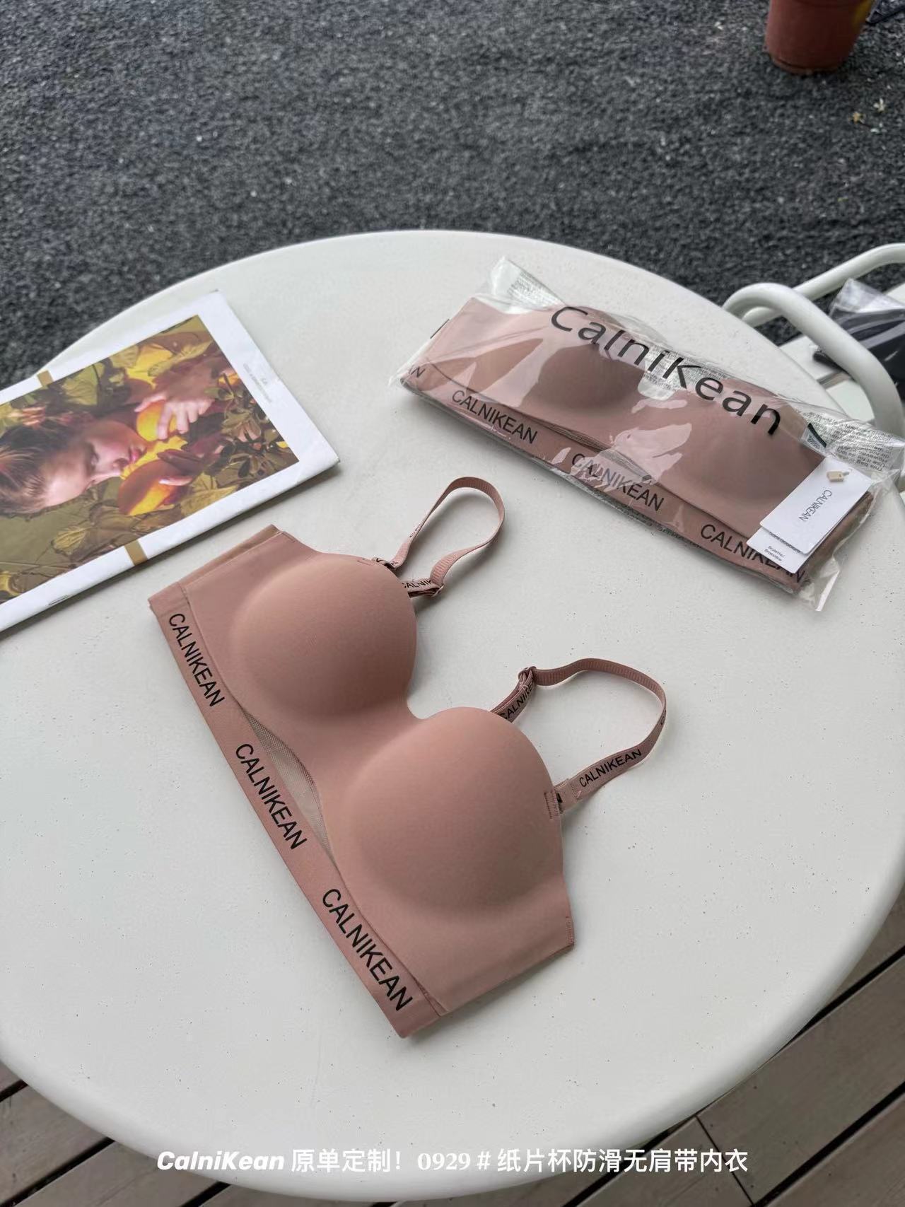 0929原创纸片杯防滑无肩带内衣女夏舒适一体杯字母肩带隐形文胸罩