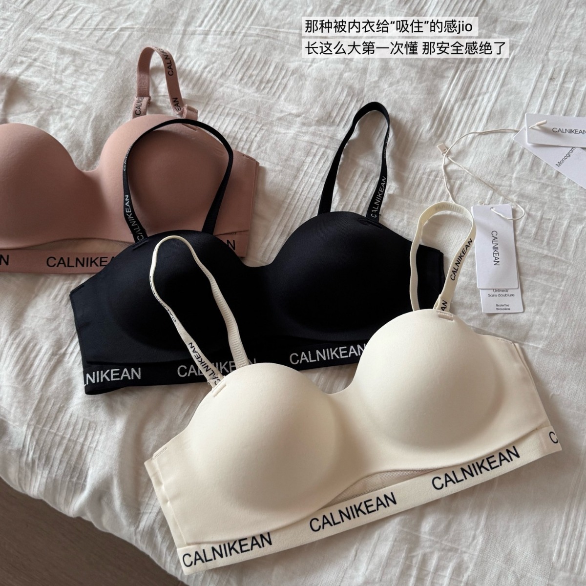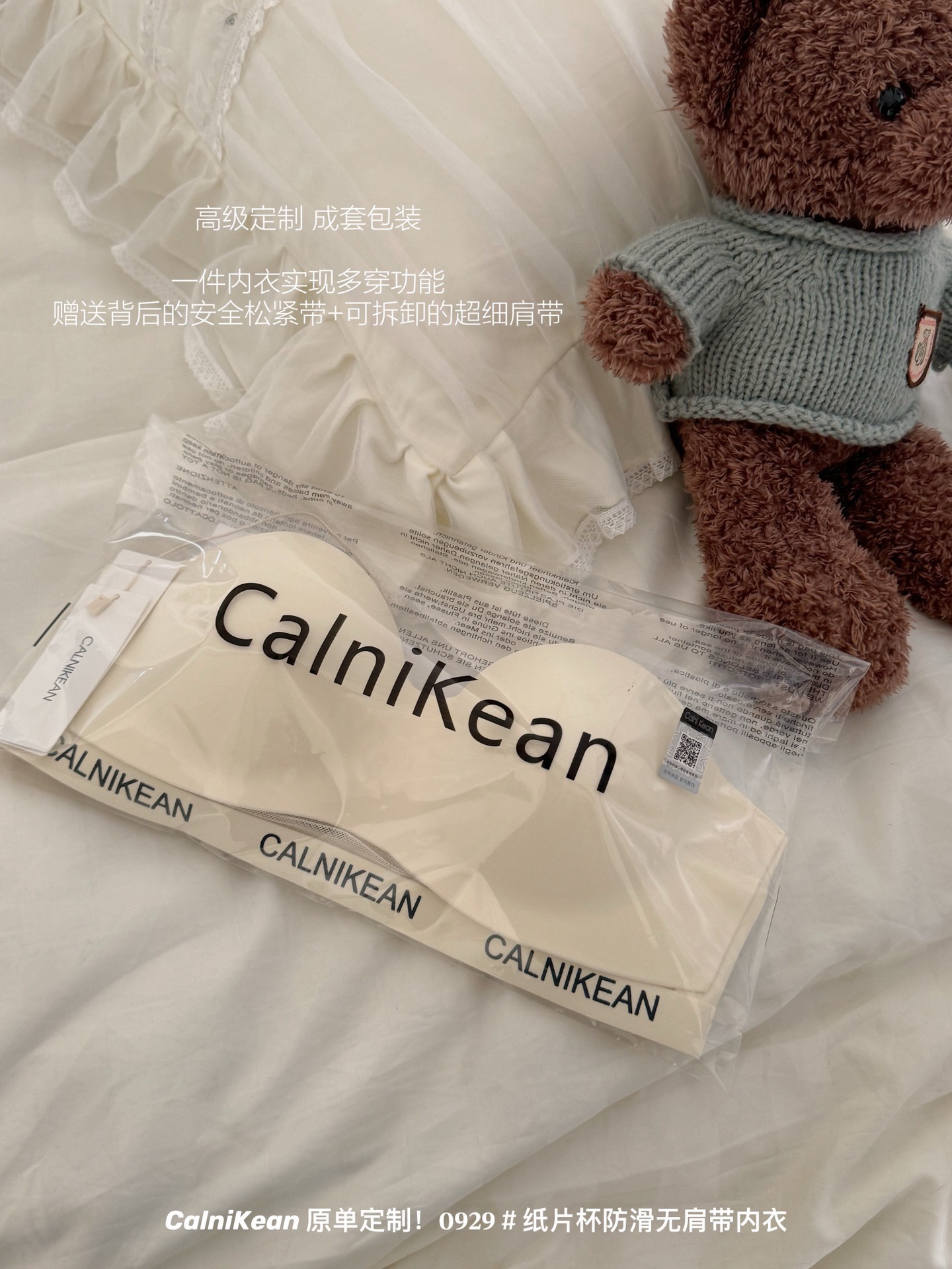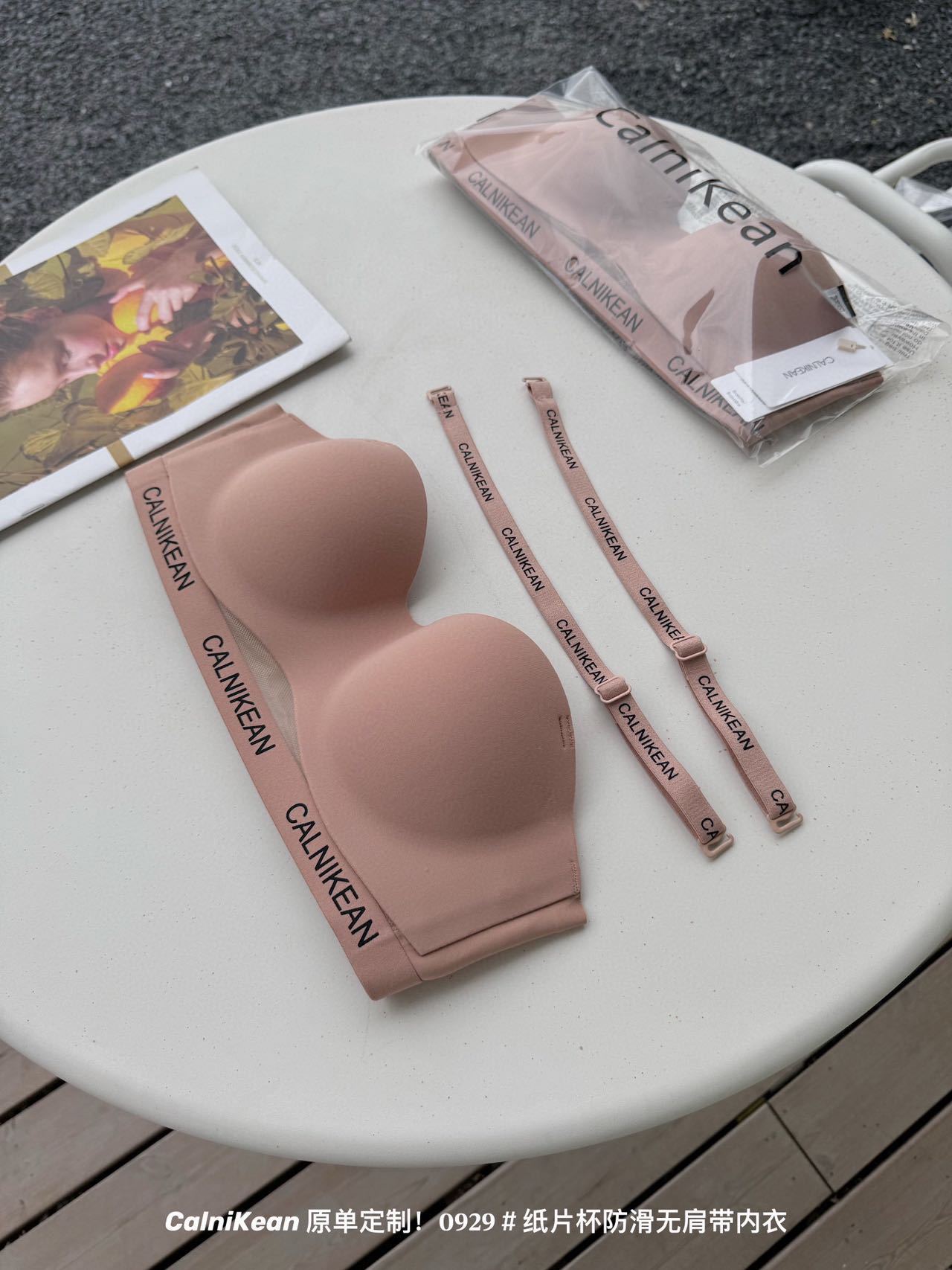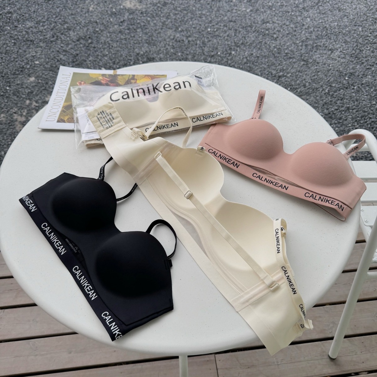 0929#纸片杯防滑无肩带内衣女夏季舒适一体杯字母肩带隐形文胸女
