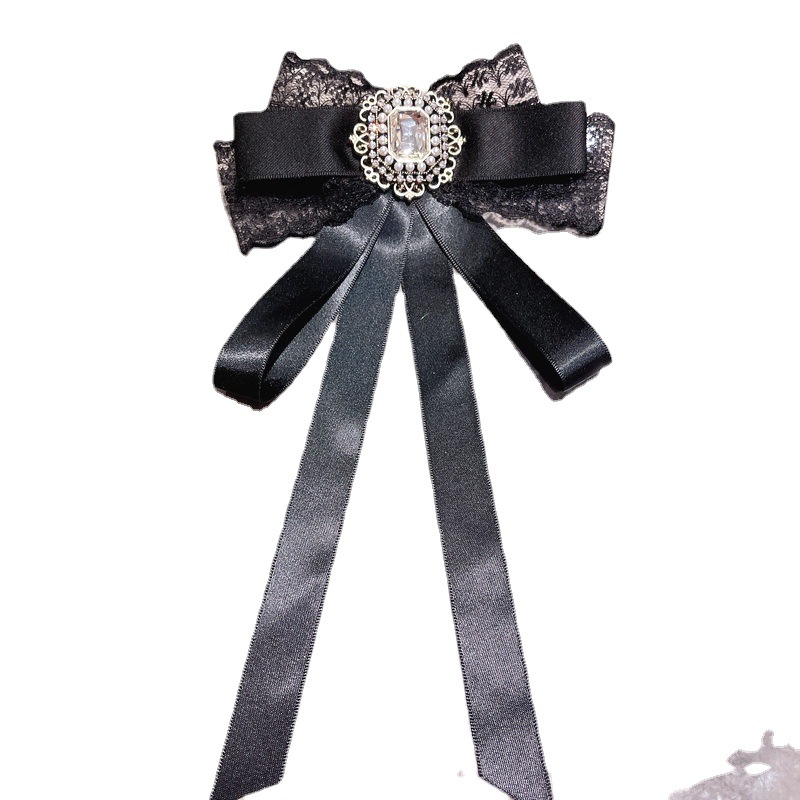 韩国小香风领结蕾丝飘带蝴蝶结带别针衬衣领口配饰水钻领花别针女